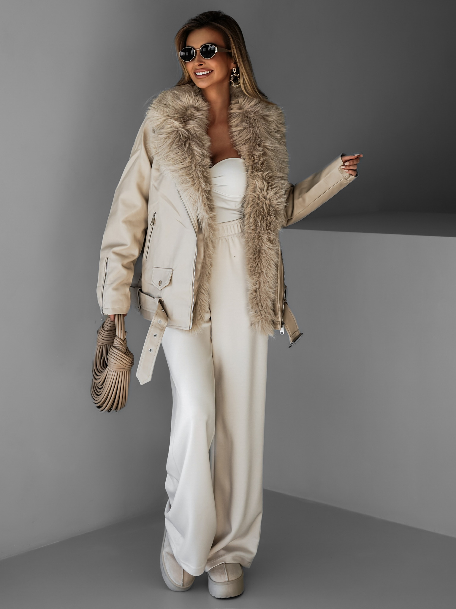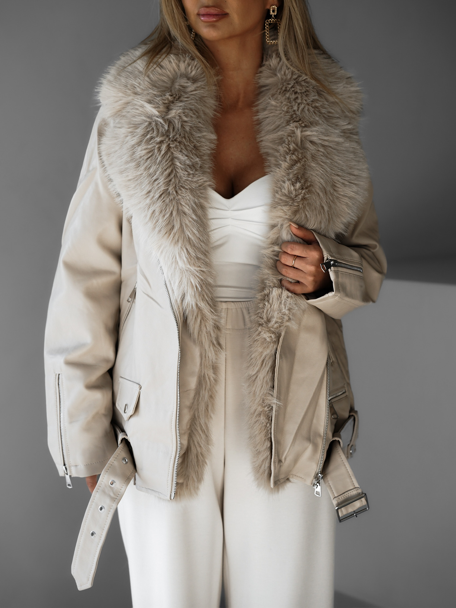 Béžová koženková biker zateplená bunda MASSIMO Velikost: S/M
