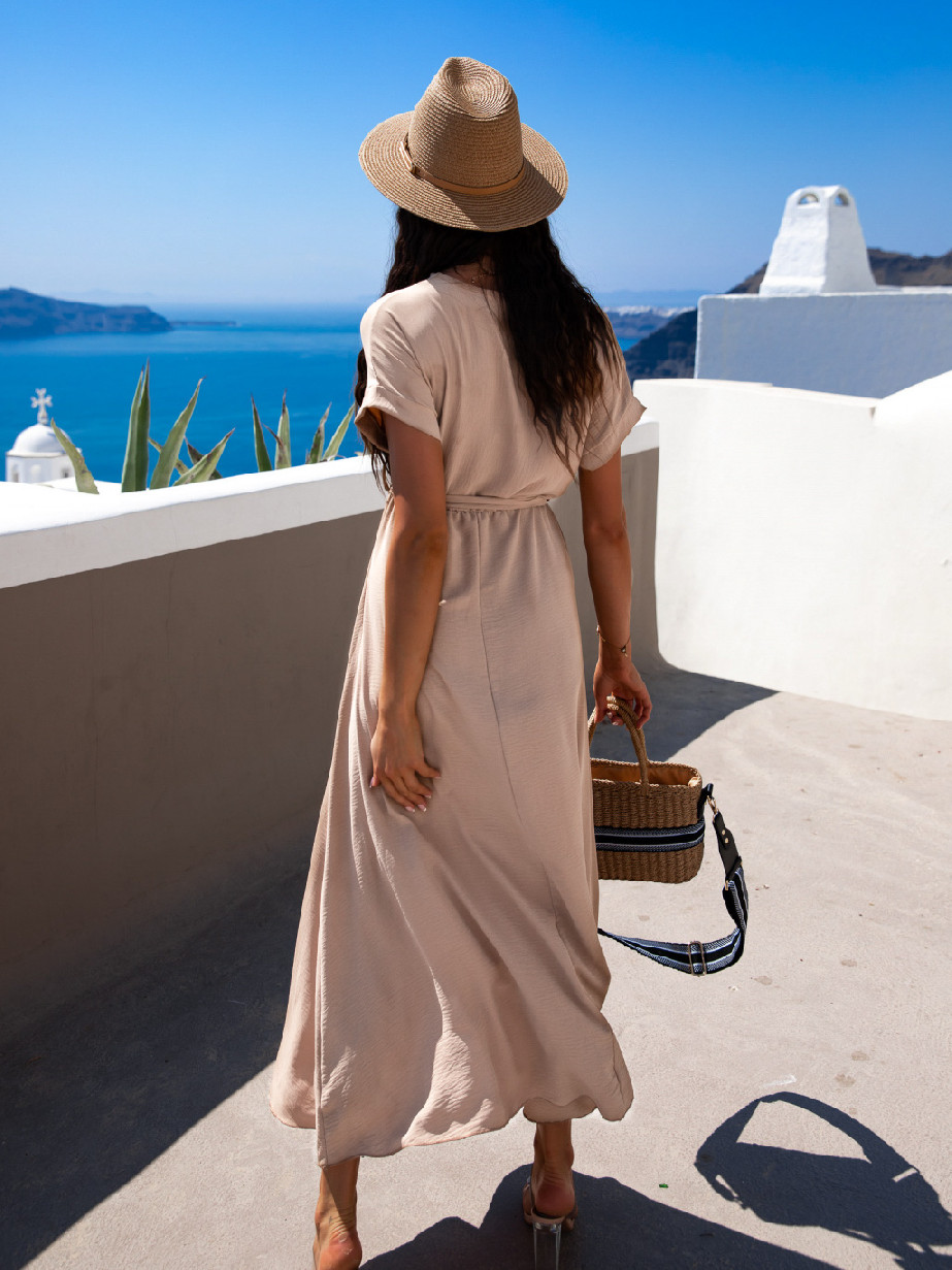Béžové delší elegantní šaty FEYLING se zavazováním Velikost: ONESIZE