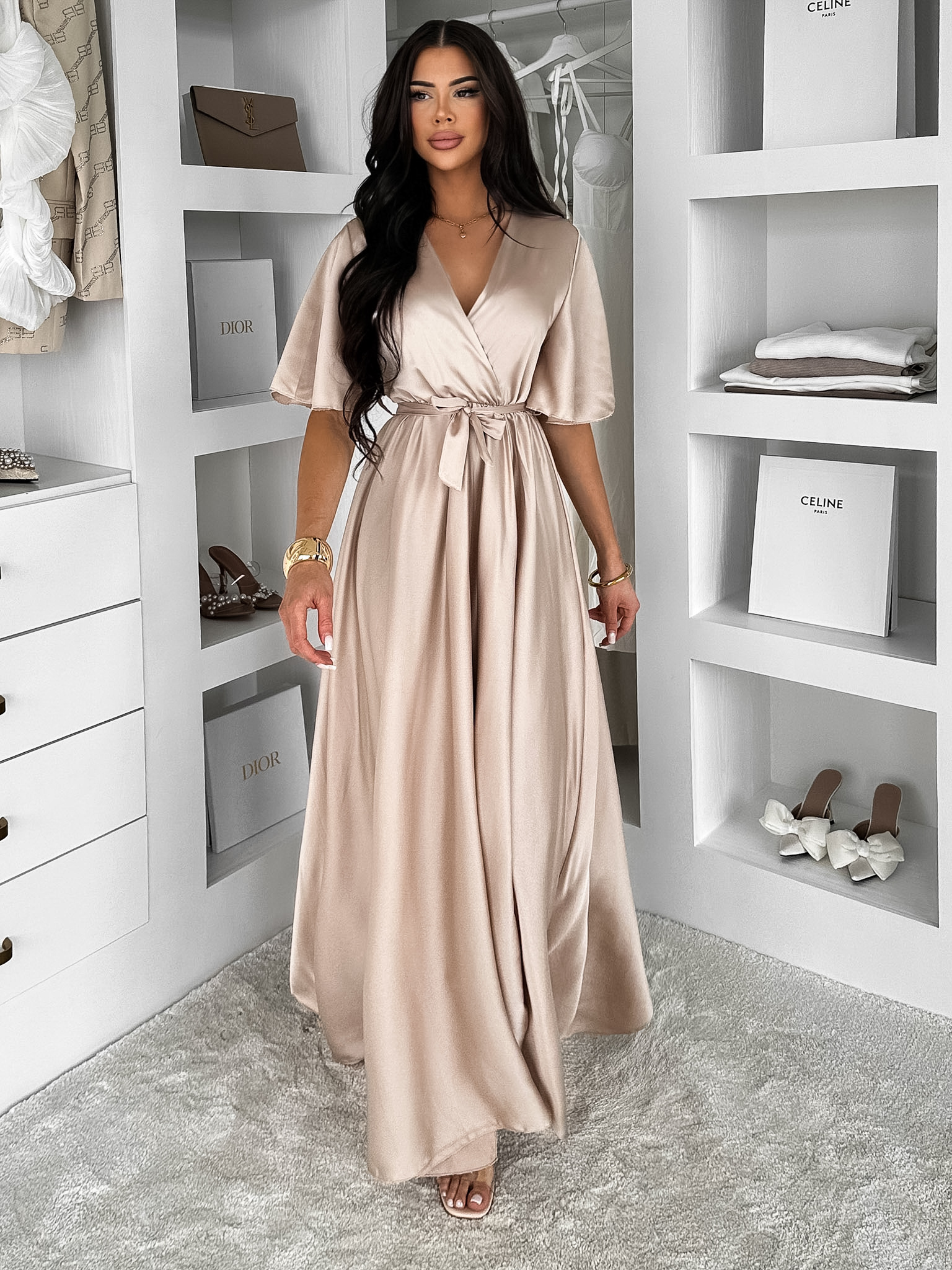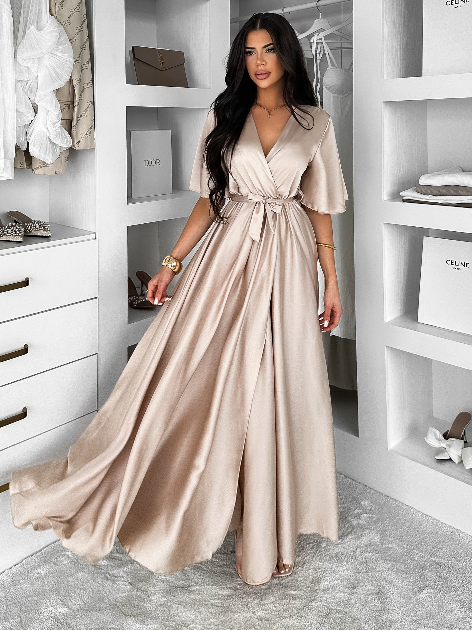 Béžové dlouhé saténové šaty GO HOME Velikost: ONESIZE