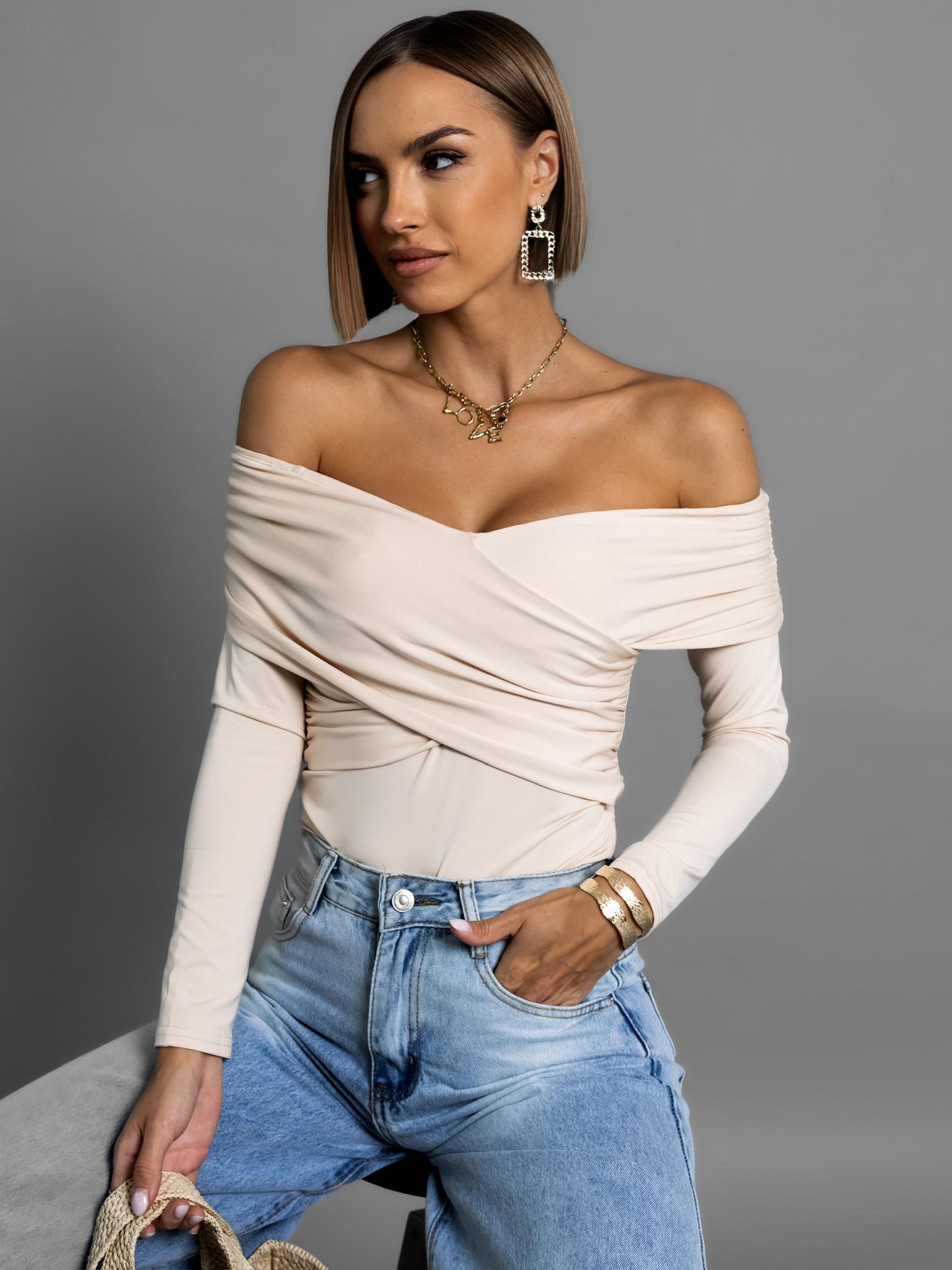 Béžové elastické body RAMBUTAN s řasením Velikost: M/L