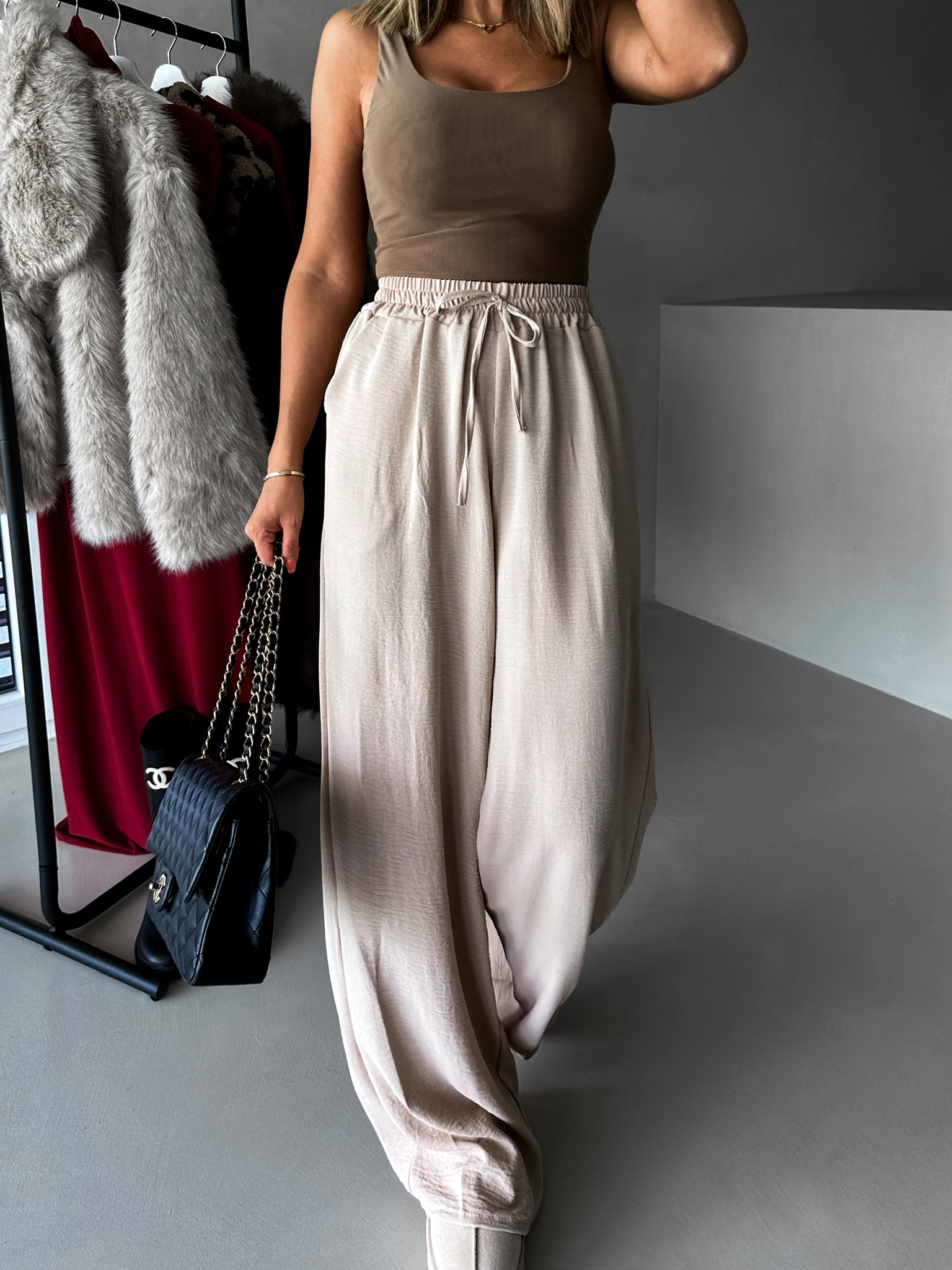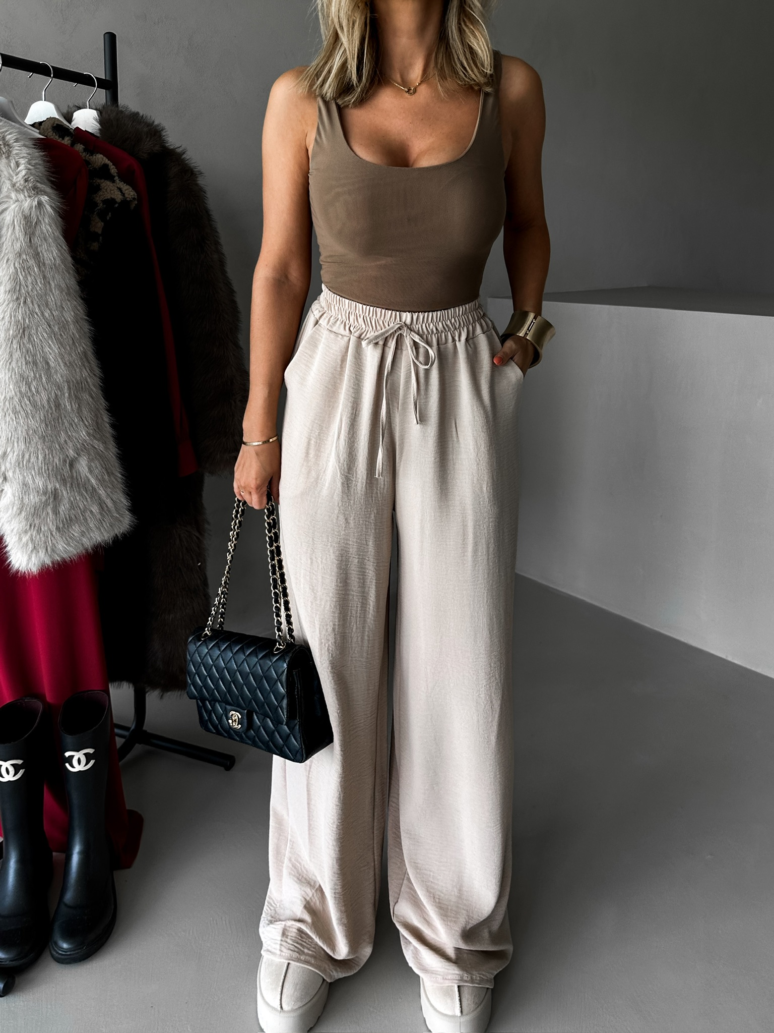 Béžové elegantní kalhoty CORAL s rozšířenými nohavicemi