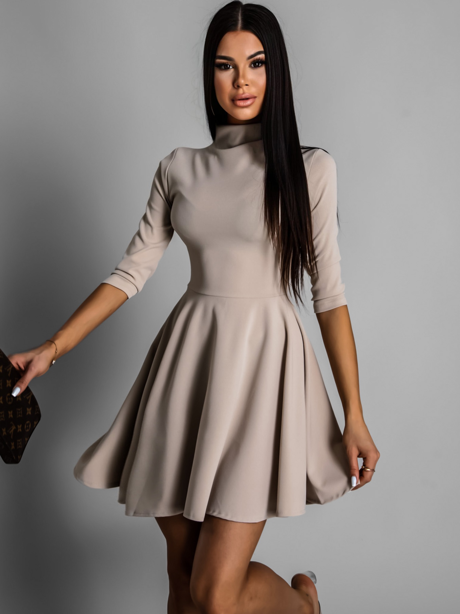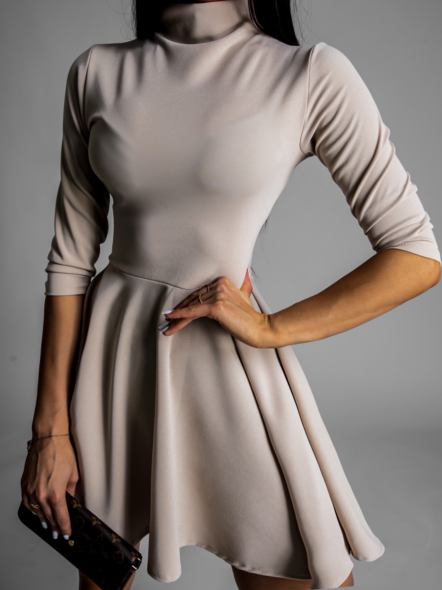 Béžové elegantní šaty GROUND s dlouhým rukávem