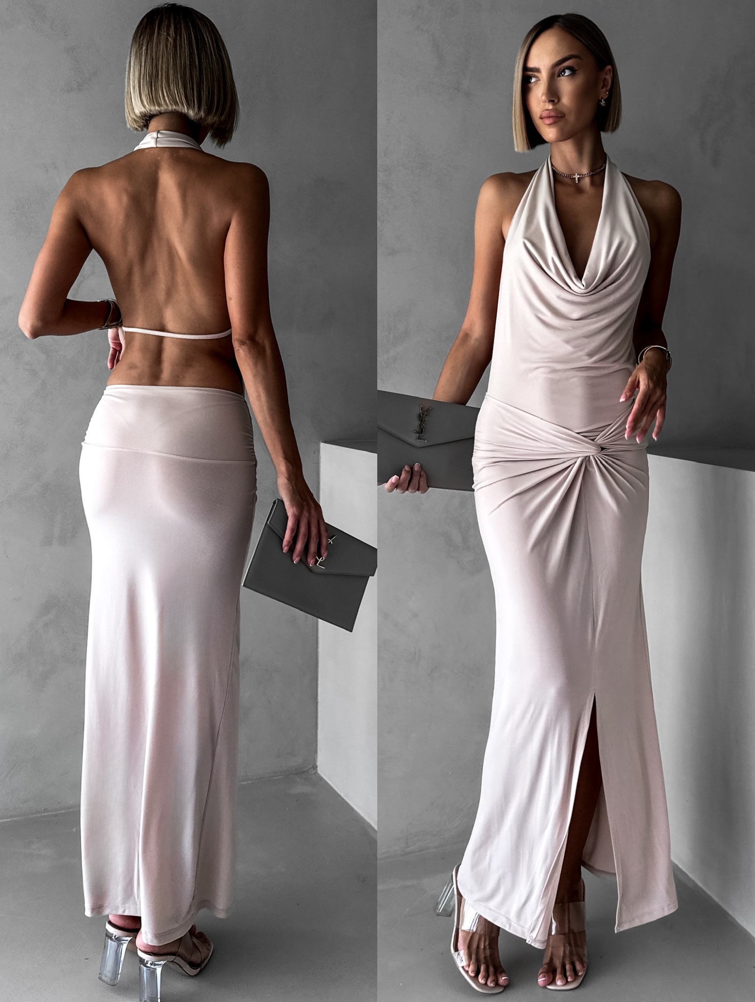 Béžové elegantní šaty RHIANY s odhalenými zády Velikost: ONESIZE