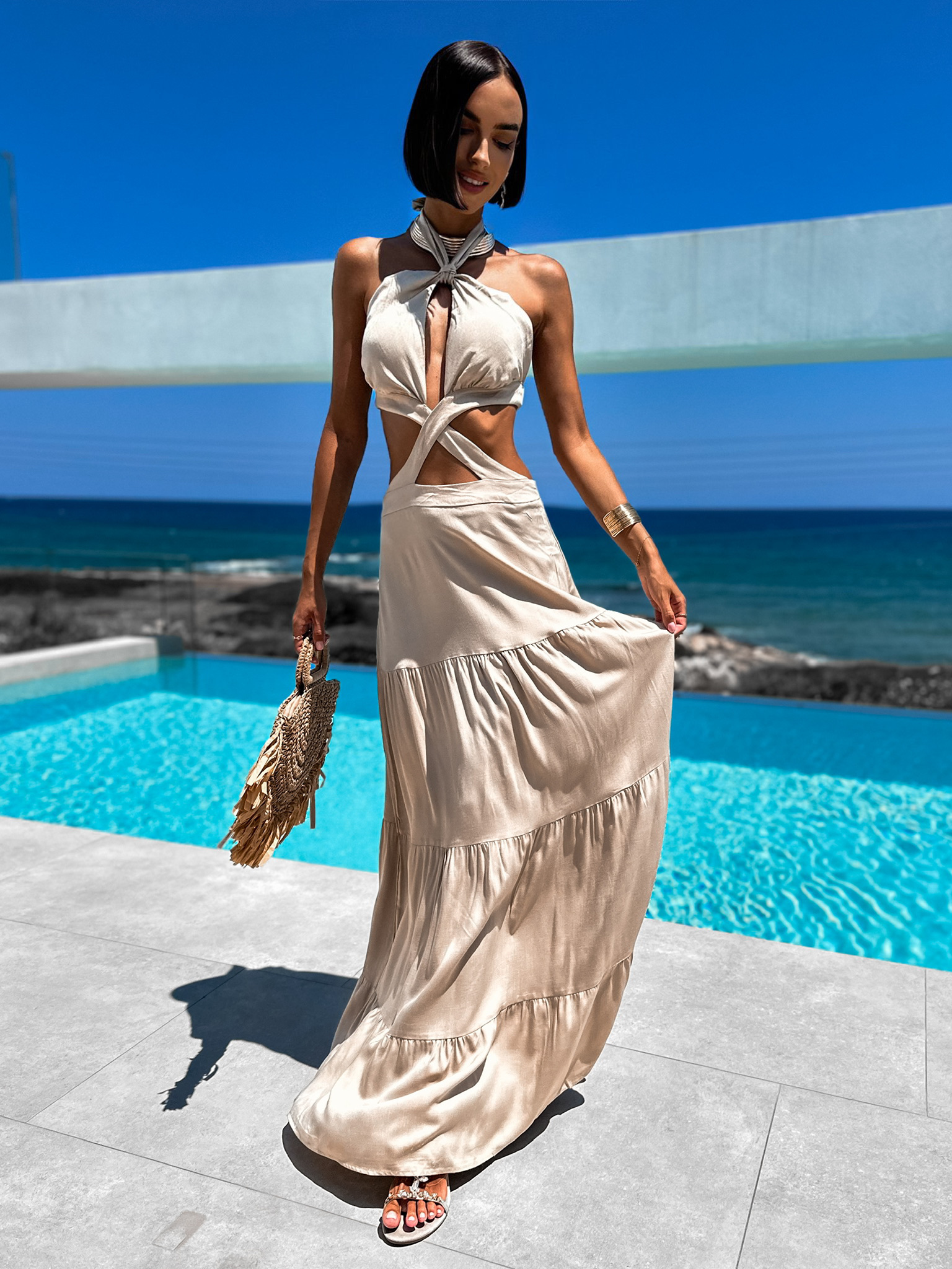 Béžové elegantní šaty SARAINE Velikost: M/L