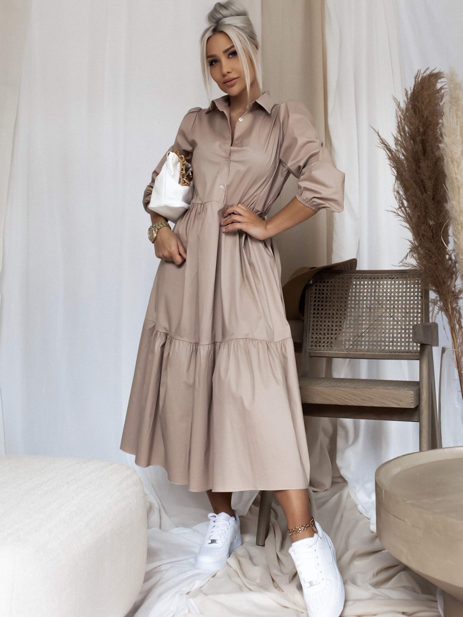 Béžové košilové šaty ANITE s dlouhým rukávem
