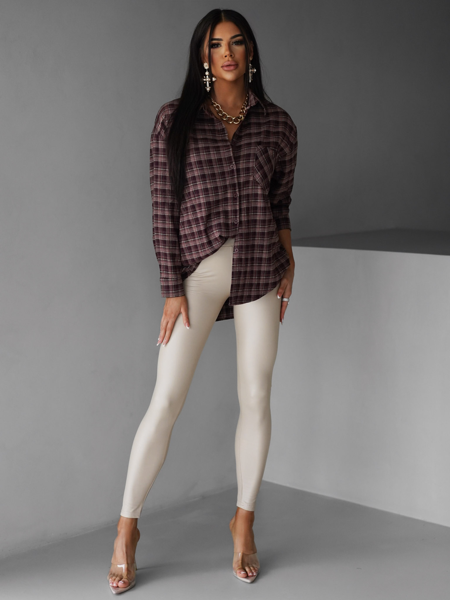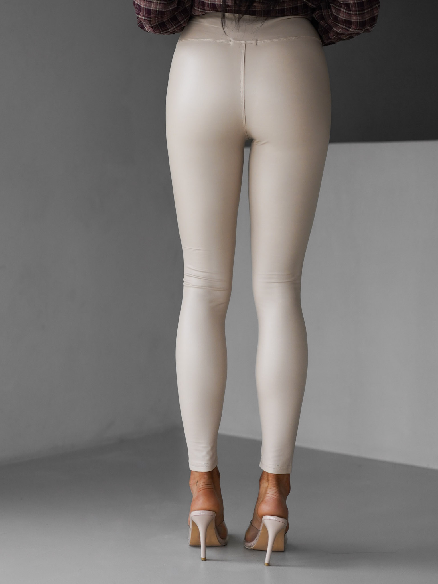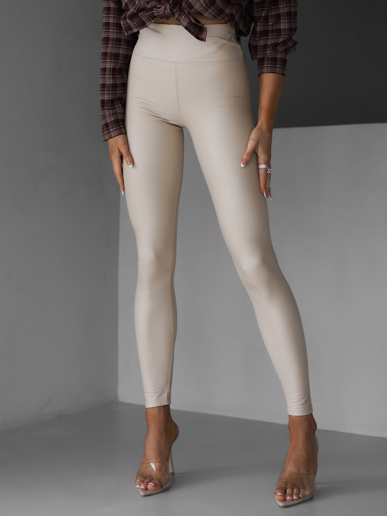 Béžové koženkové stylové legíny ALOCA Velikost: M