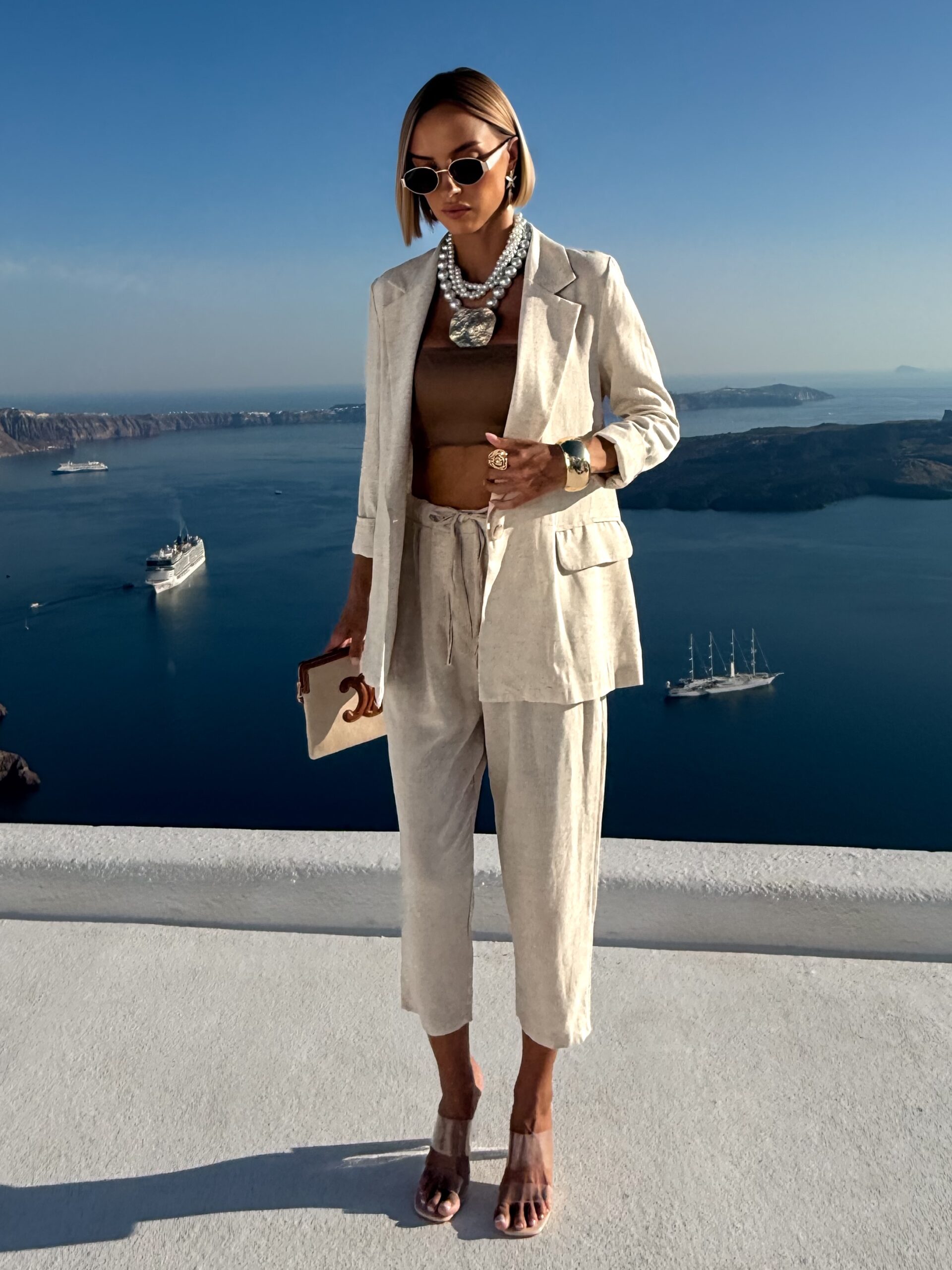 Béžové lněné 3/4 kalhoty NOORY Velikost: ONESIZE