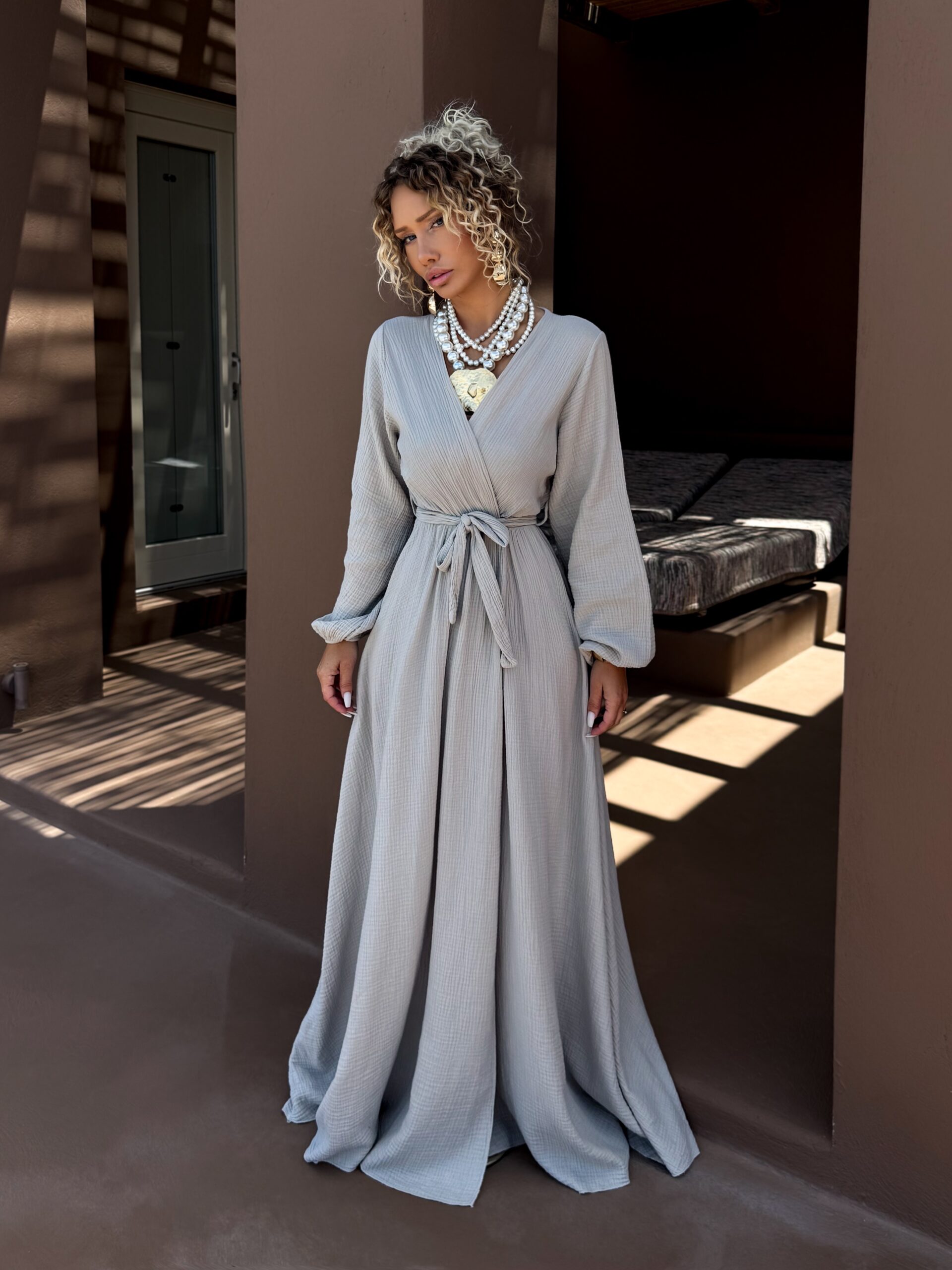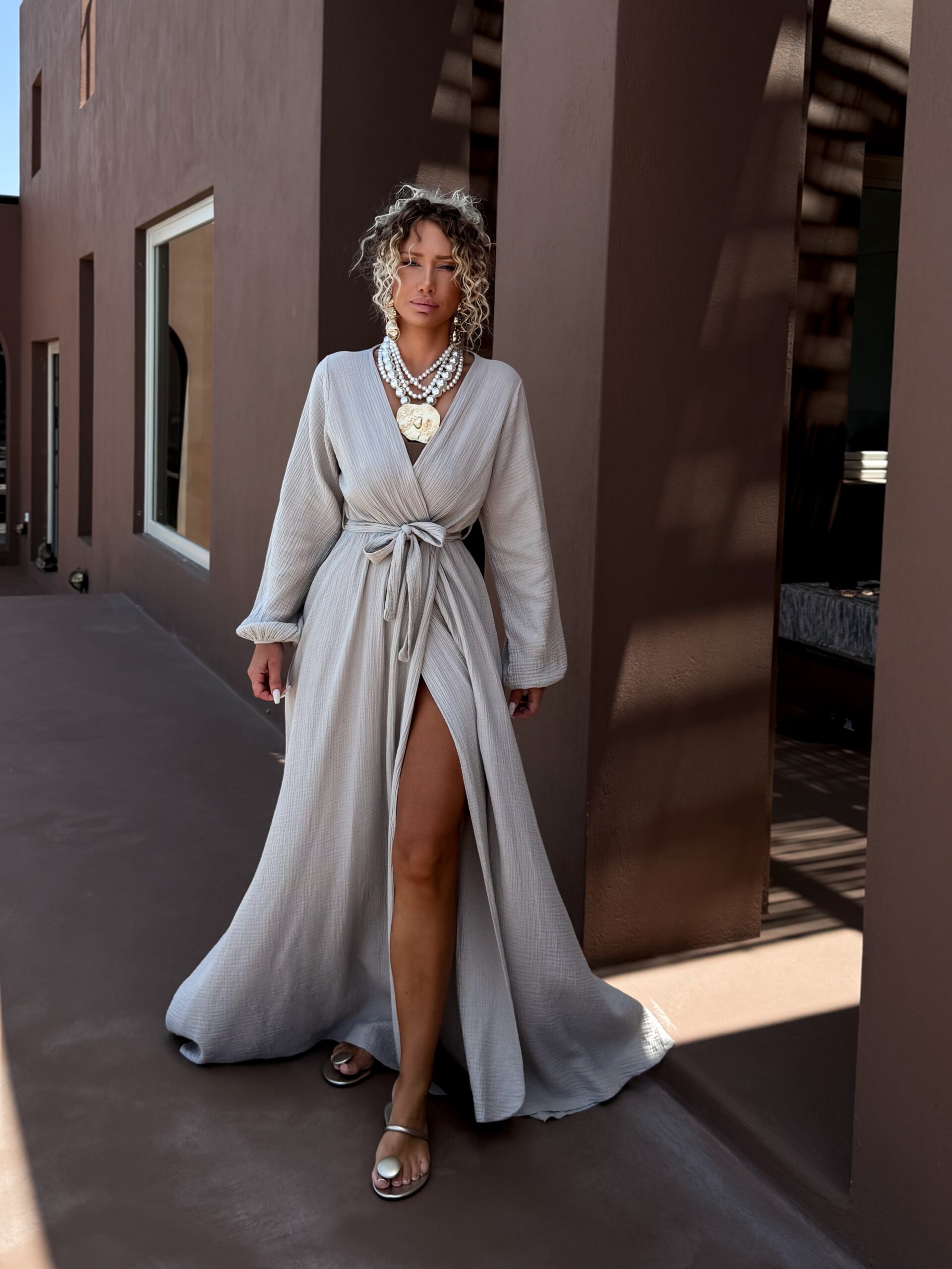 Béžové mušelínové dlouhé šaty VERIENA s výstřihem Velikost: ONESIZE