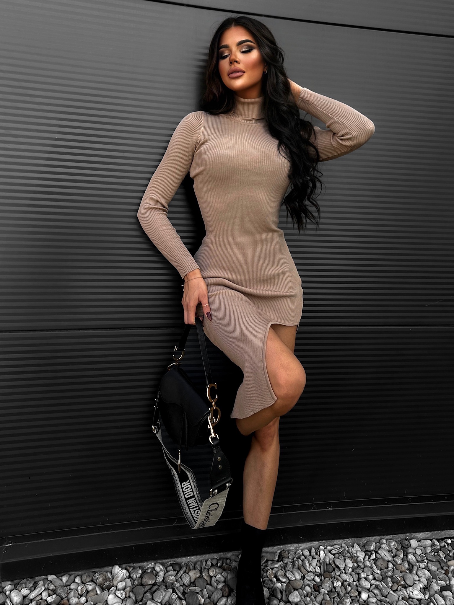 Béžové šaty SEYFERYT s roláčkem Velikost: M/L