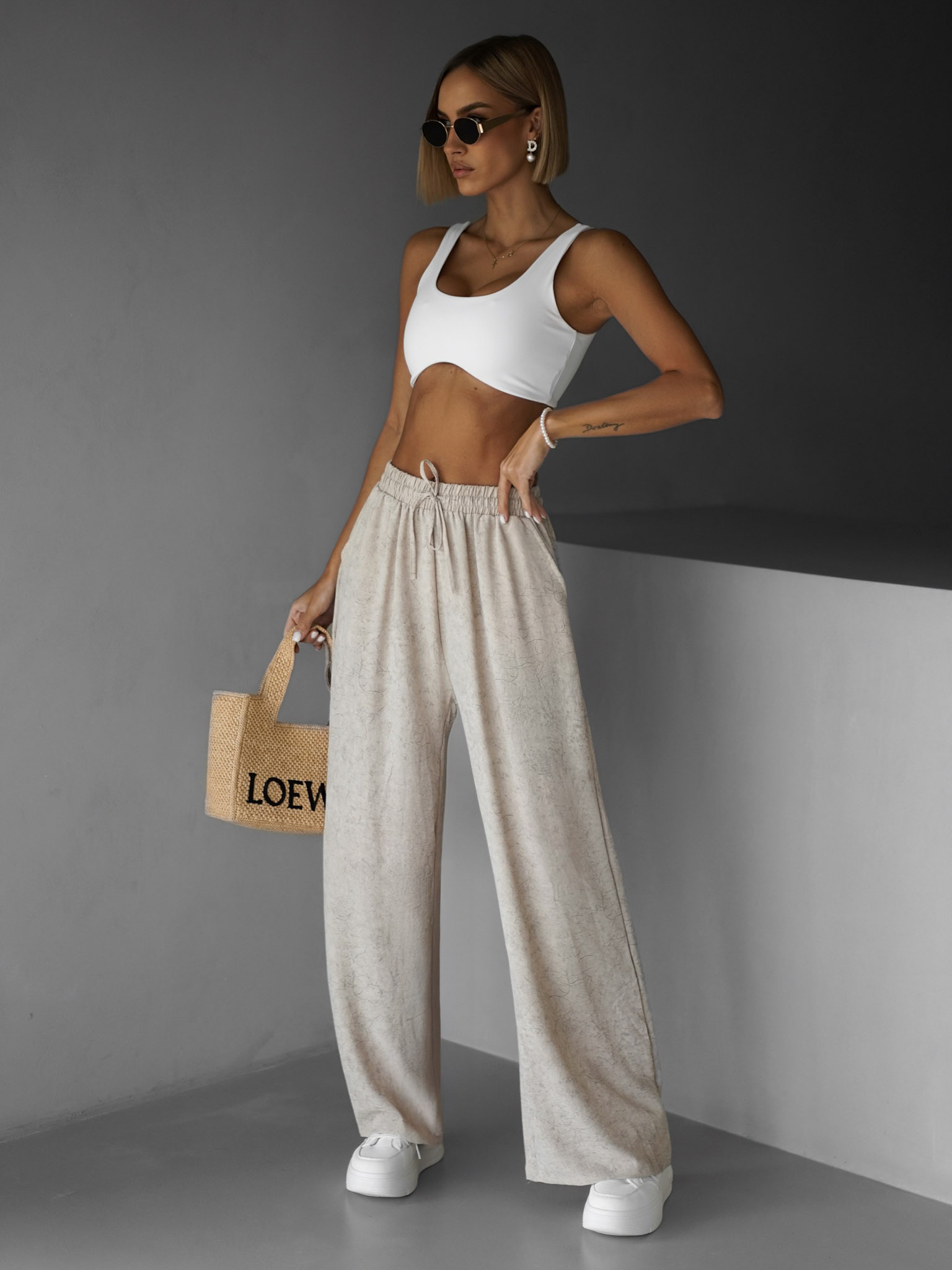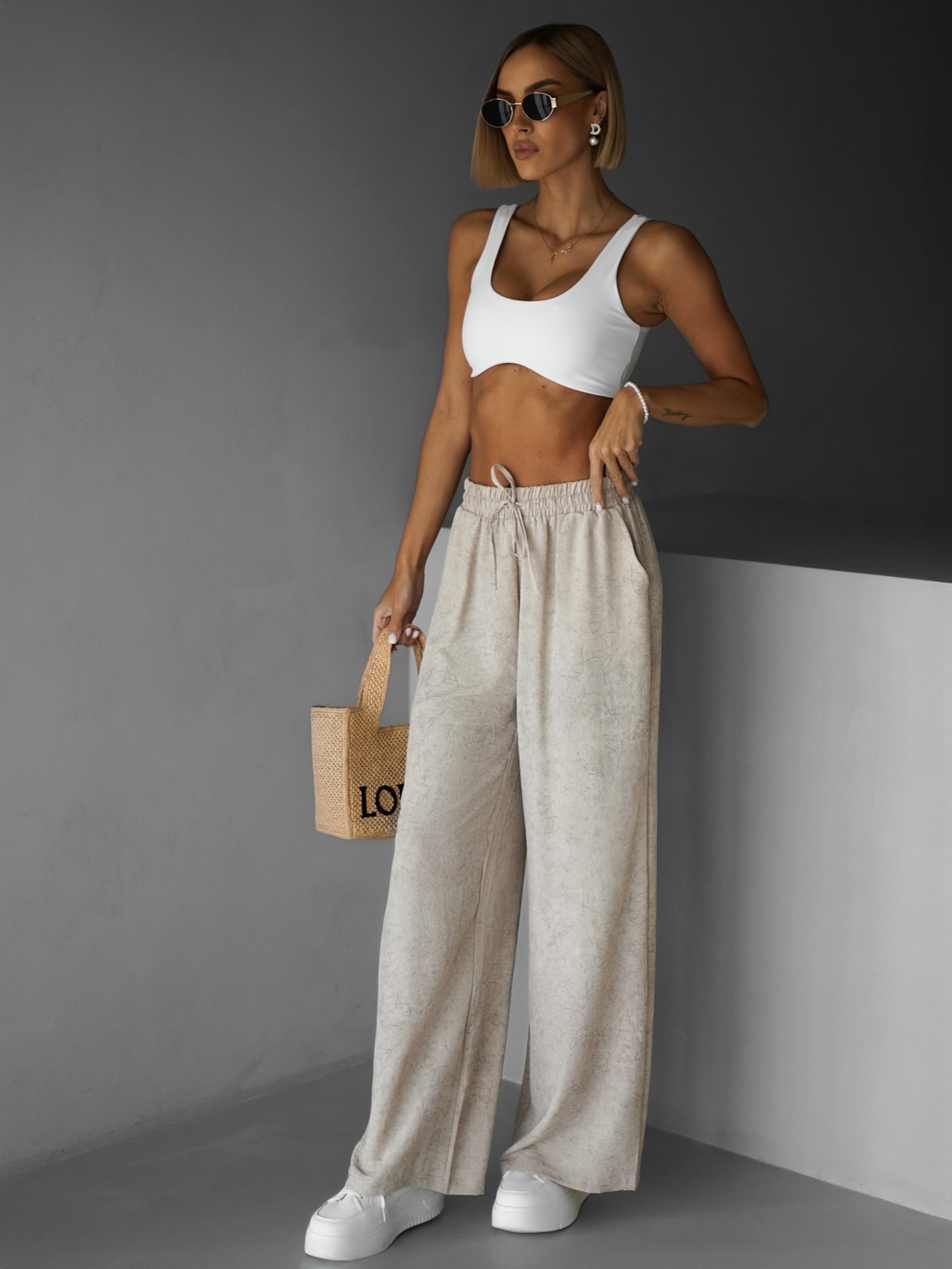 Béžové široké volné kalhoty BOETANA Velikost: XL/XXL