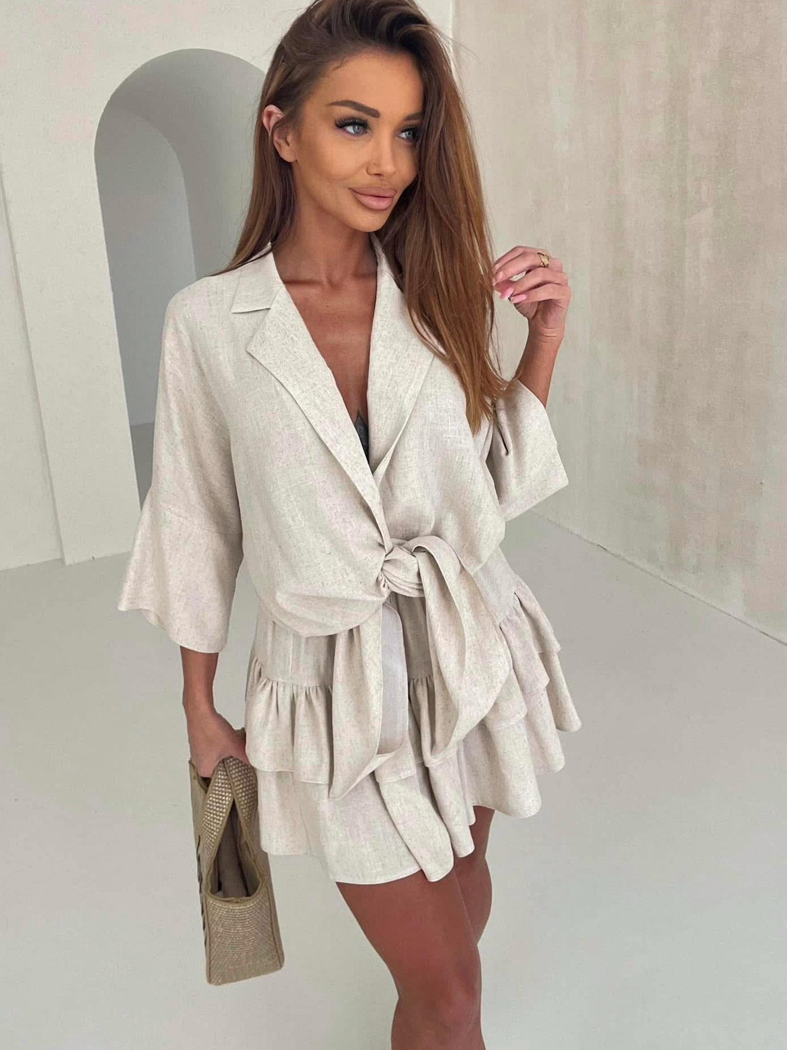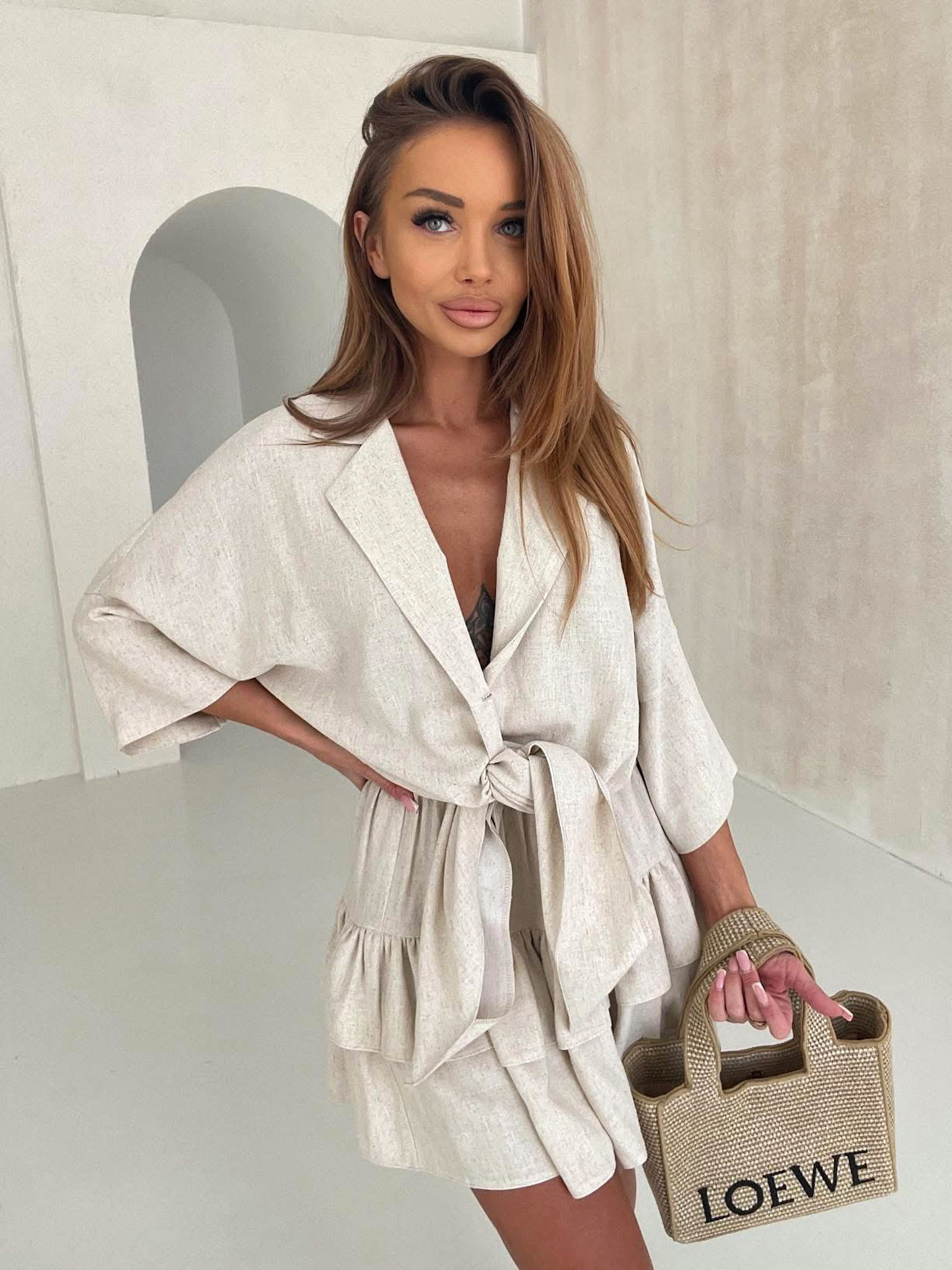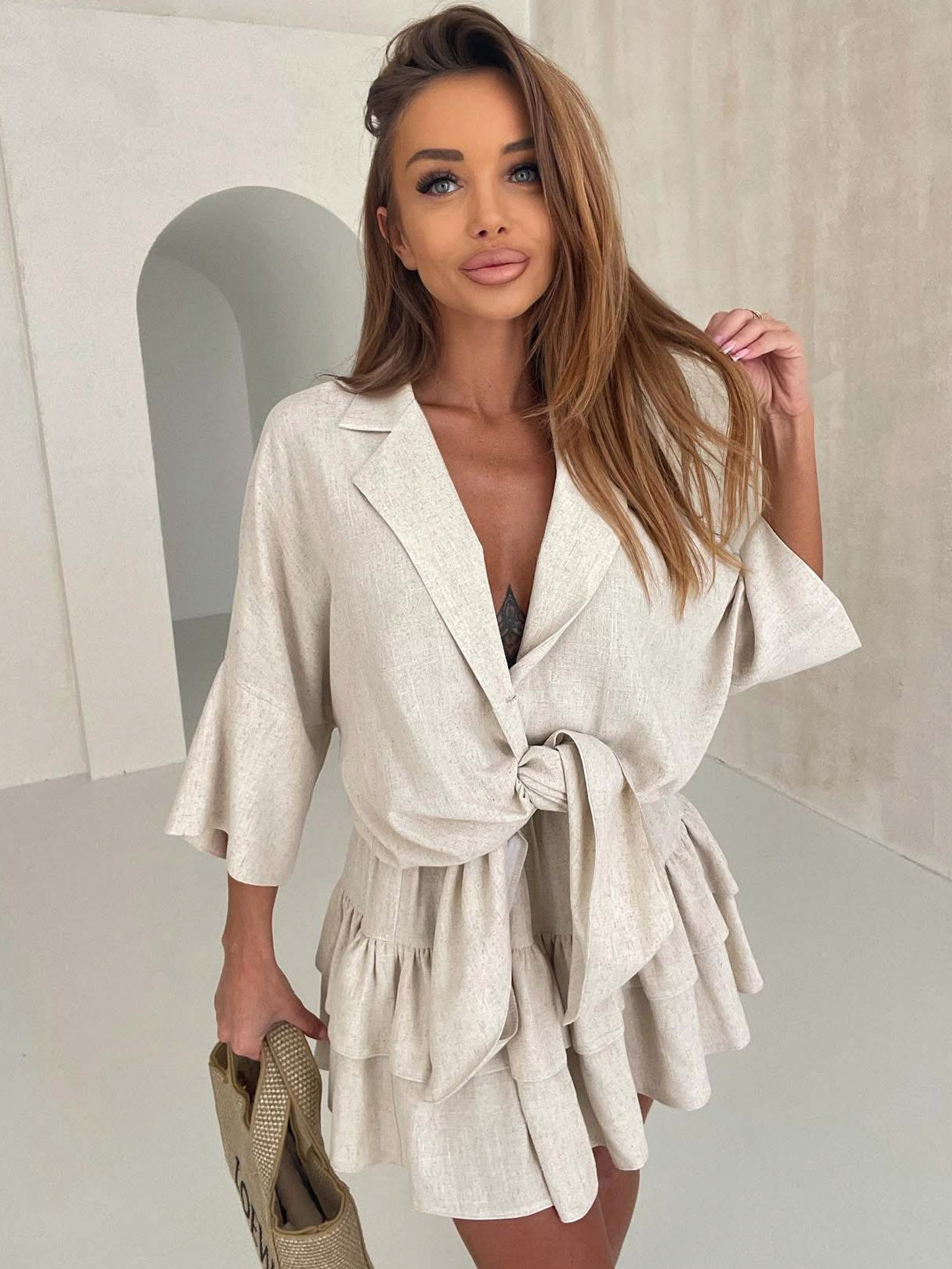 Béžový 100% lněný komplet FEMFUEL se sukní Velikost: ONESIZE