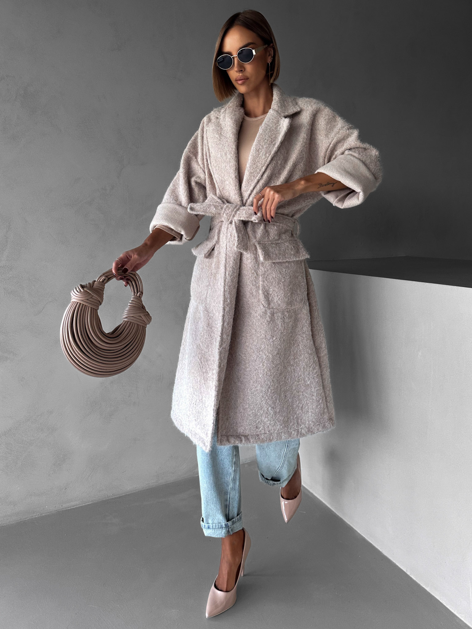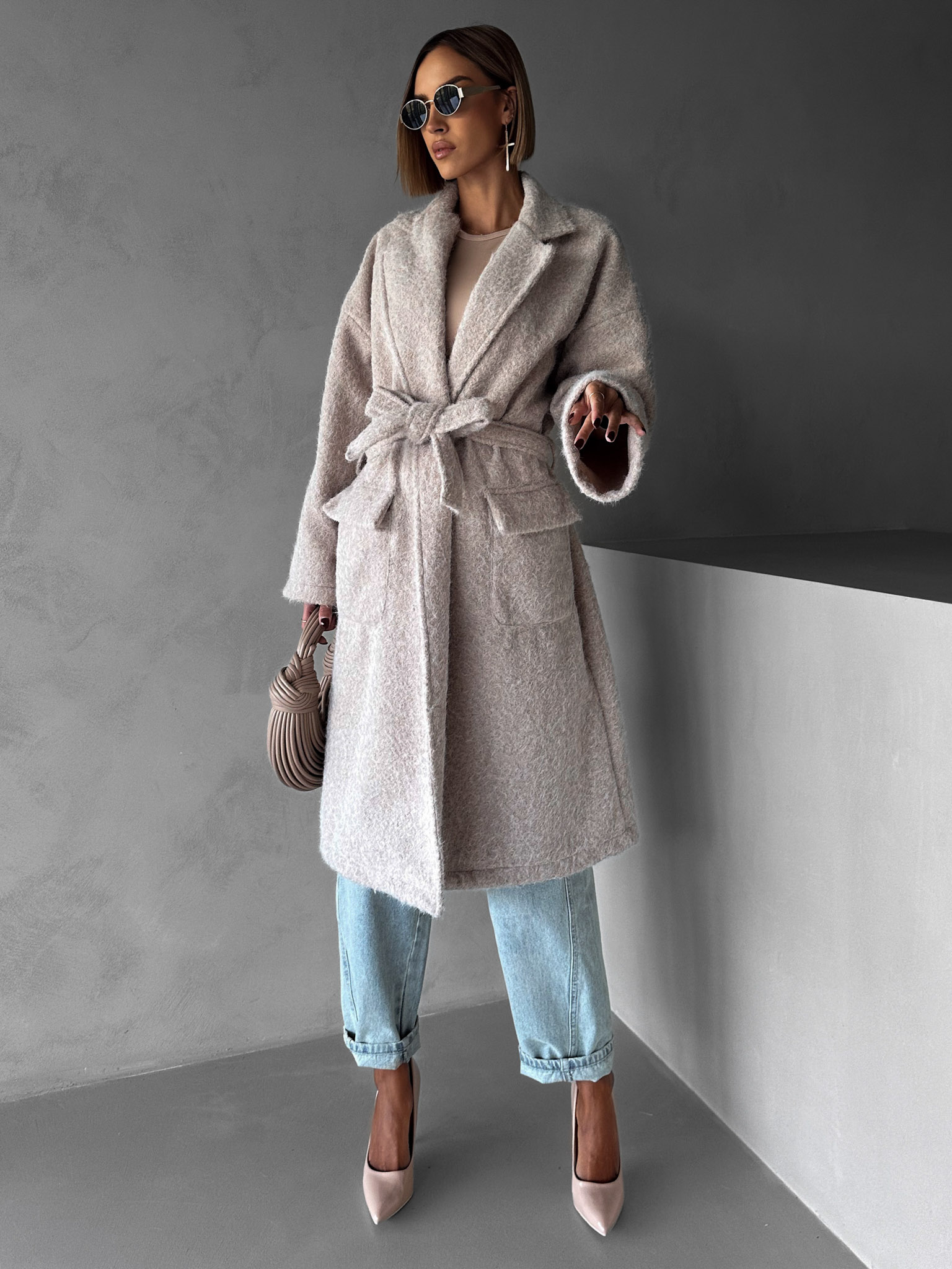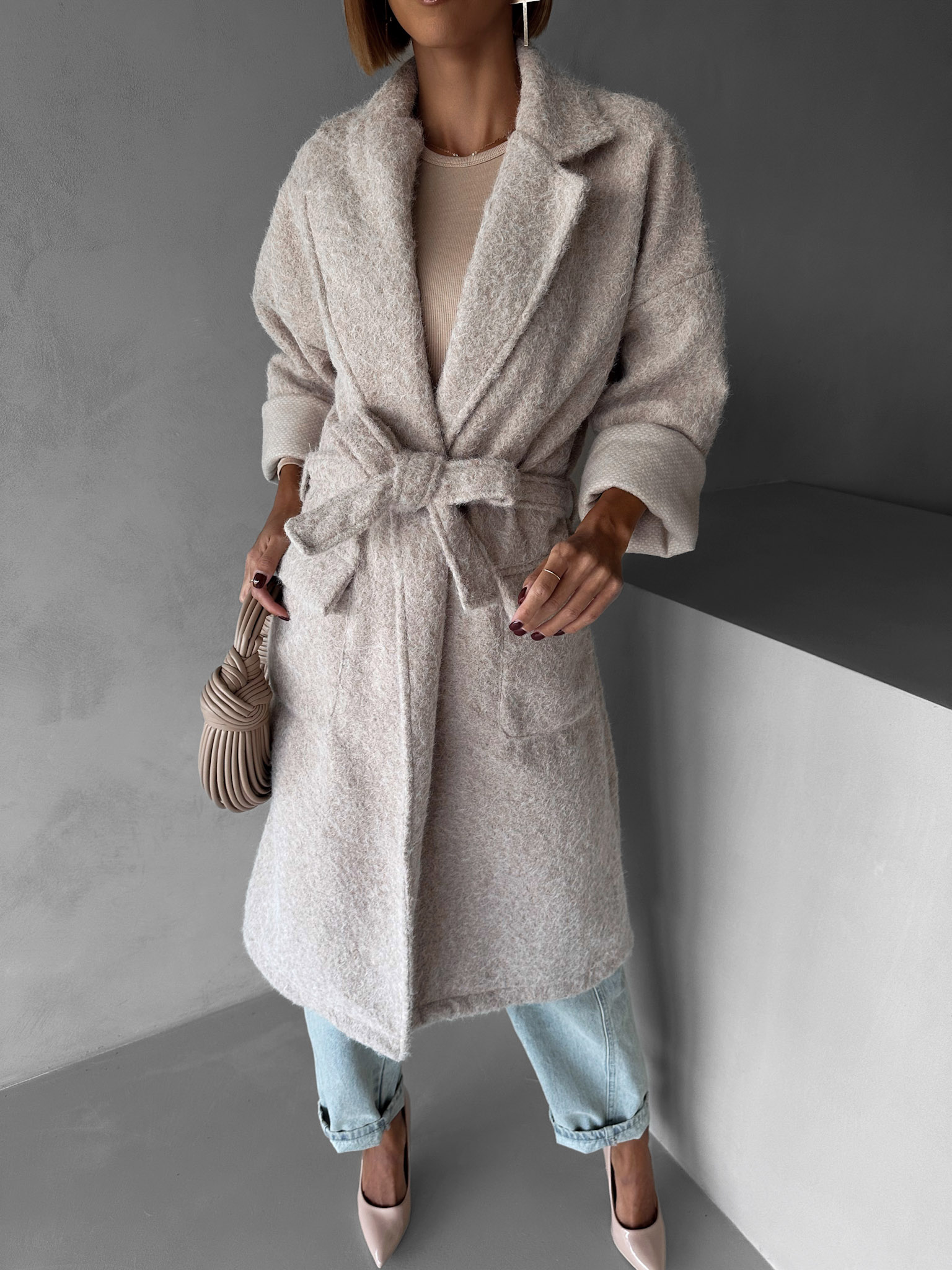 Béžový dlouhý kabát THAISA na zavazování Velikost: ONESIZE