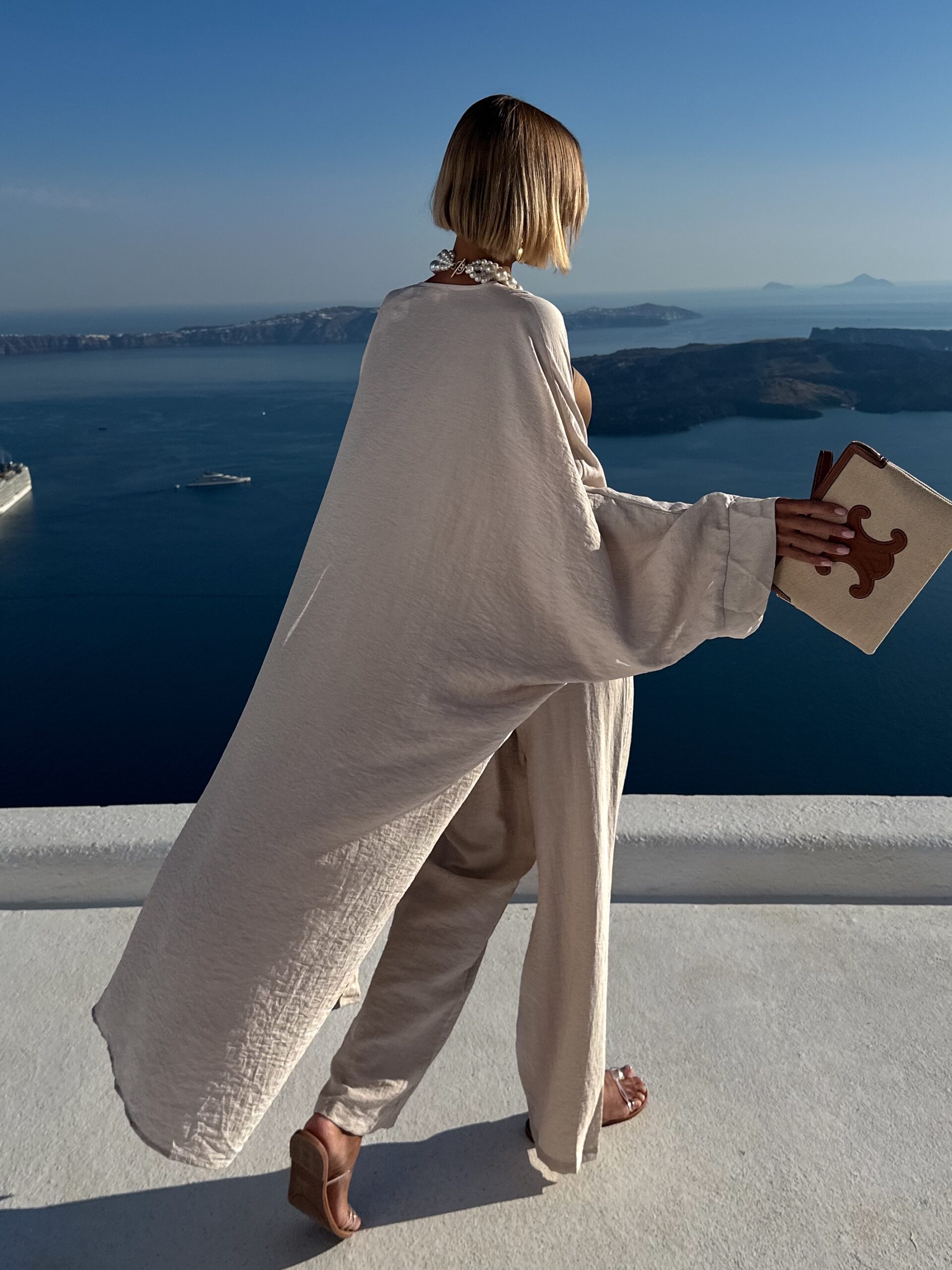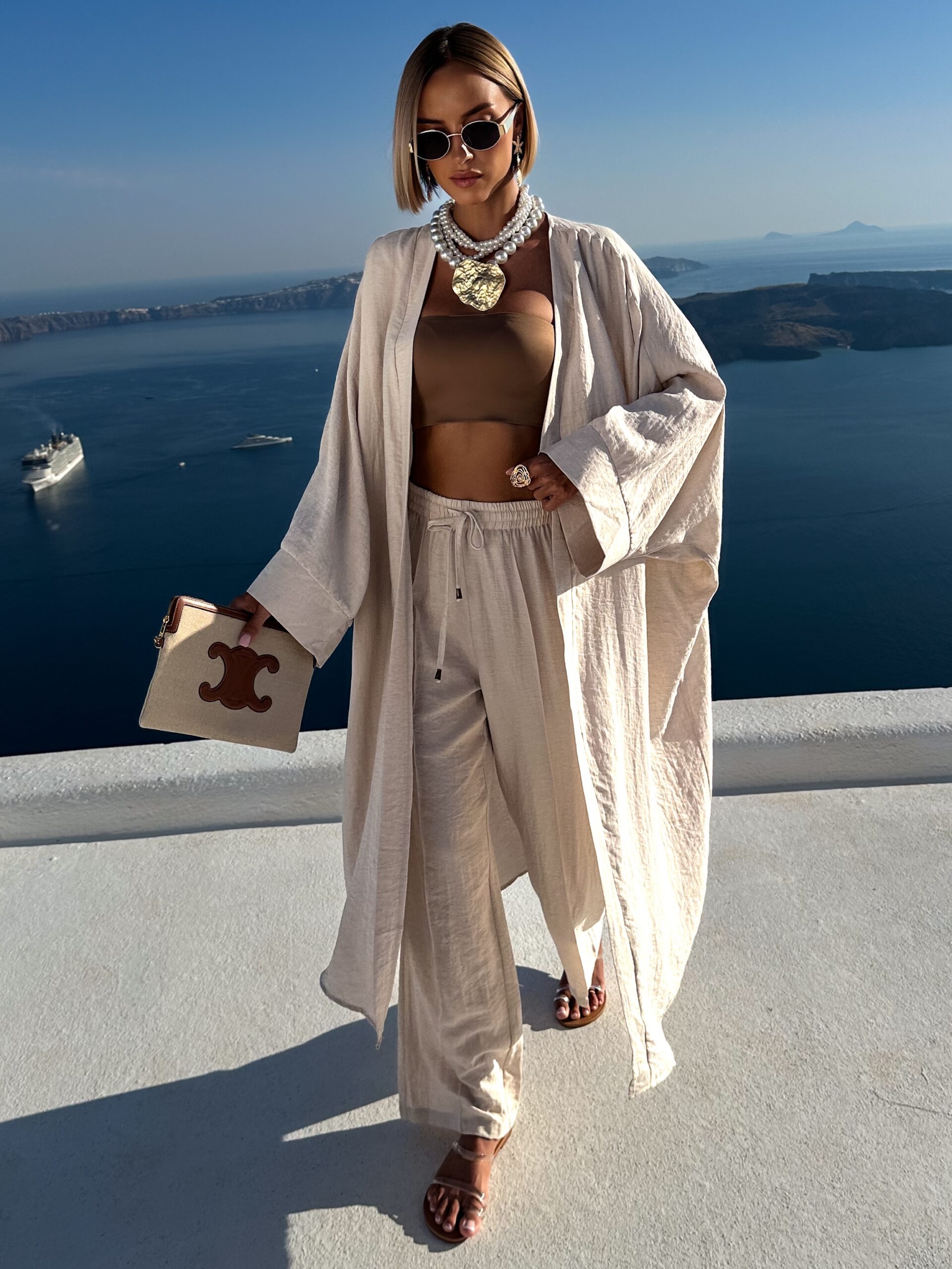 Béžový elegantní kalhotový oversize komplet GENARIA Velikost: S