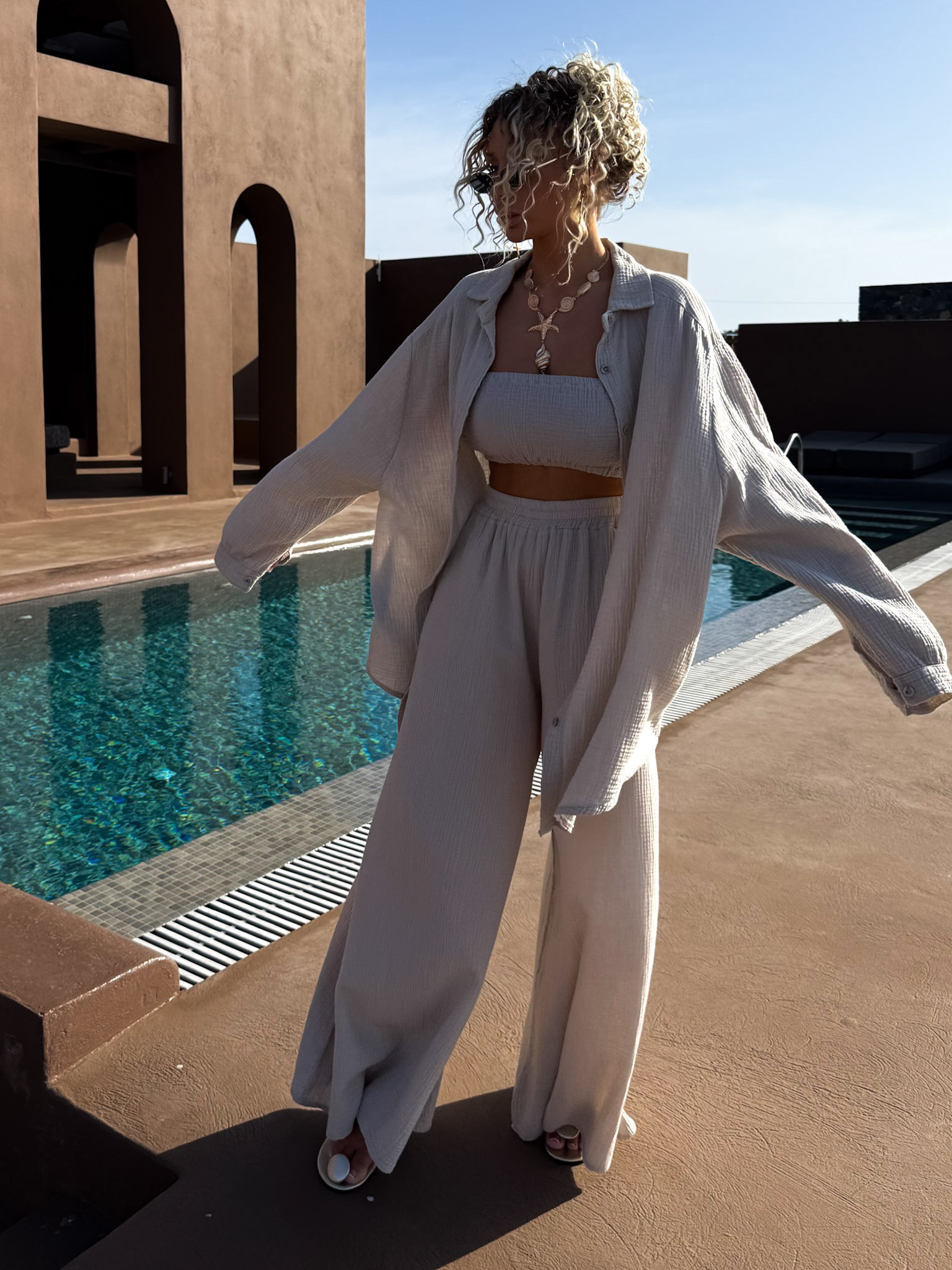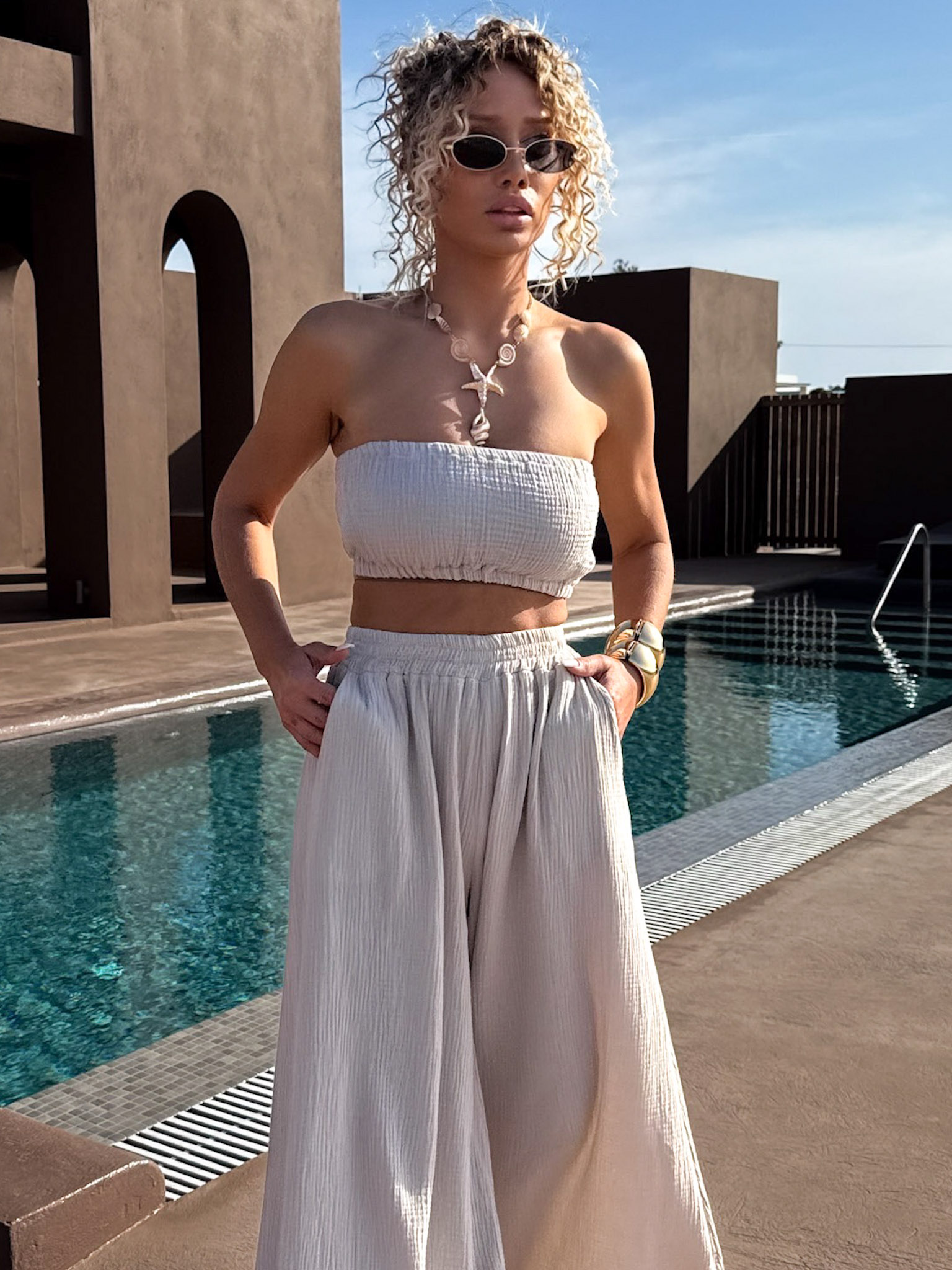Béžový mušelínový crop top BALEEN pás přes prsa Velikost: ONESIZE