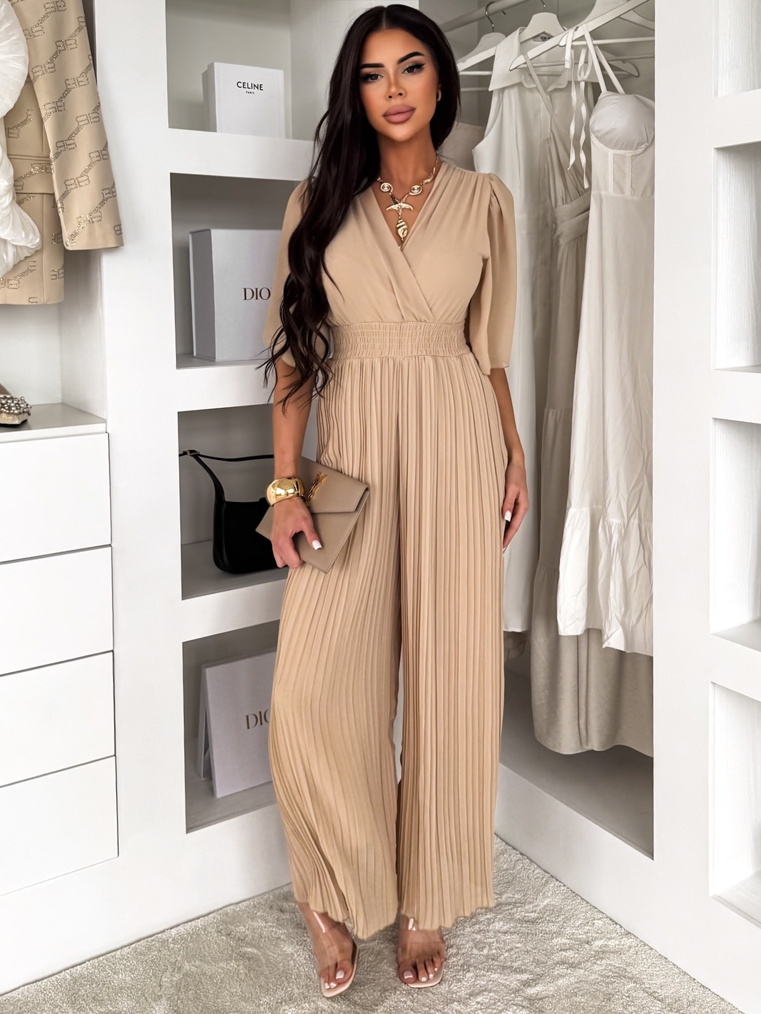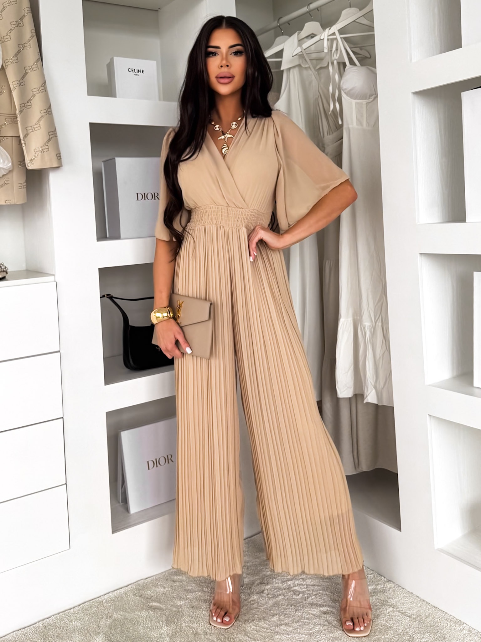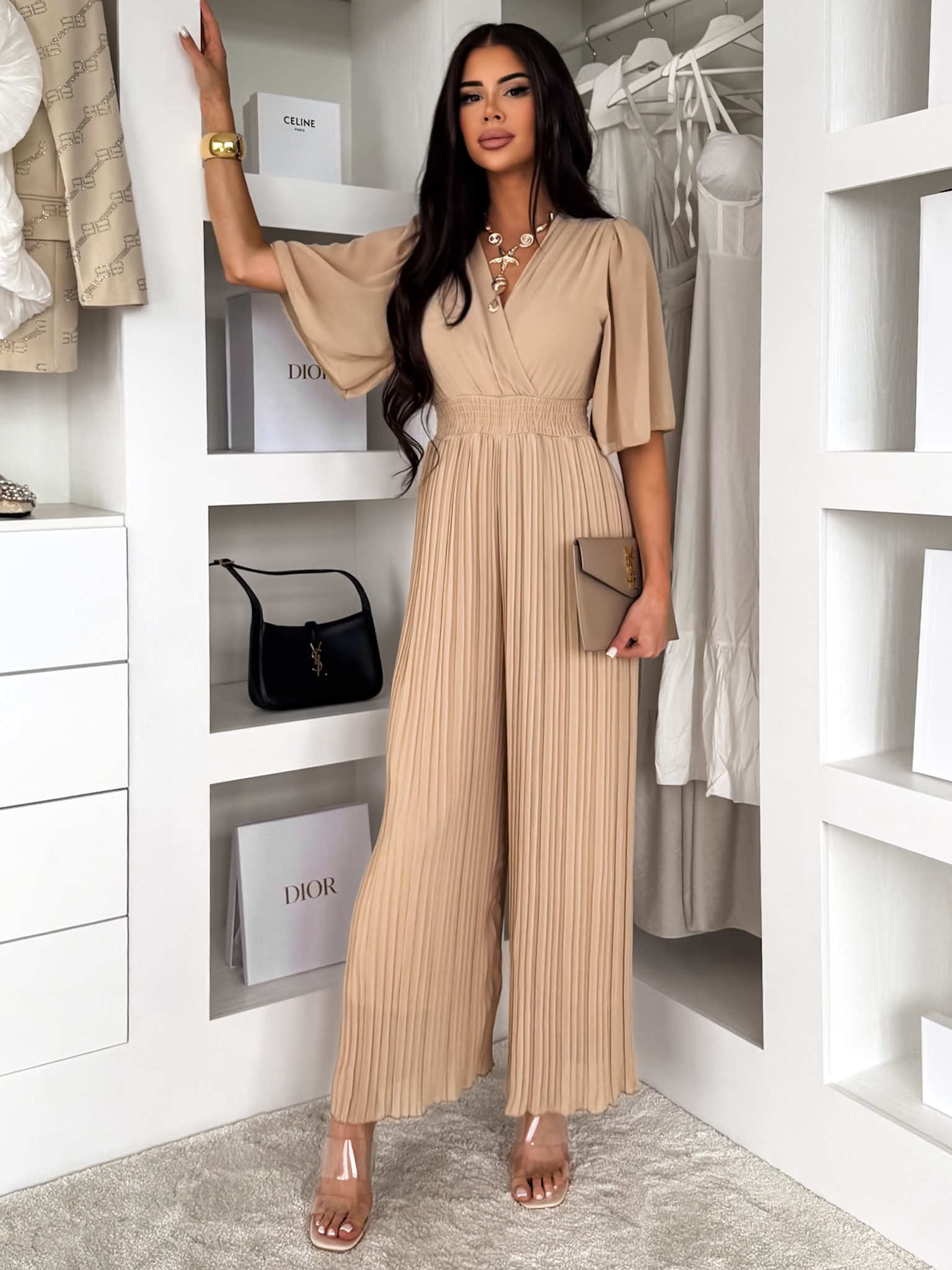 Béžový plisovaný společenský overal QVAKALA Velikost: ONESIZE