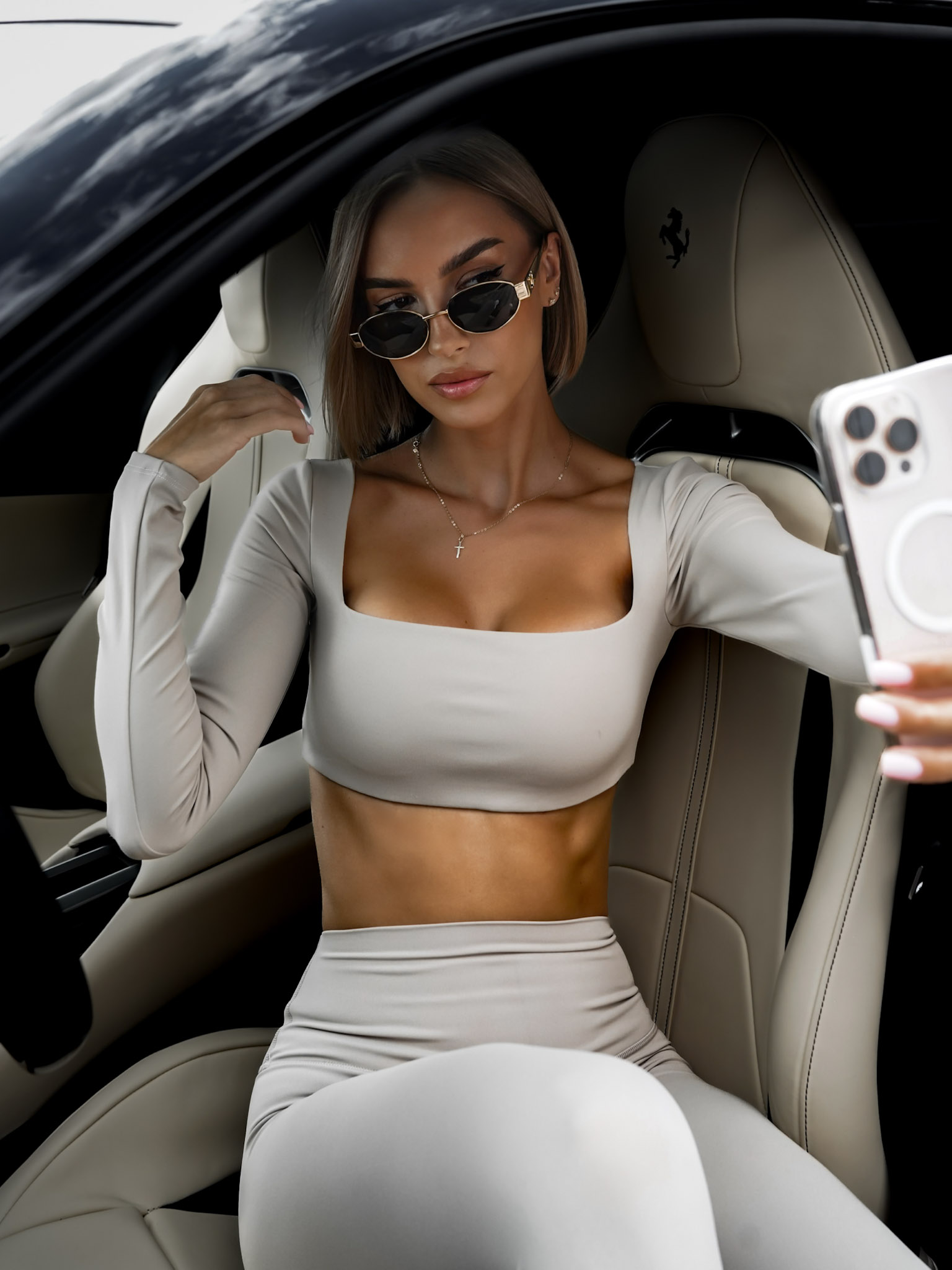 Béžový sportovní top EVORIX s dlouhým rukávem Velikost: L