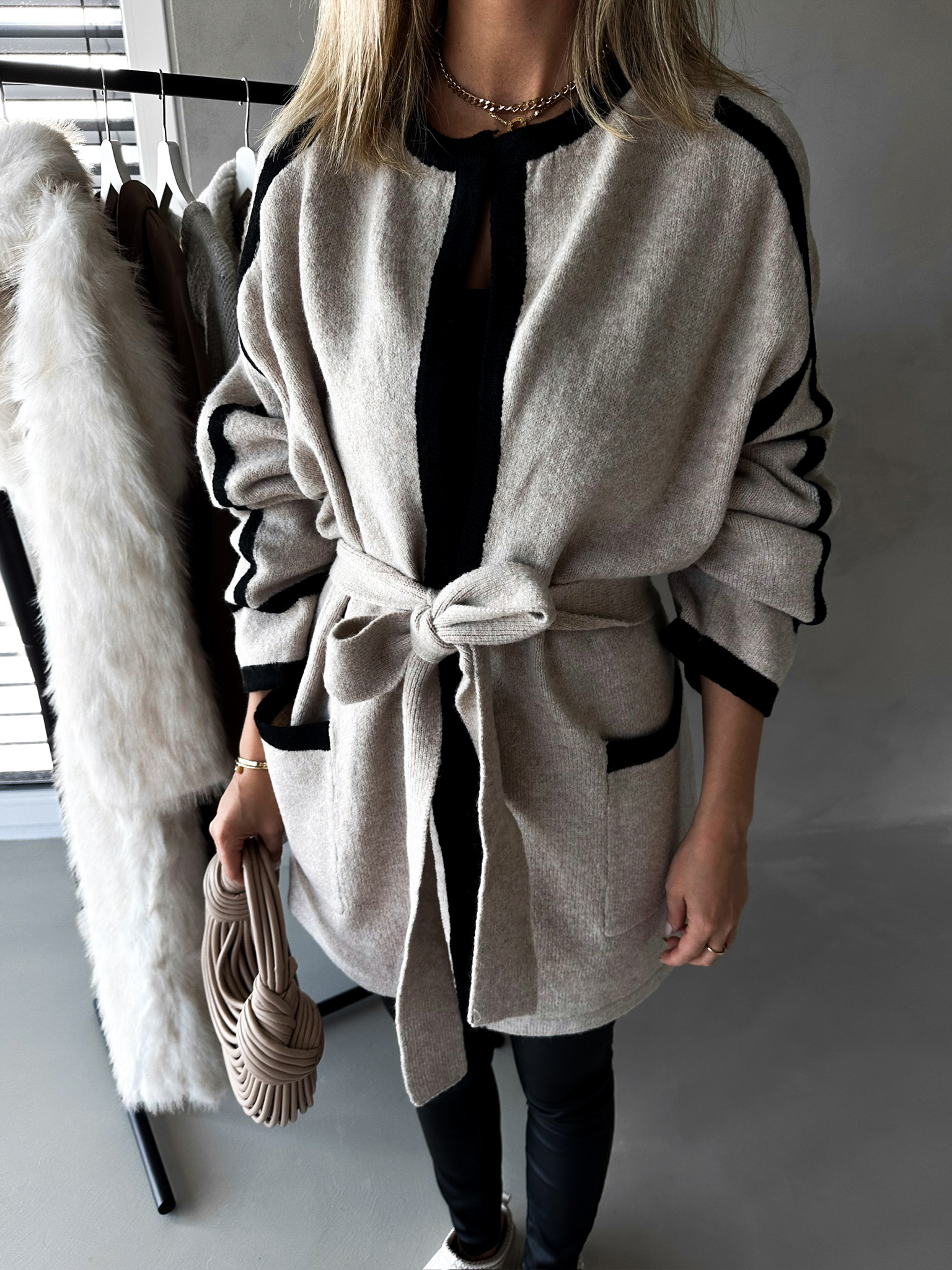 Béžový svetrový cardigan MARFA s páskem Velikost: ONESIZE