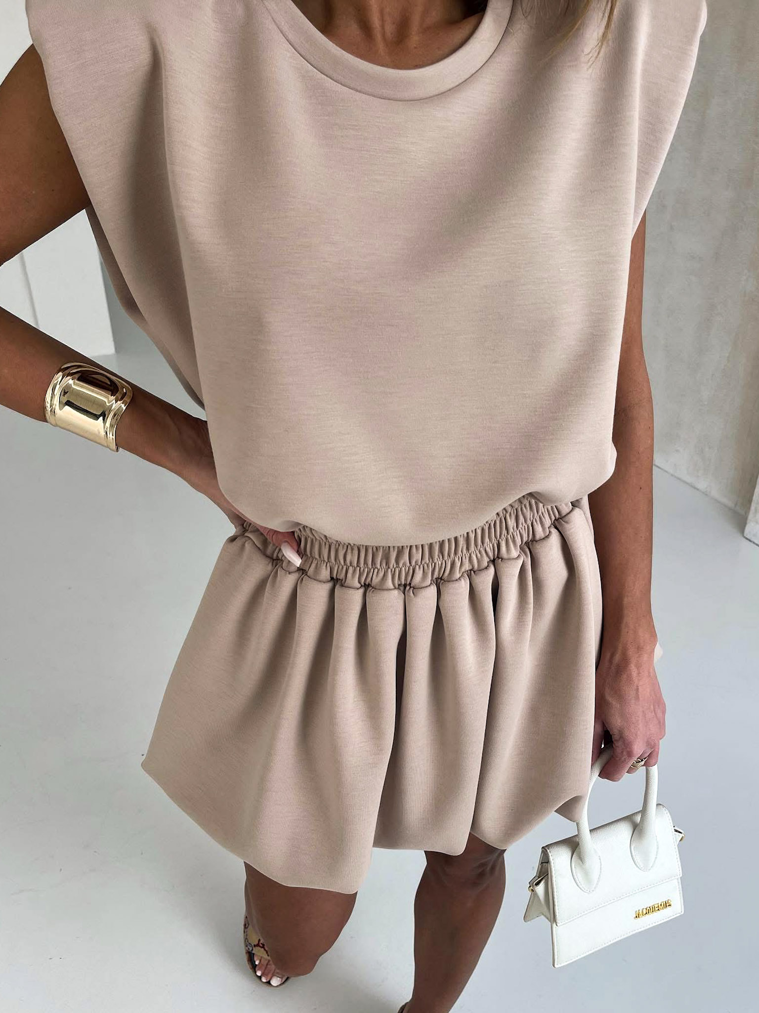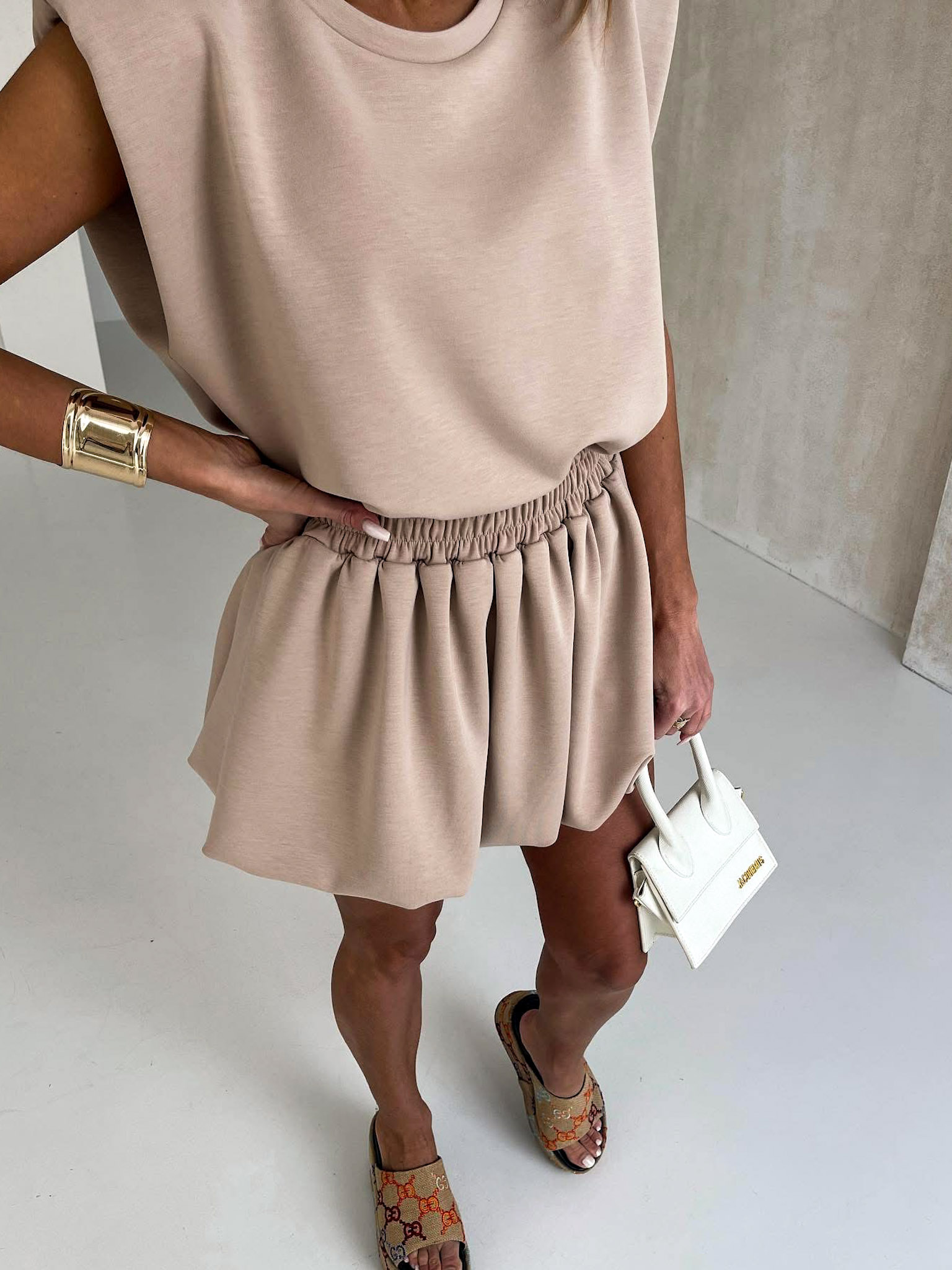 Béžový teplákový krátký komplet TAPPY se sukní Velikost: ONESIZE