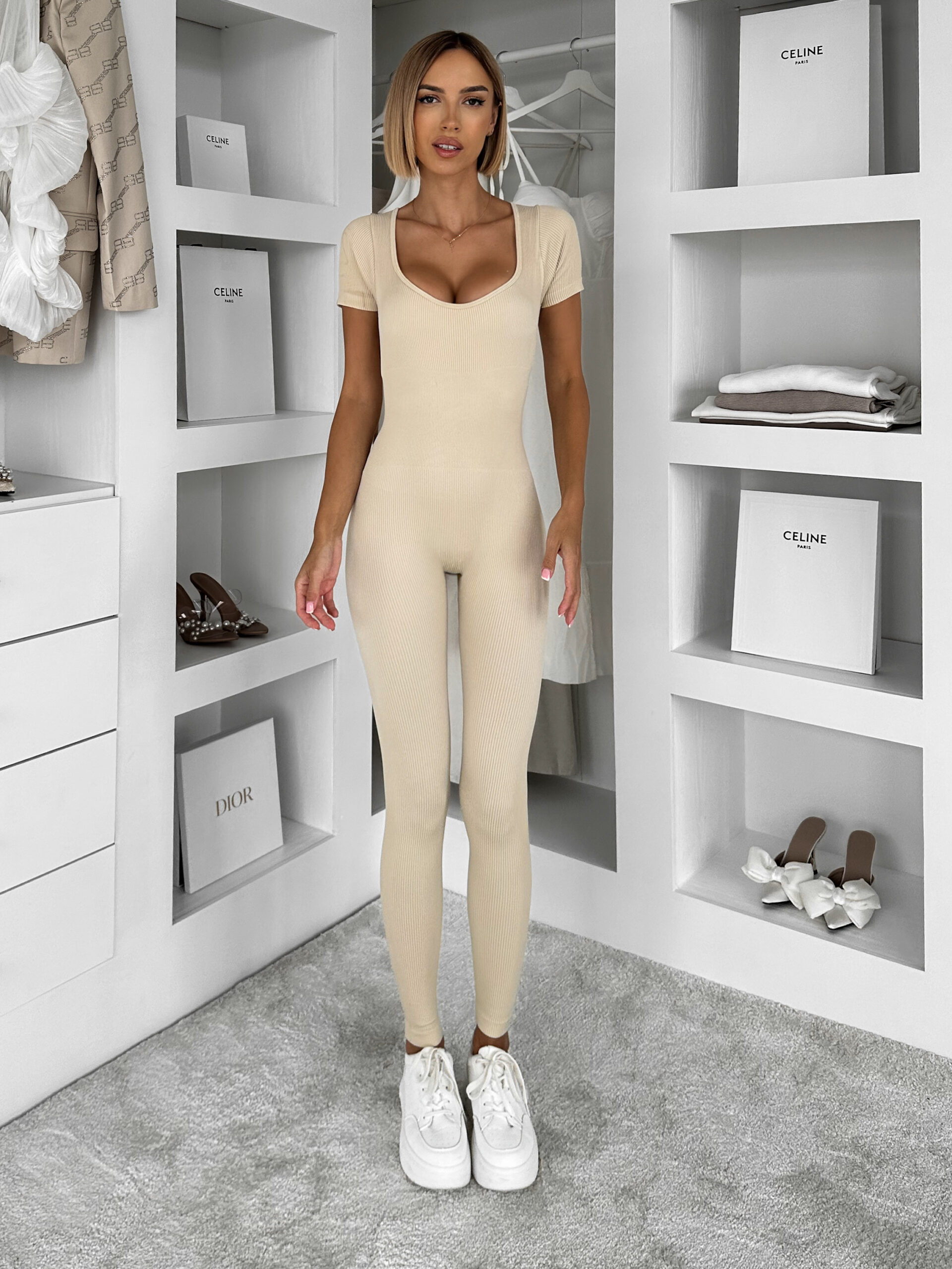 Béžový tvarující overal GRAYZE s krátkým rukávem Velikost: M/L