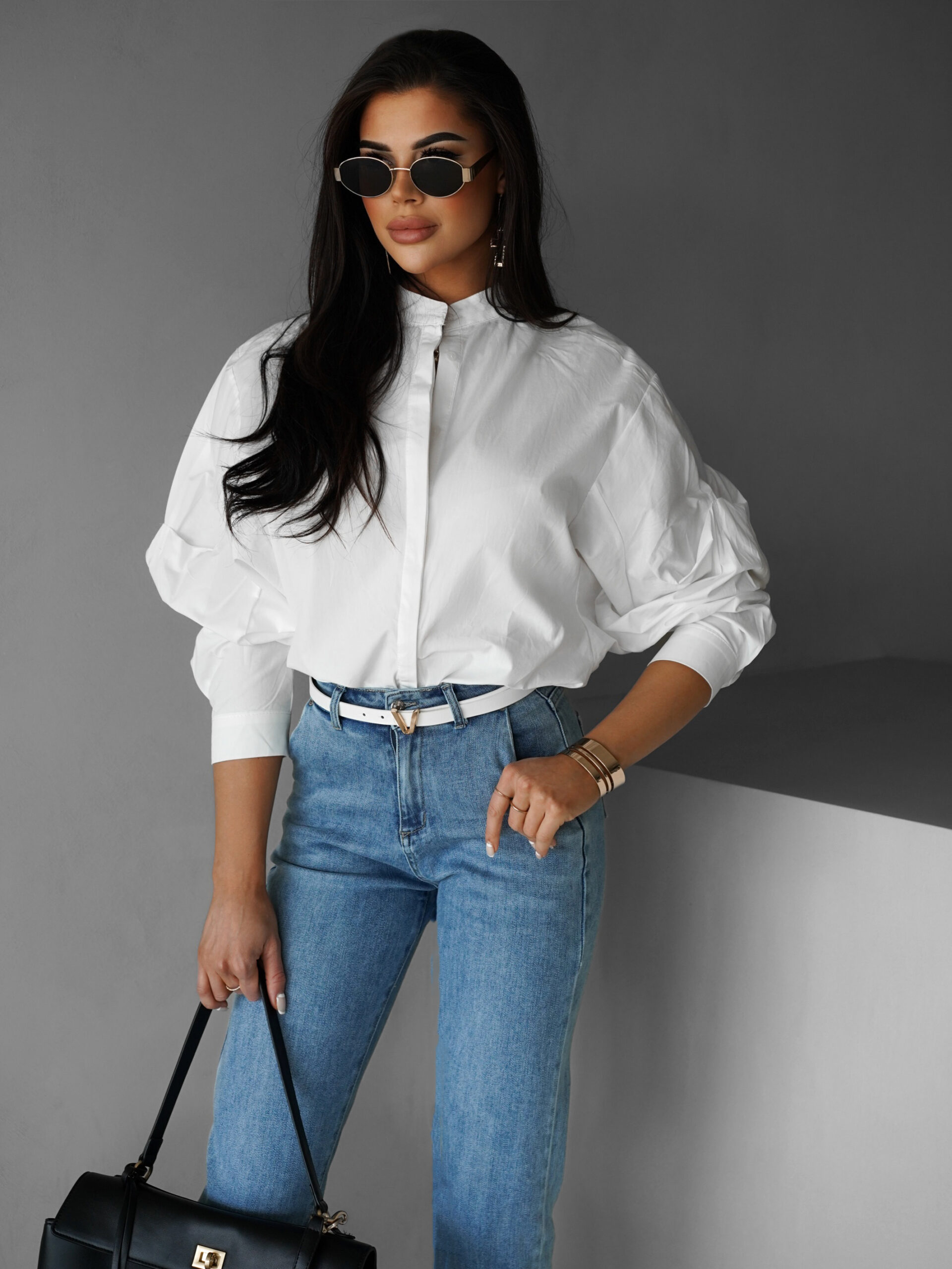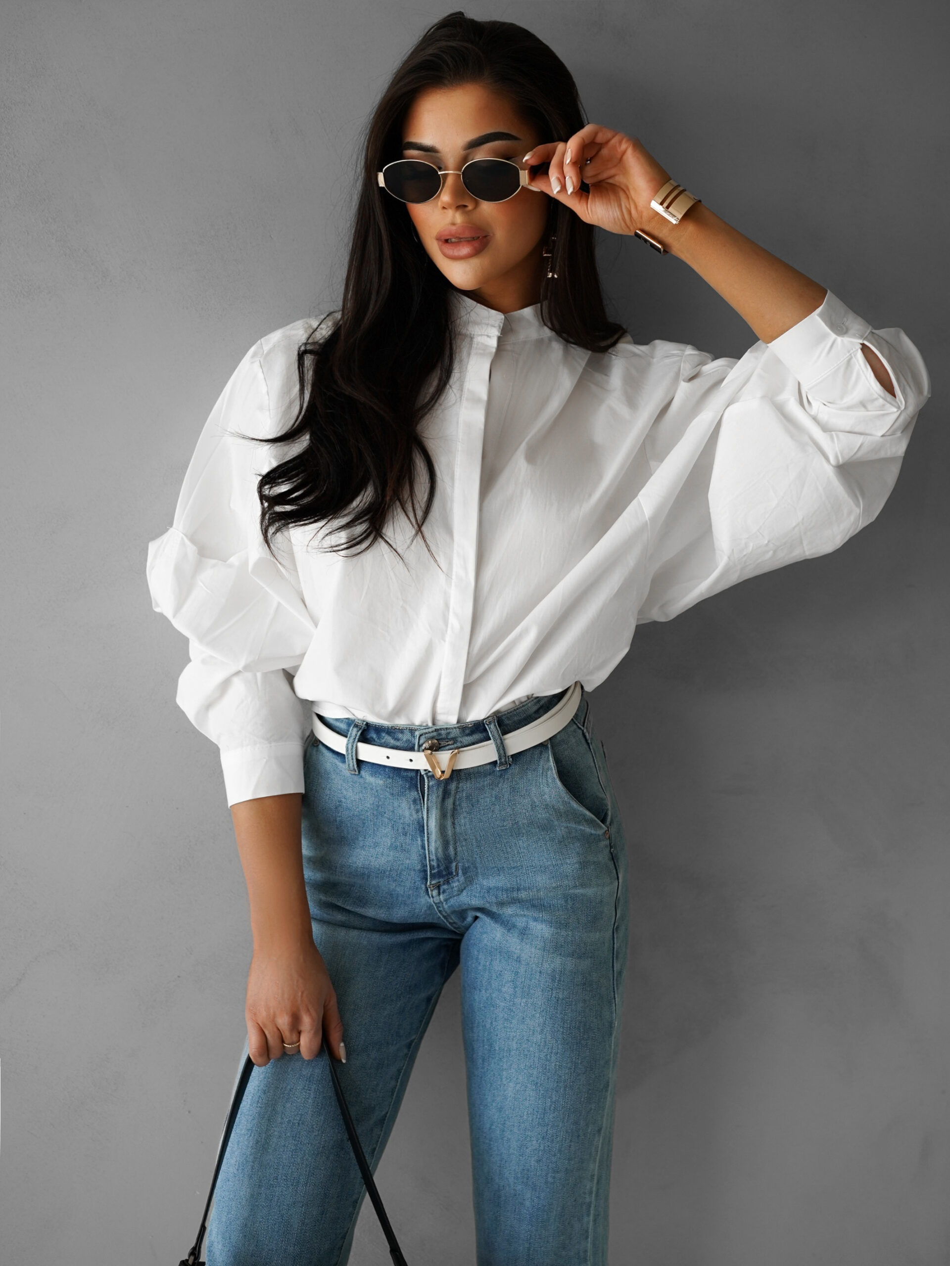 Bílá bavlněná košile OSKARY s dlouhým rukávem Velikost: ONESIZE