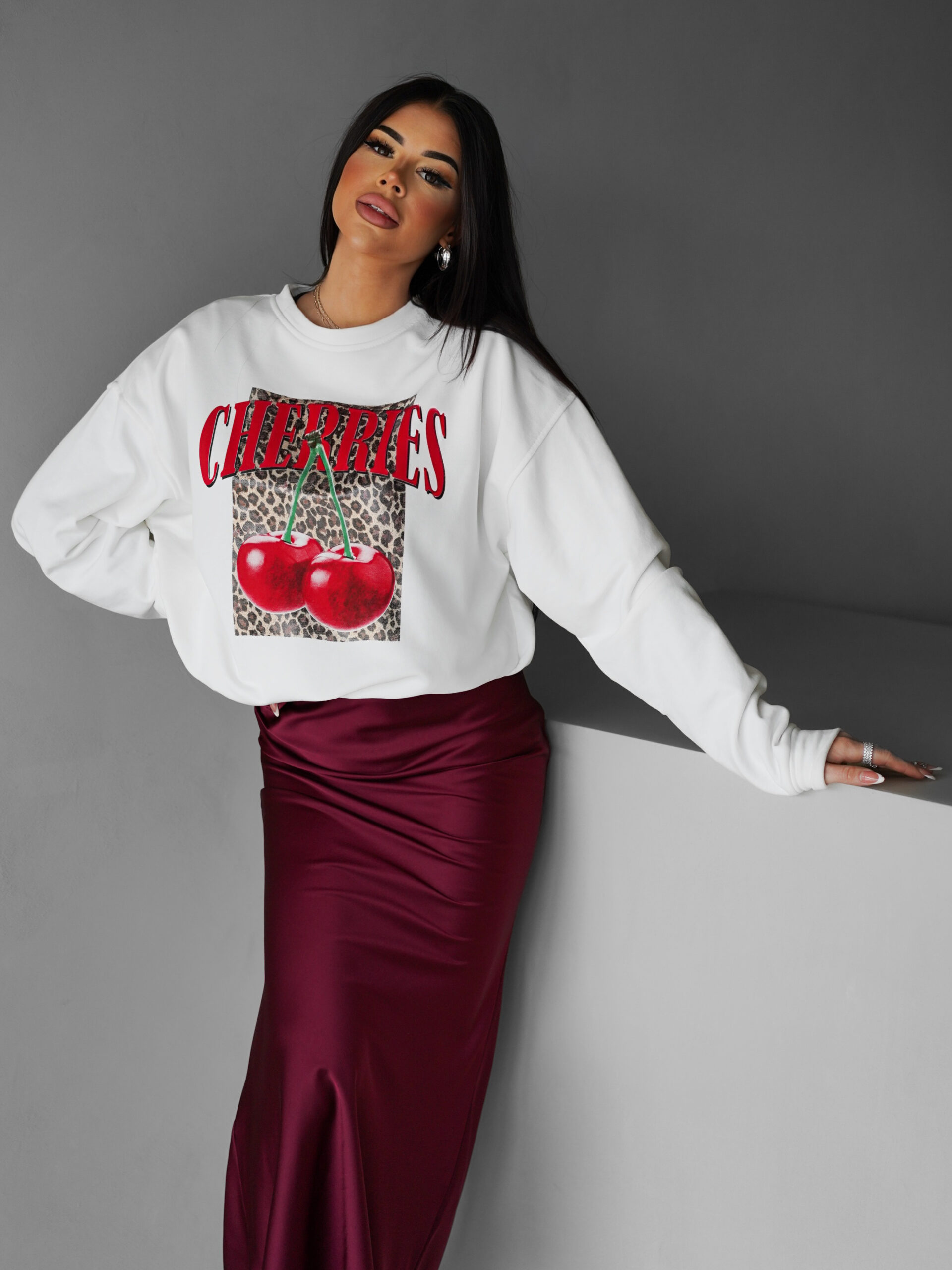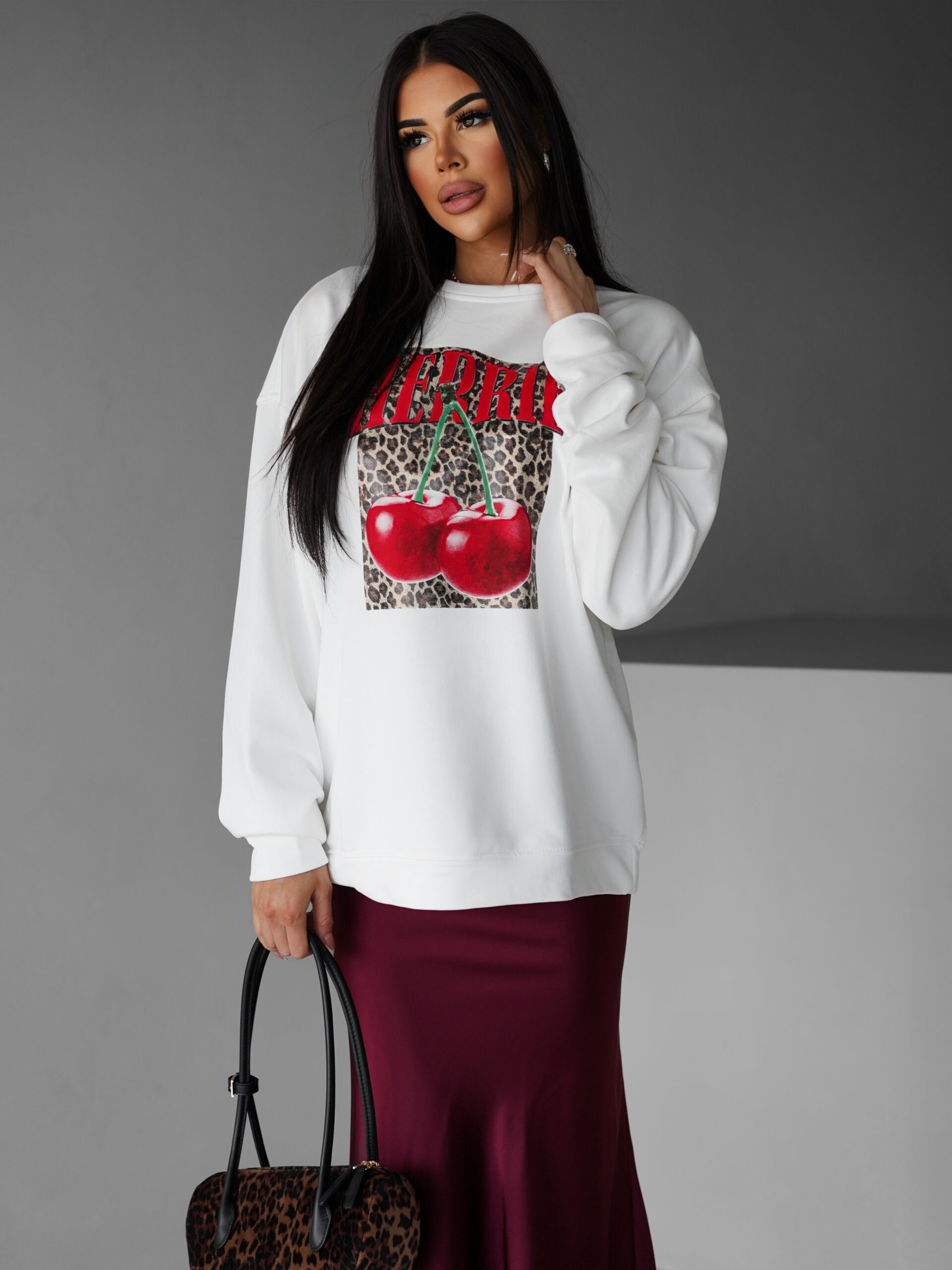 Bílá bavlněná oversize mikina MEYTAL s potiskem Velikost: ONESIZE