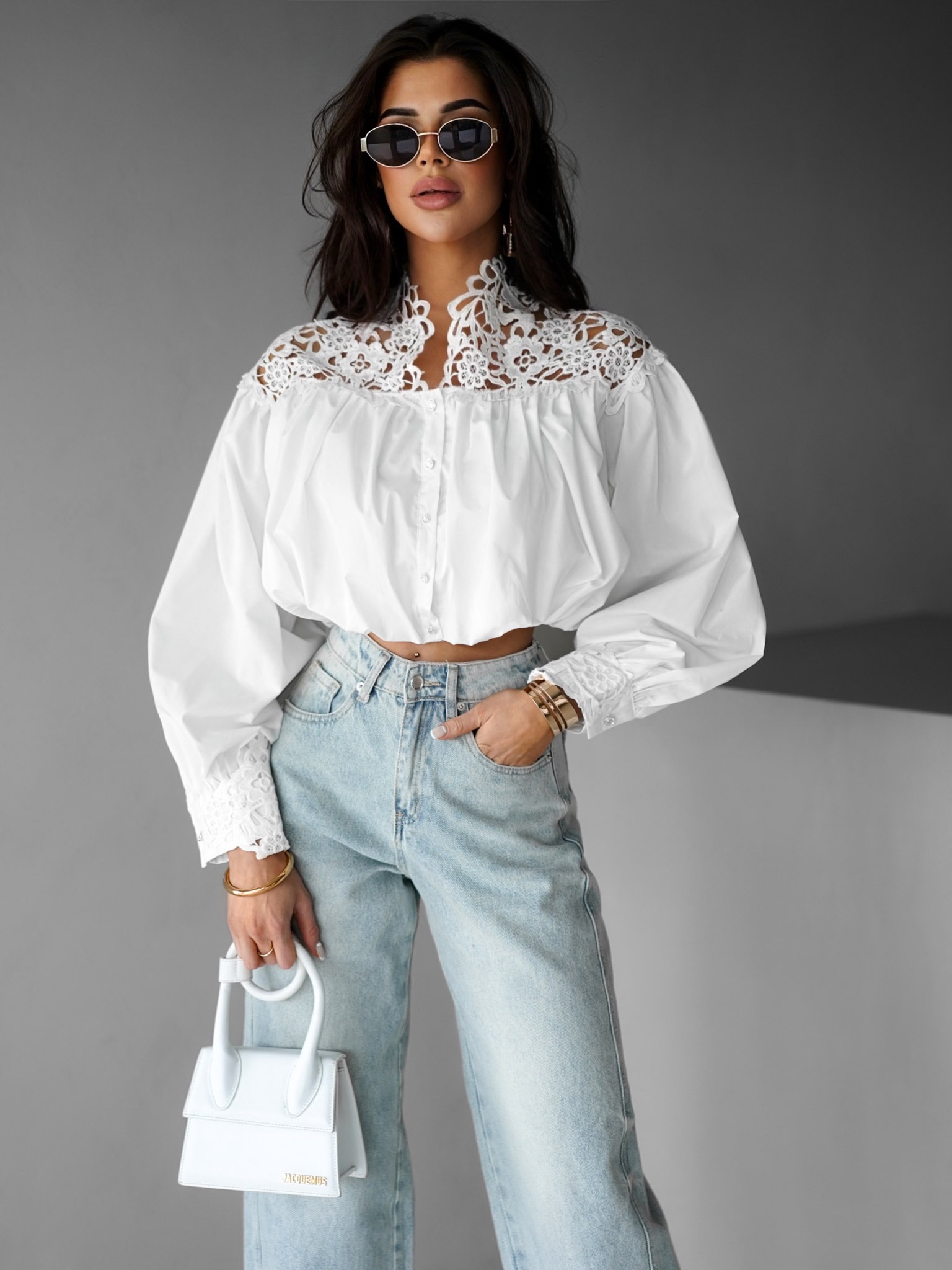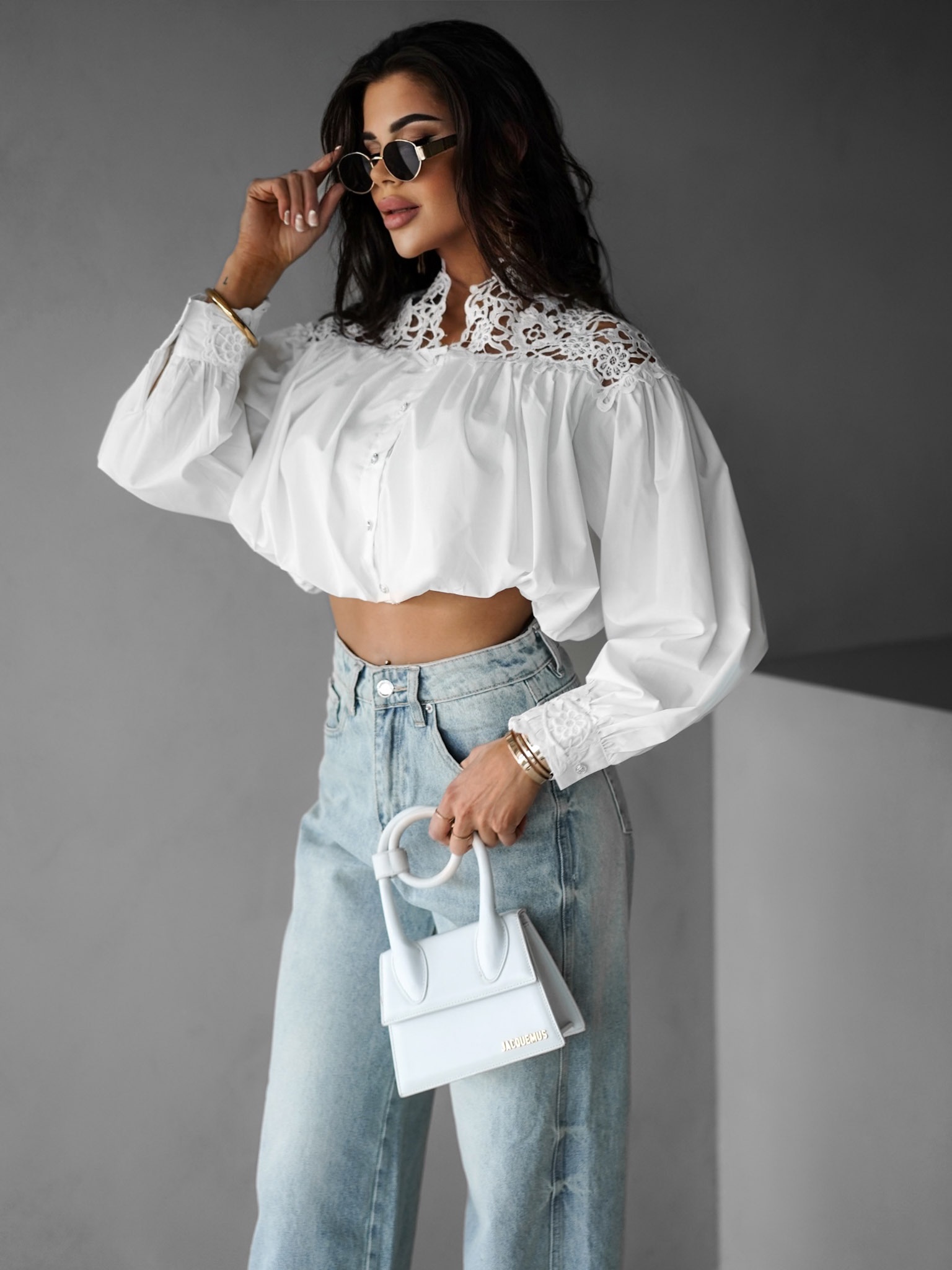 Bílá krátká crop halenka KINELY Velikost: M/L