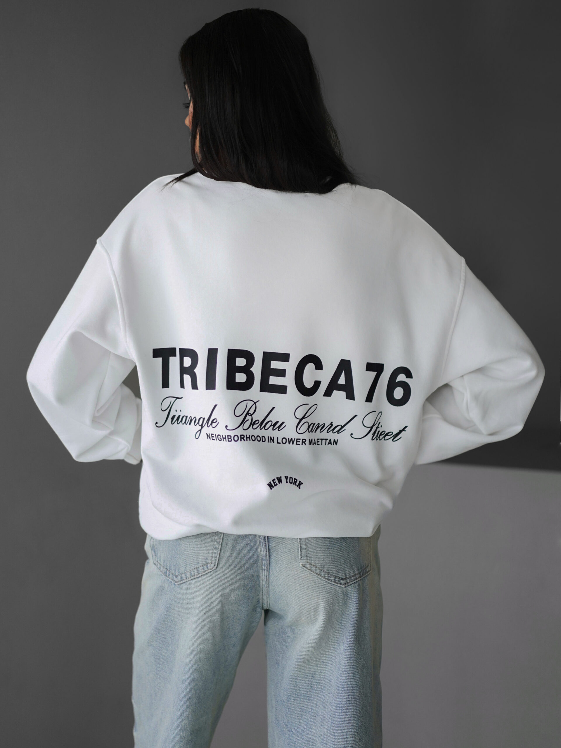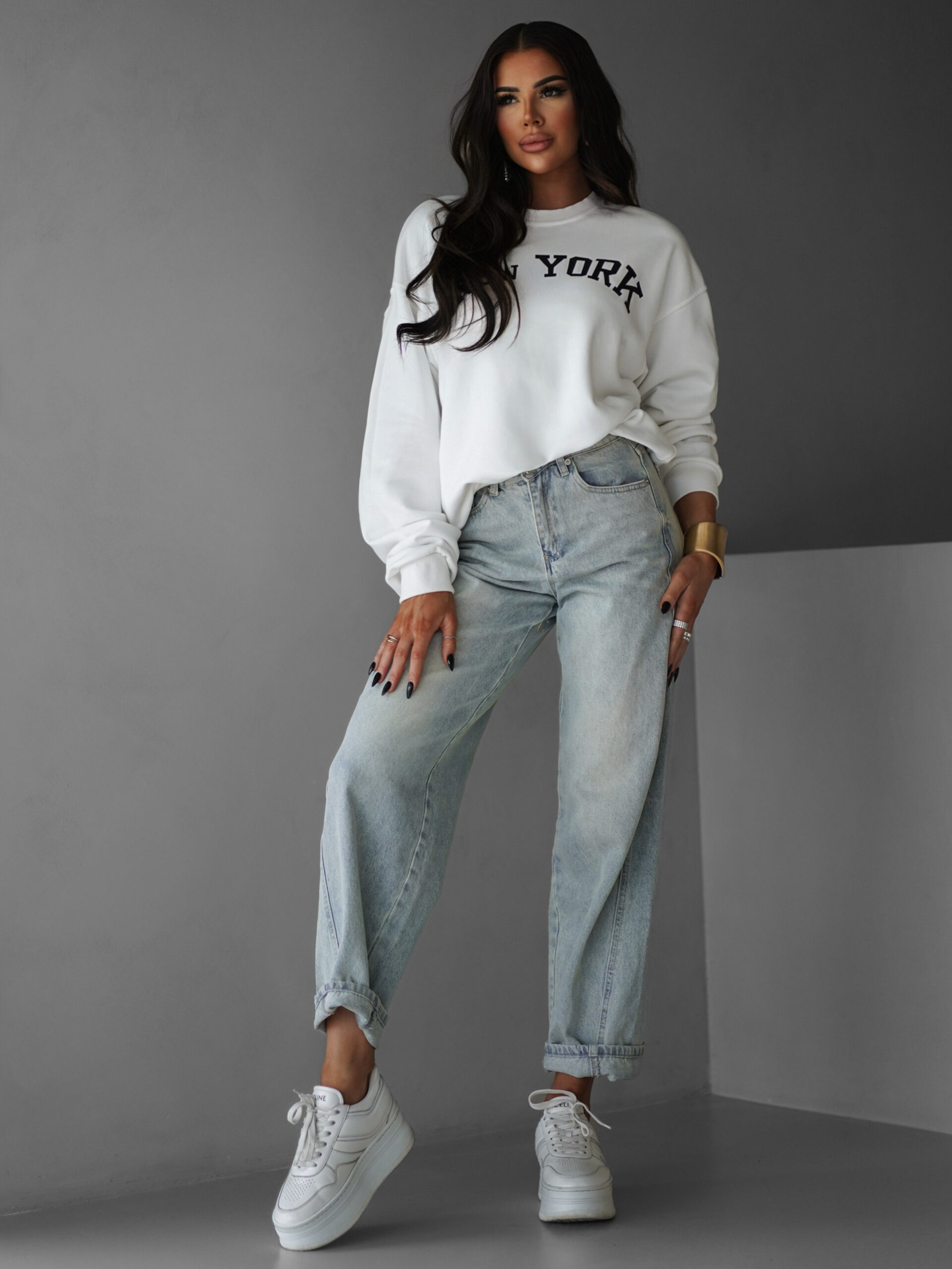 Bílá oversize bavlněná mikina MATEA s potiskem Velikost: ONESIZE