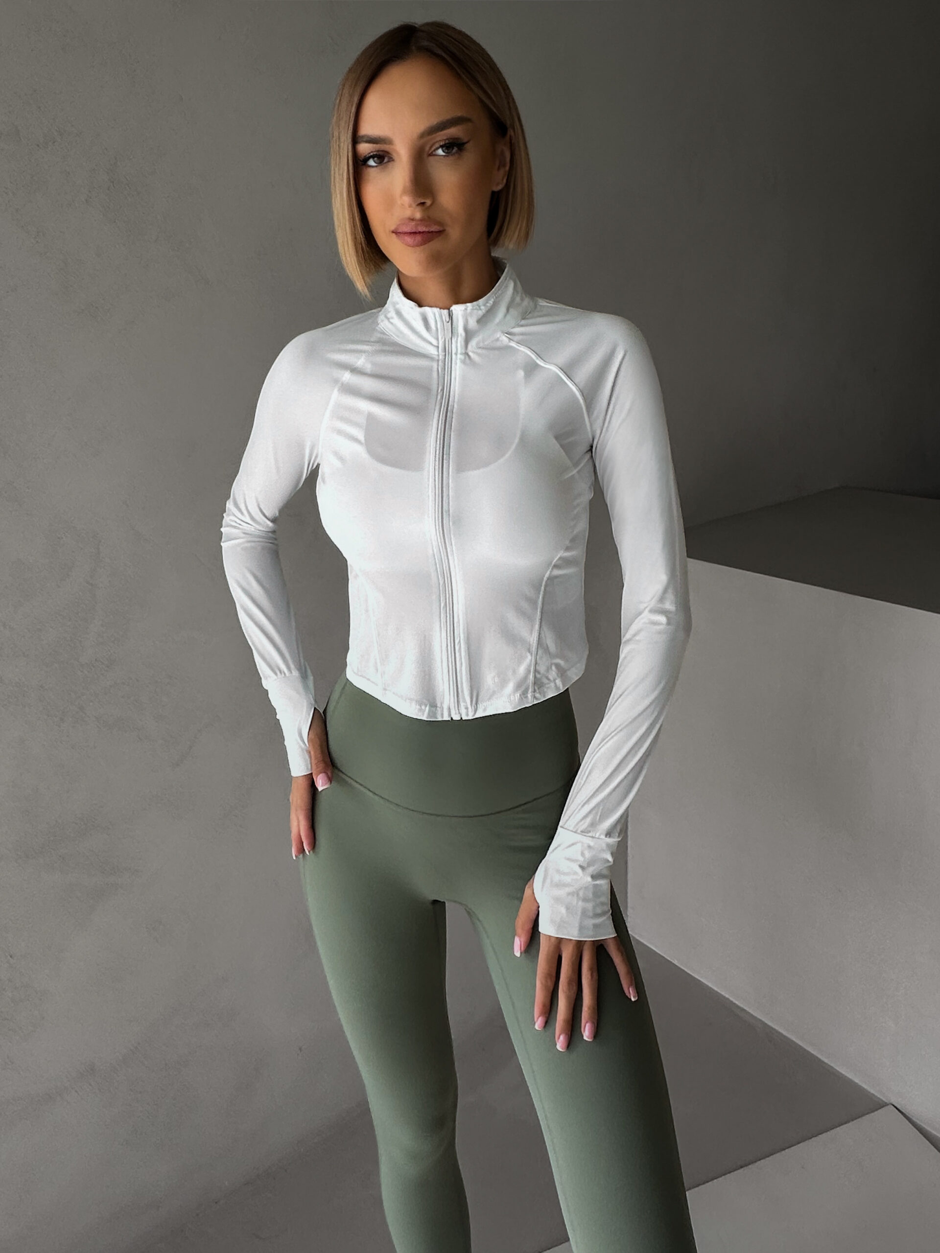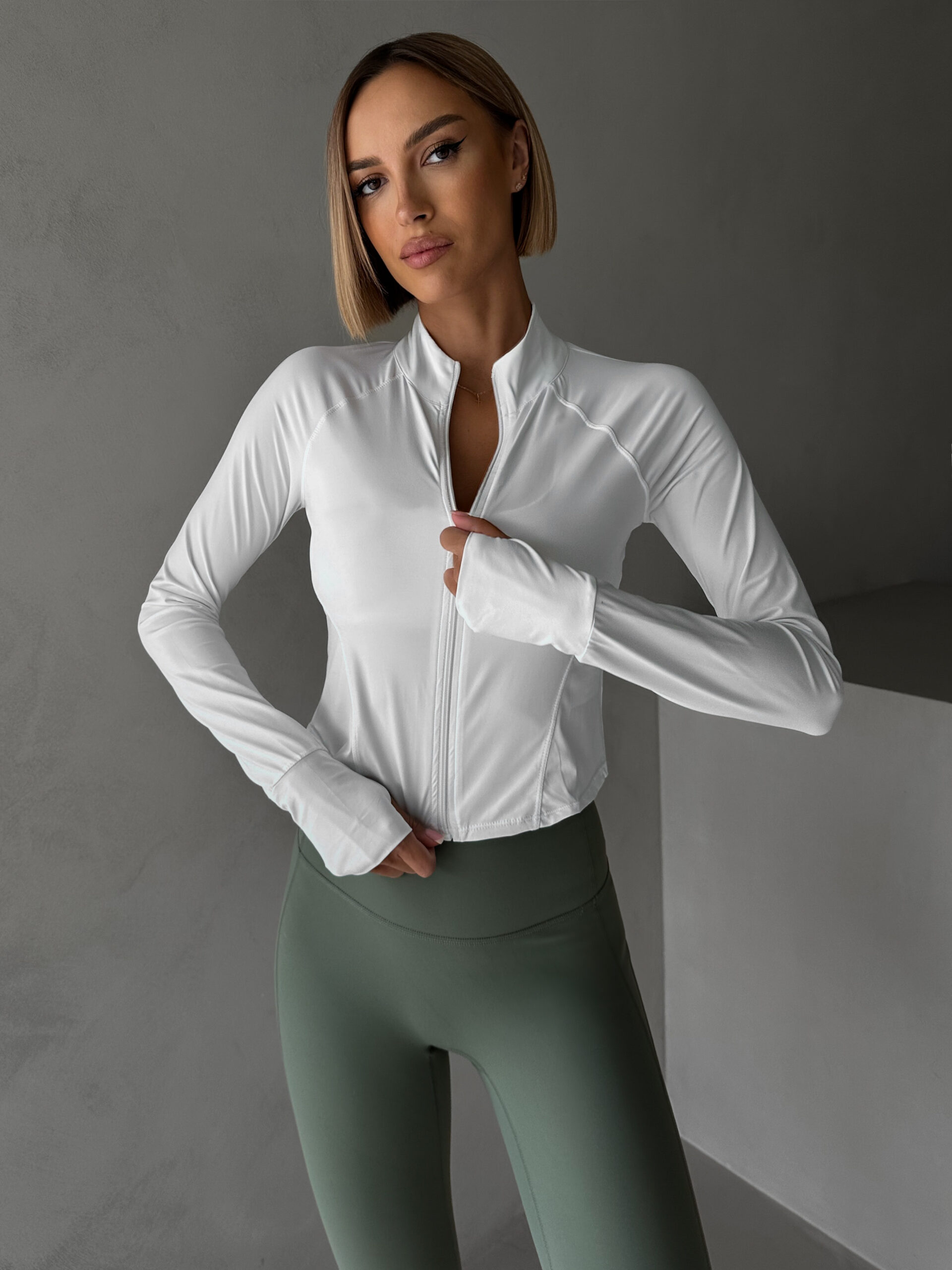 Bílá sportovní mikina OMIREY na zip Velikost: M
