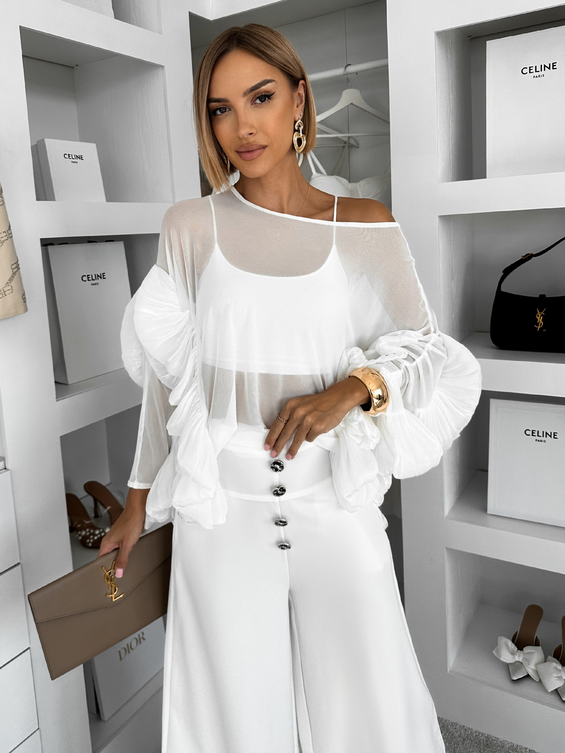 Bílá volánková transparentní halenka LIORA Velikost: S/M