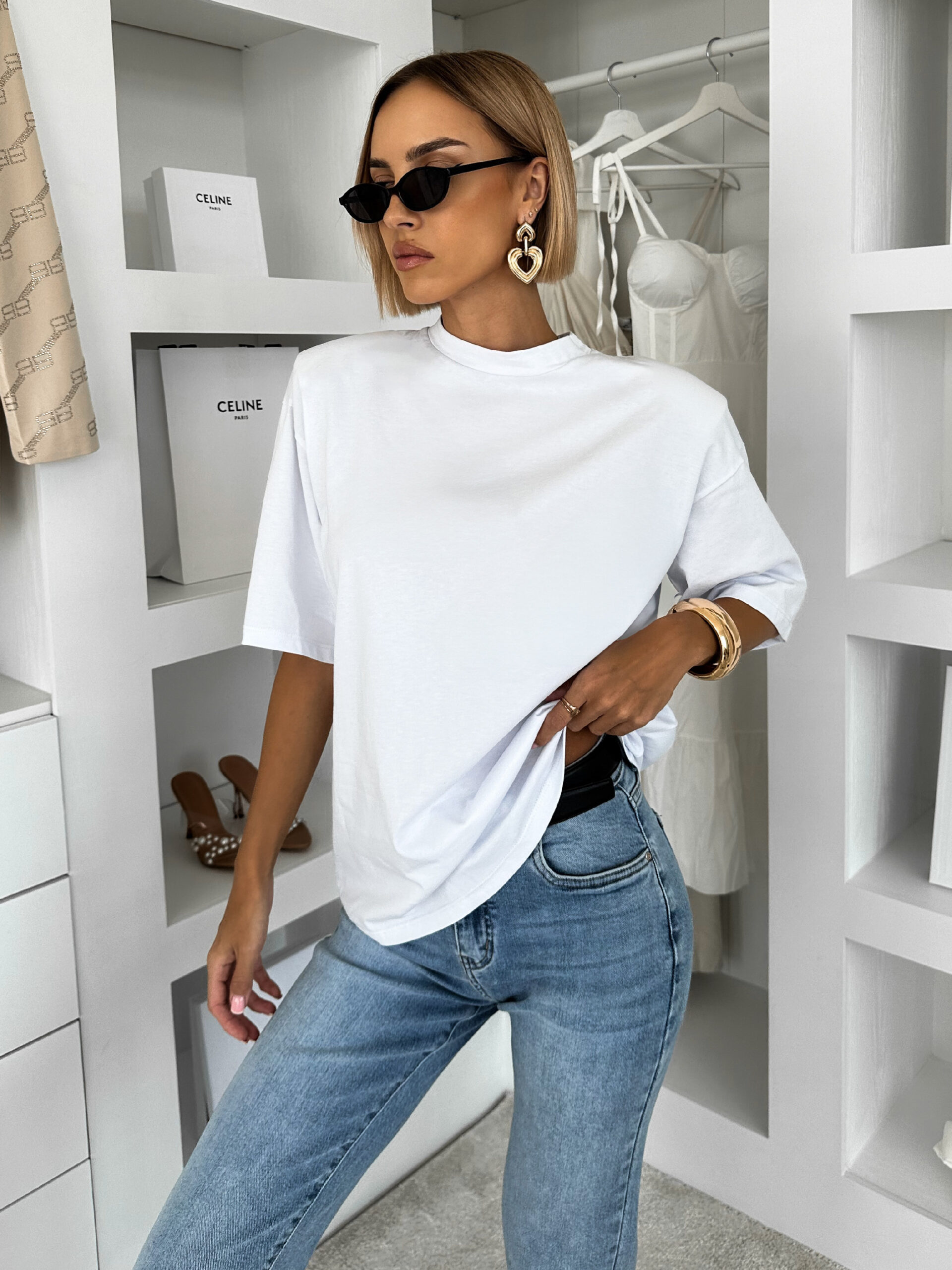 Bílé 100% bavlna oversize tričko DELYS s krátkým rukávem Velikost: ONESIZE