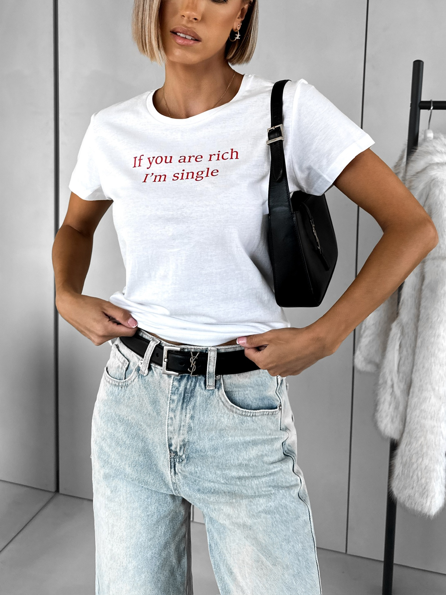 Bílé bavlněné tričko RICHENZA If you are rich I'm single Velikost: ONESIZE