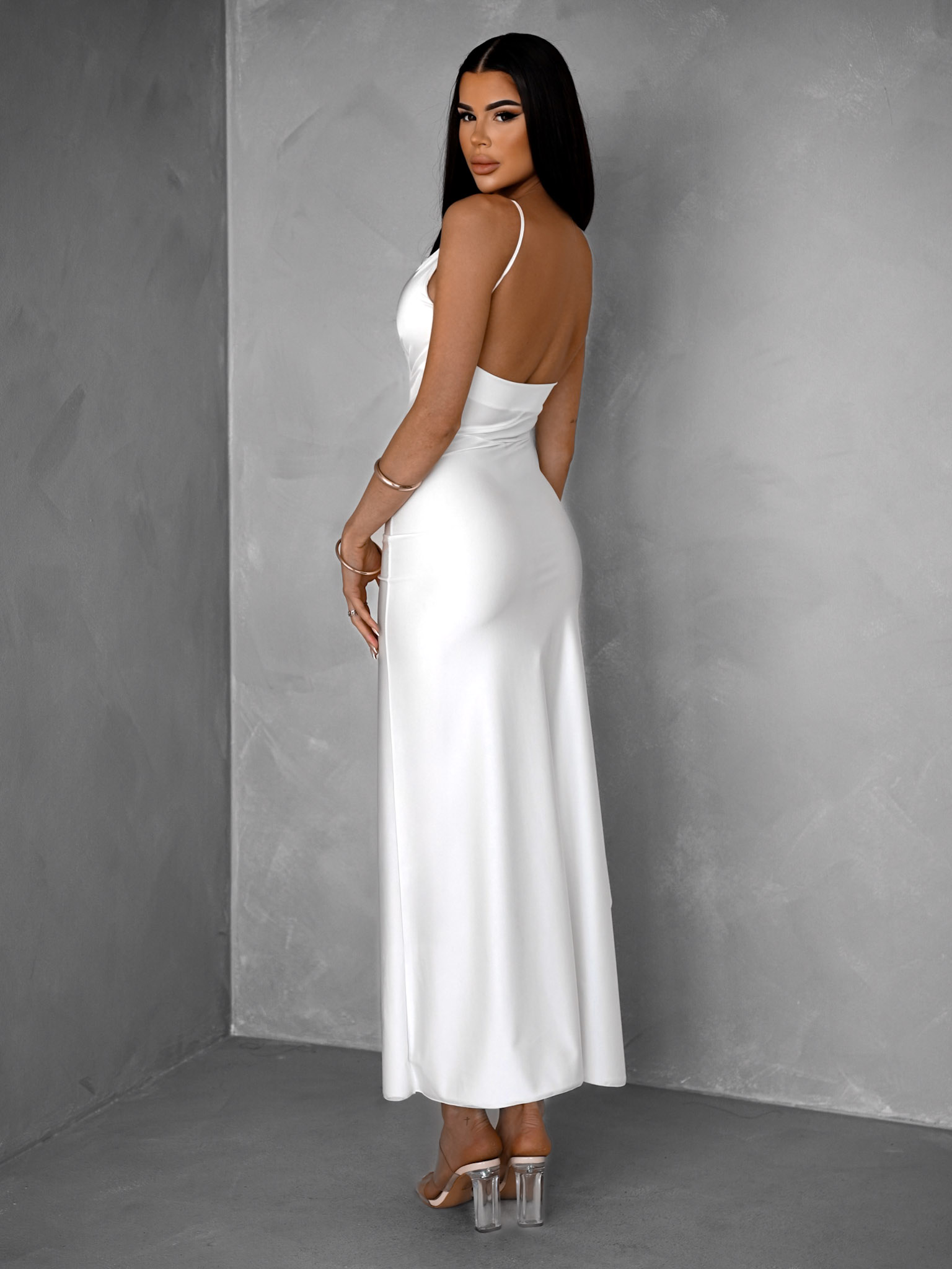 Bílé dlouhé asymetrické šaty ARWEN s rozparkem Velikost: ONESIZE