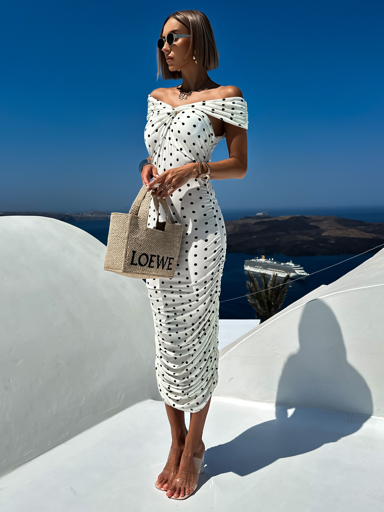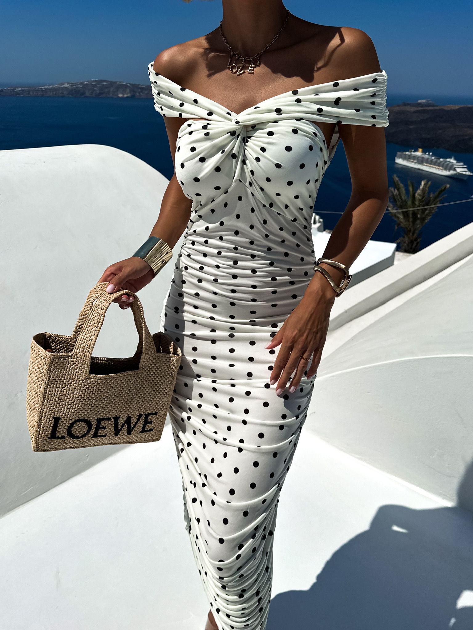 Bílé dlouhé elastické šaty KRAULETINI s puntíky Velikost: ONESIZE