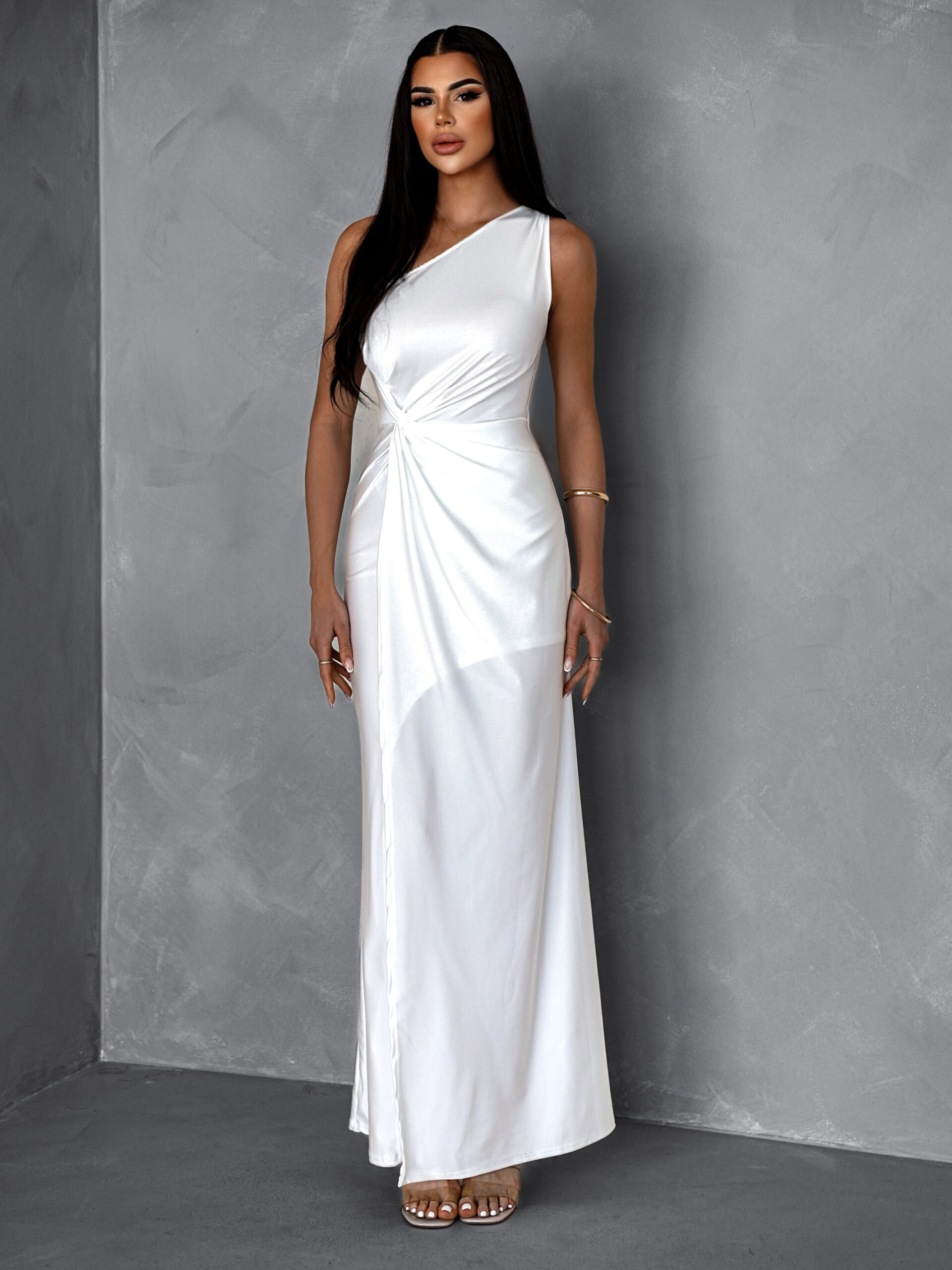 Bílé dlouhé elegantní šaty FIAMMAR na jedno rameno Velikost: ONESIZE