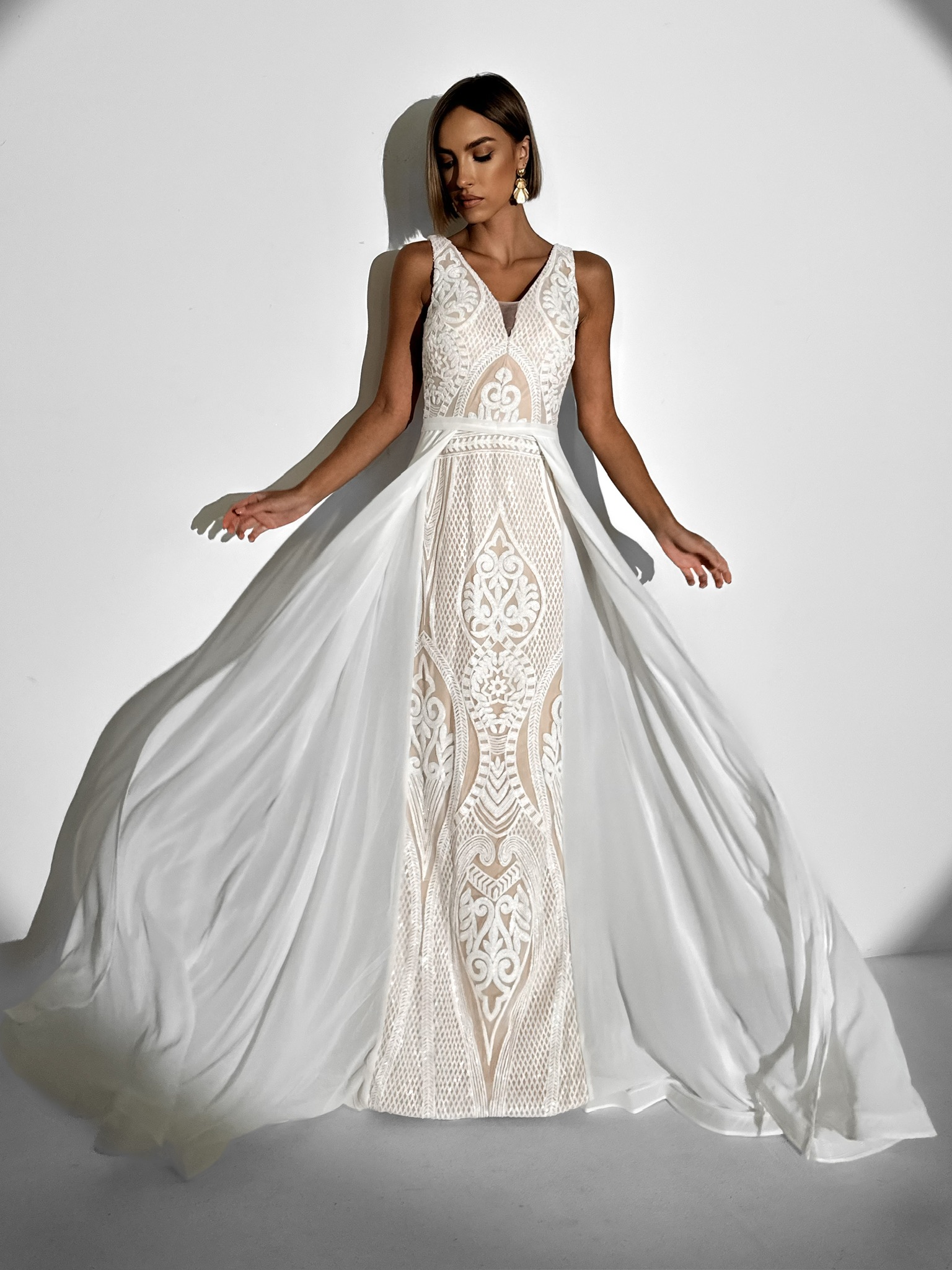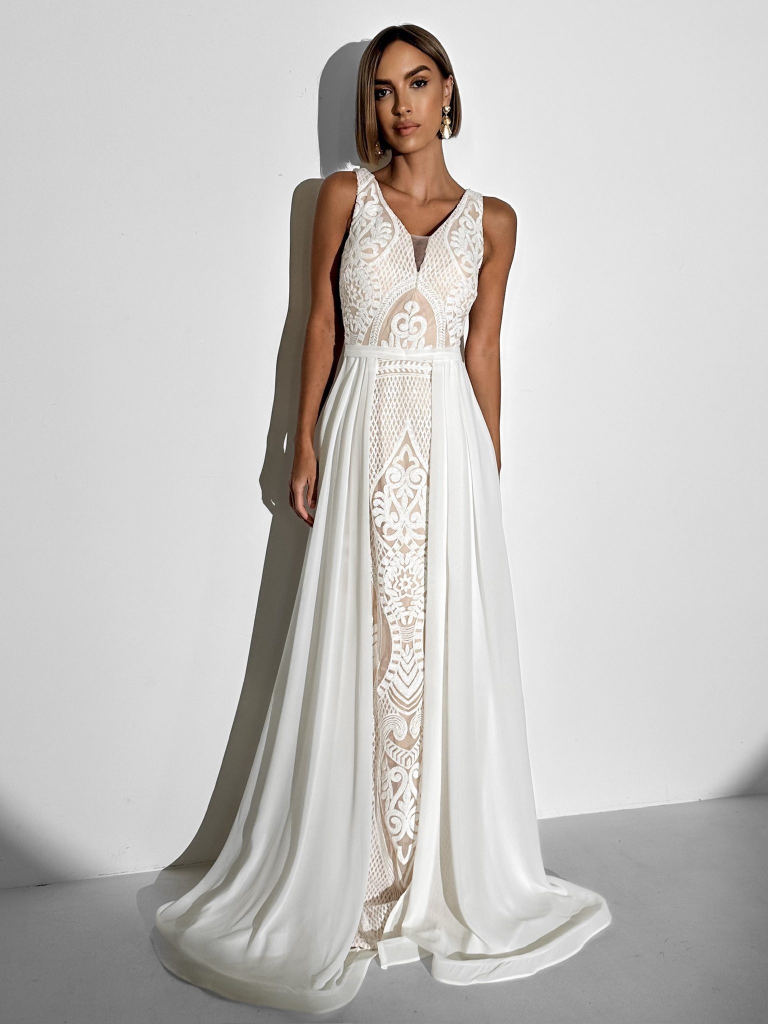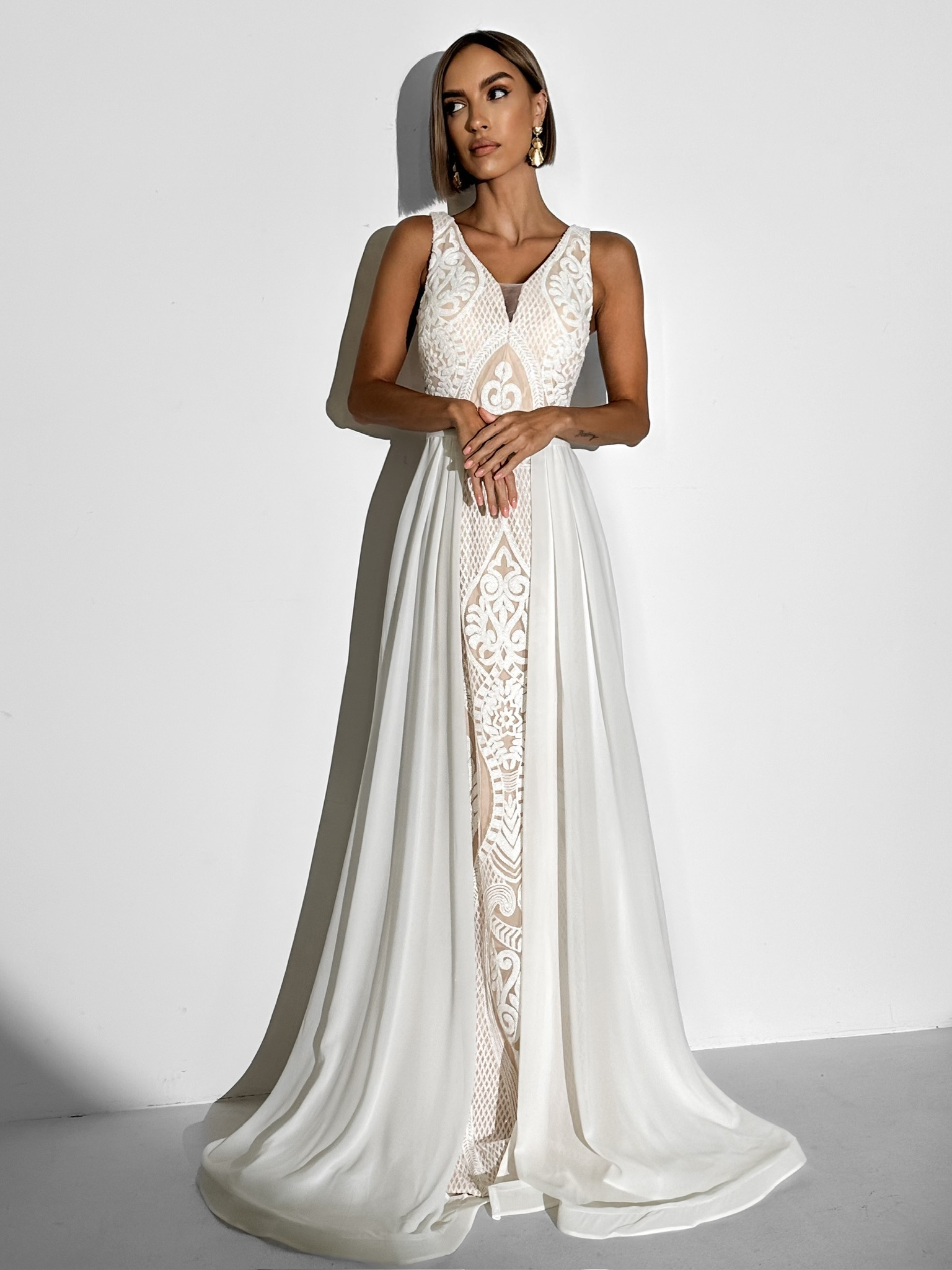 Bílé dlouhé flitrové šaty LUENNA Velikost: M