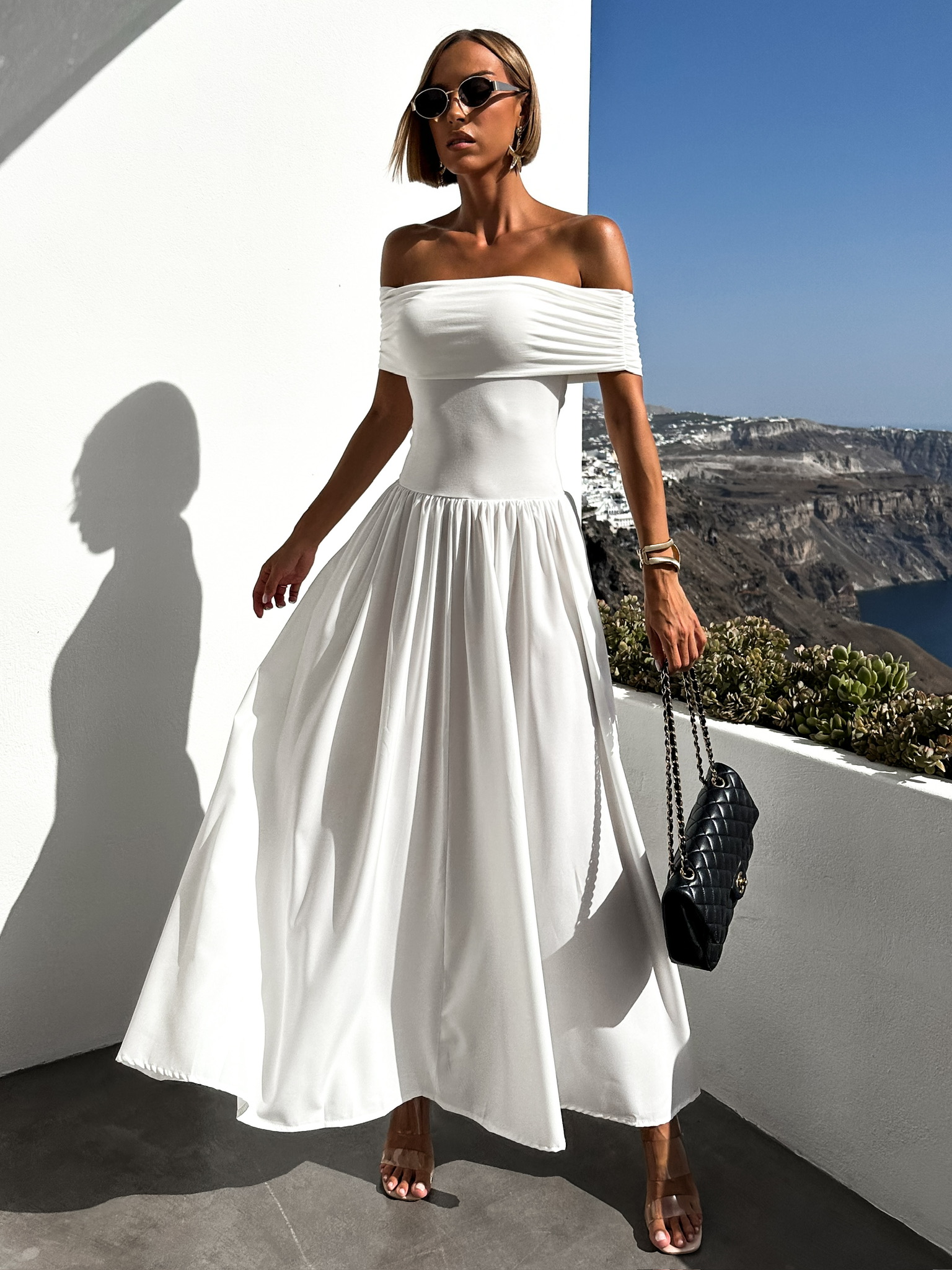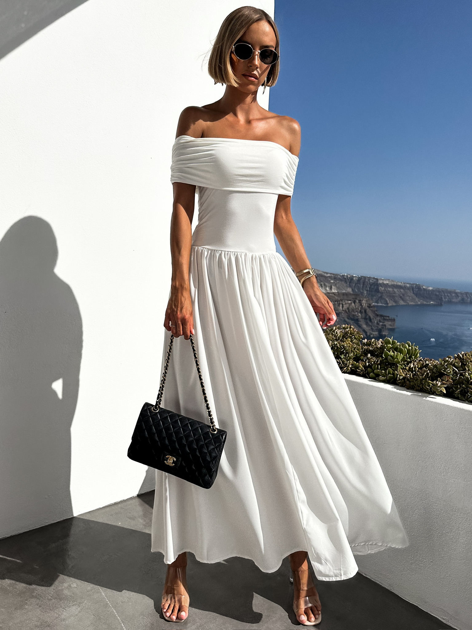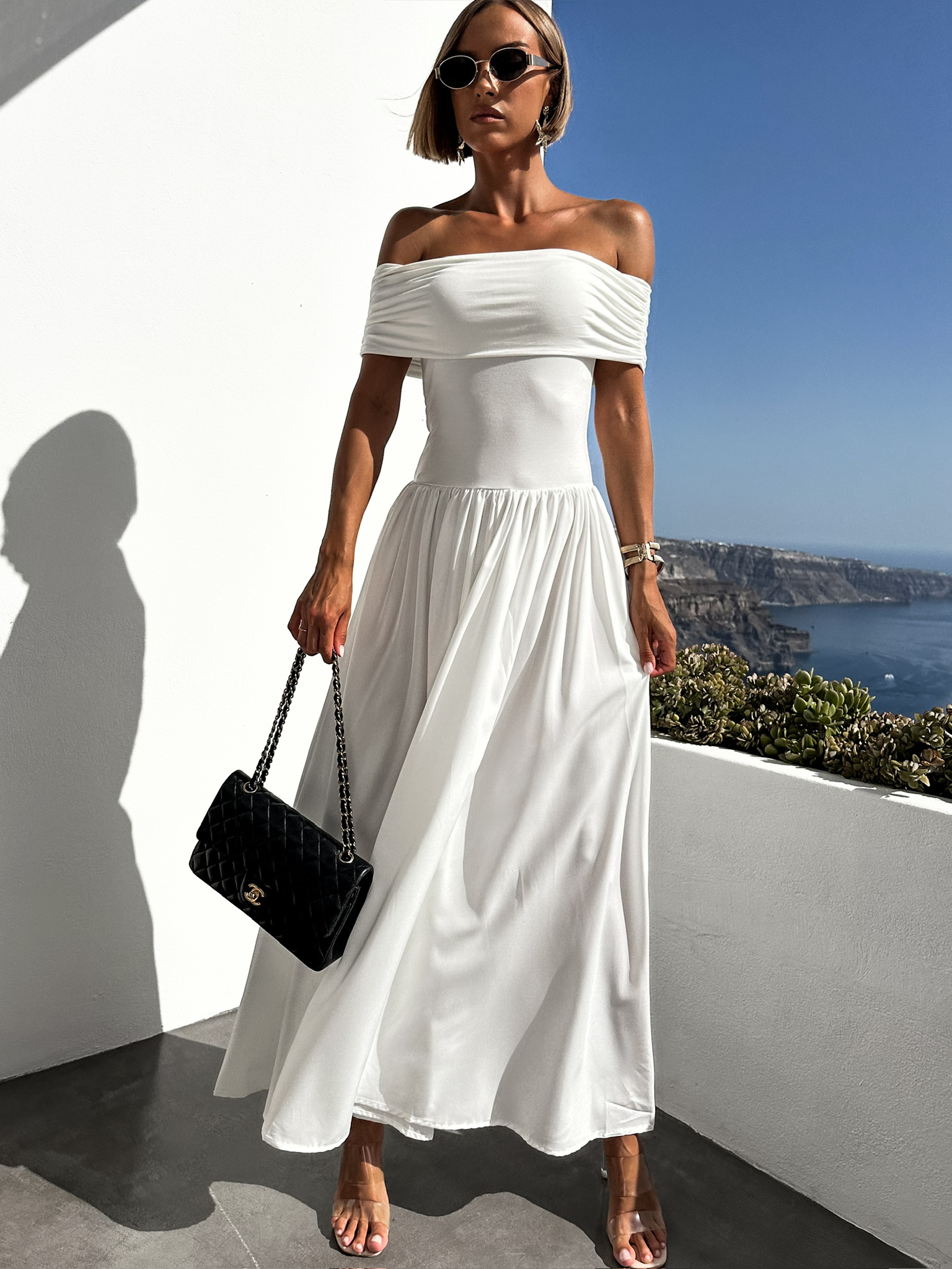 Bílé dlouhé šaty DURIAN s holými rameny Velikost: M/L