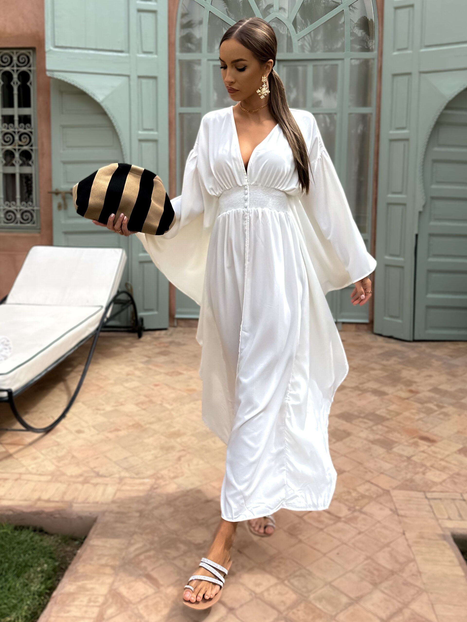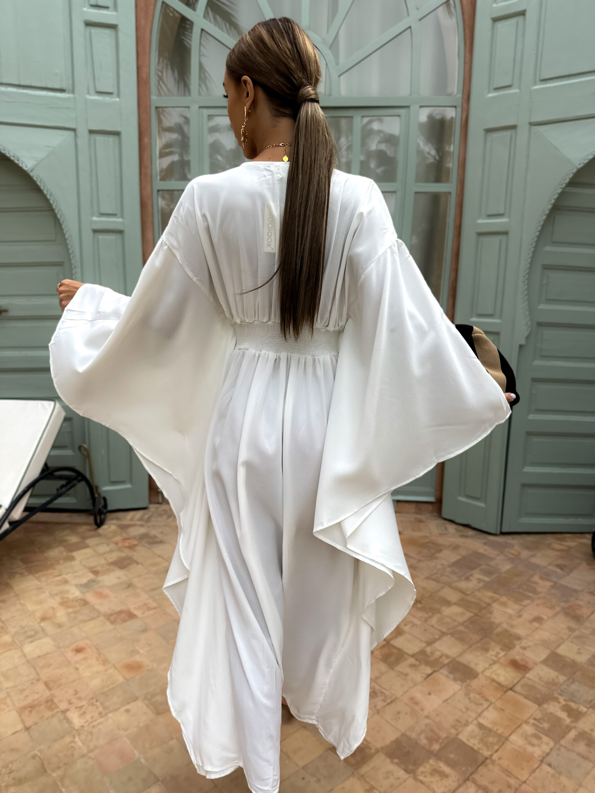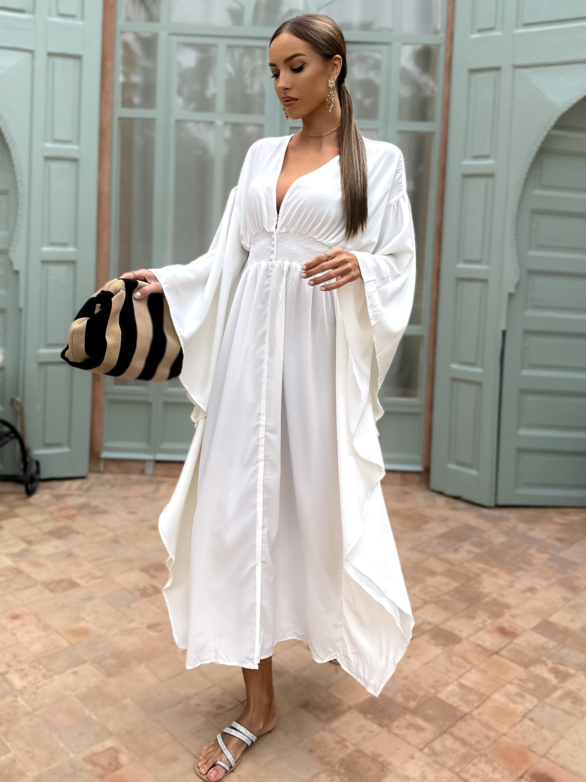 Bílé dlouhé šaty KIERANES s volnými rukávy Velikost: ONESIZE