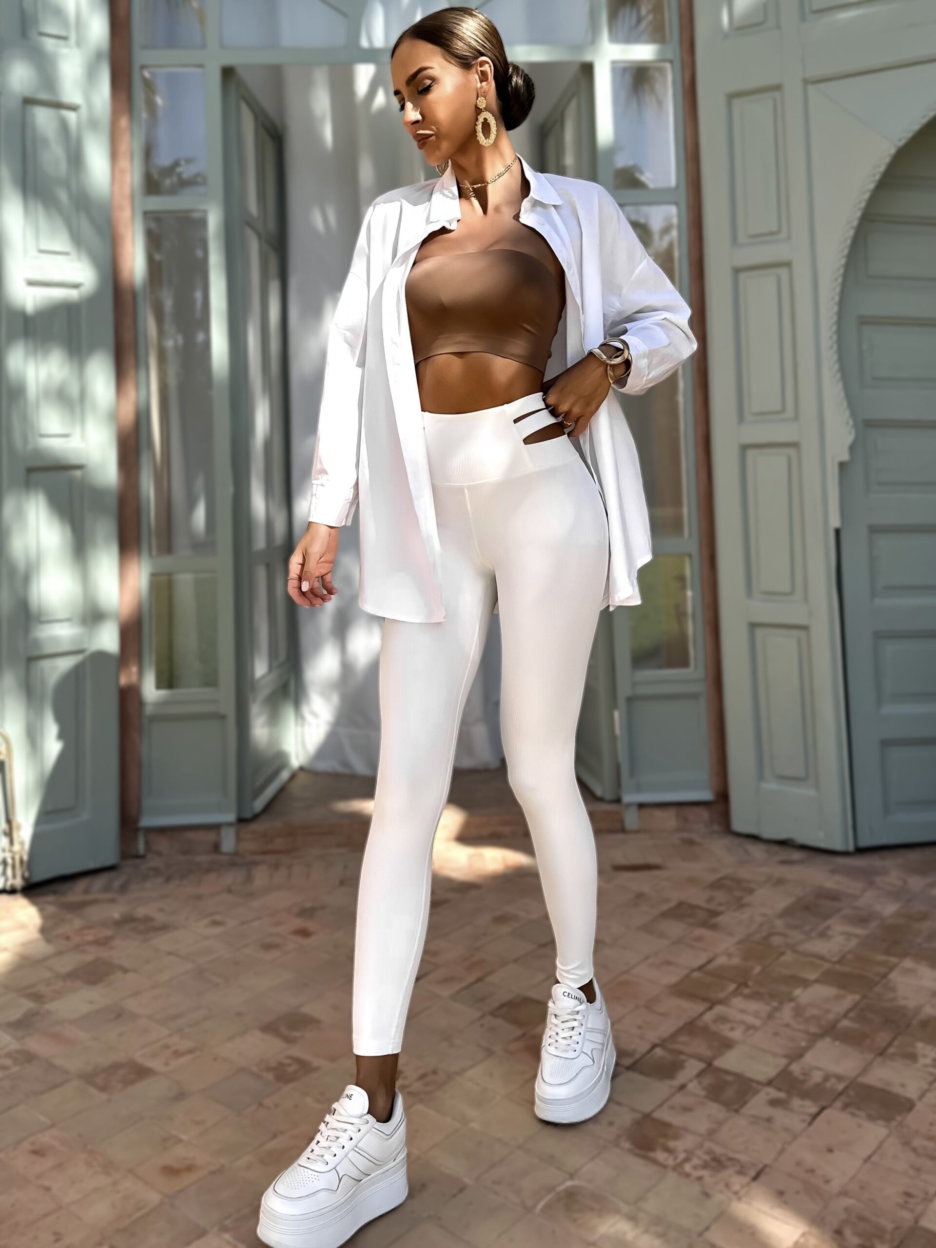 Bílé elastické legíny TEKIN s průstřihy Velikost: L/XL