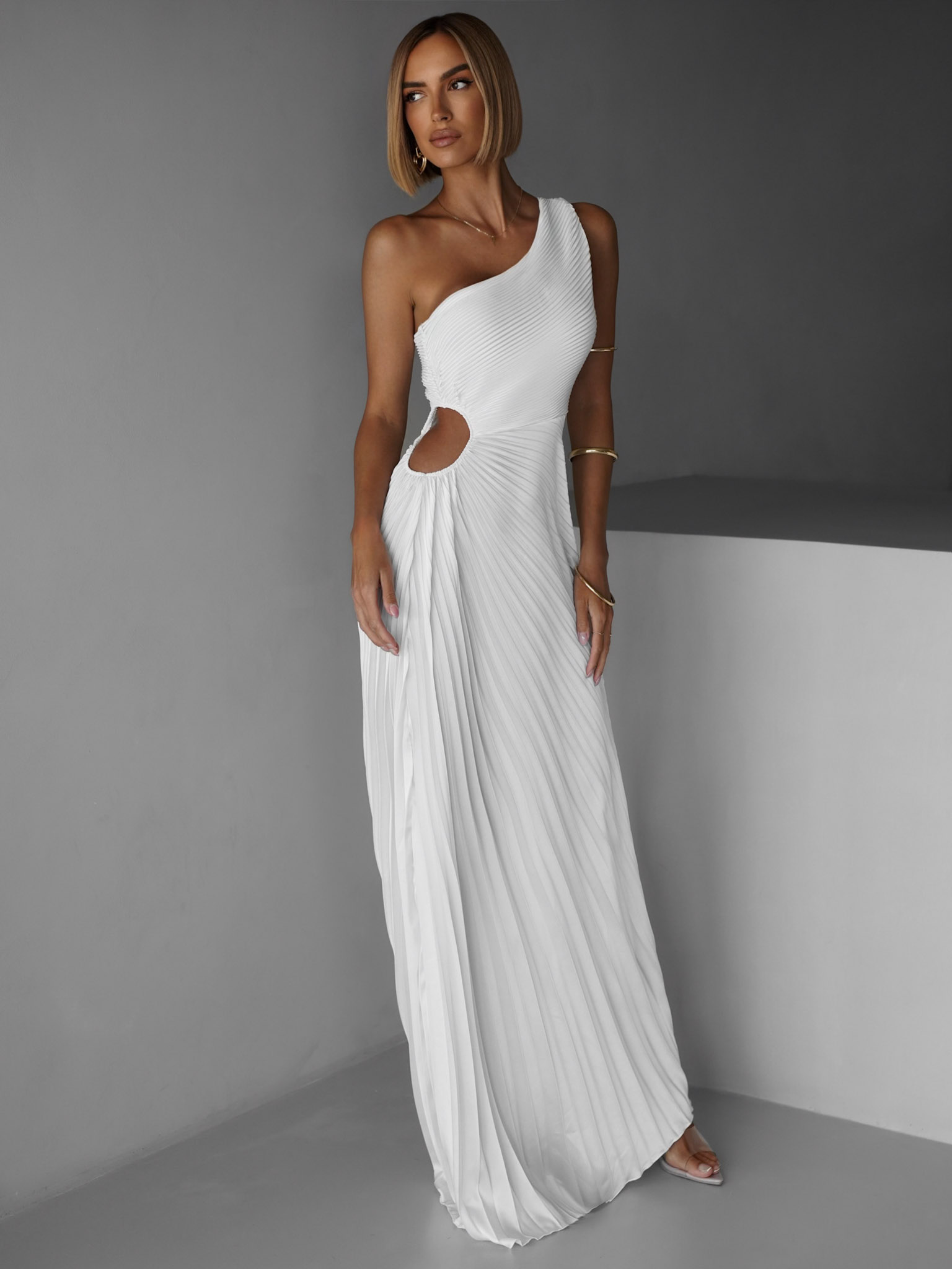 Šaty Suntils jsou dlouhé plisované šaty s lesklým povrchem, navržené pro pohodlné nošení. Elegantní střih na jedno rameno a půvabný průstřih dodávají šatům sexy vzhled. Ideální volba na ples, svatbu, nebo pro družičky, které chtějí zazářit.
