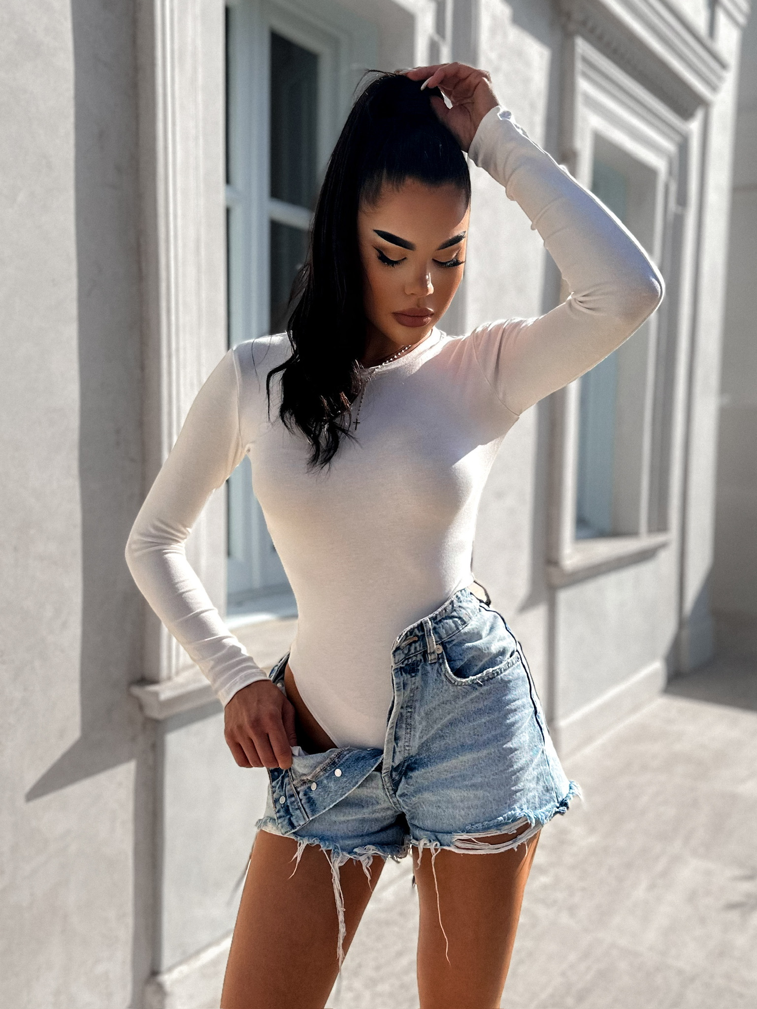 Bílé jednoduché body ZELIEN s dlouhým rukávem Velikost: M/L