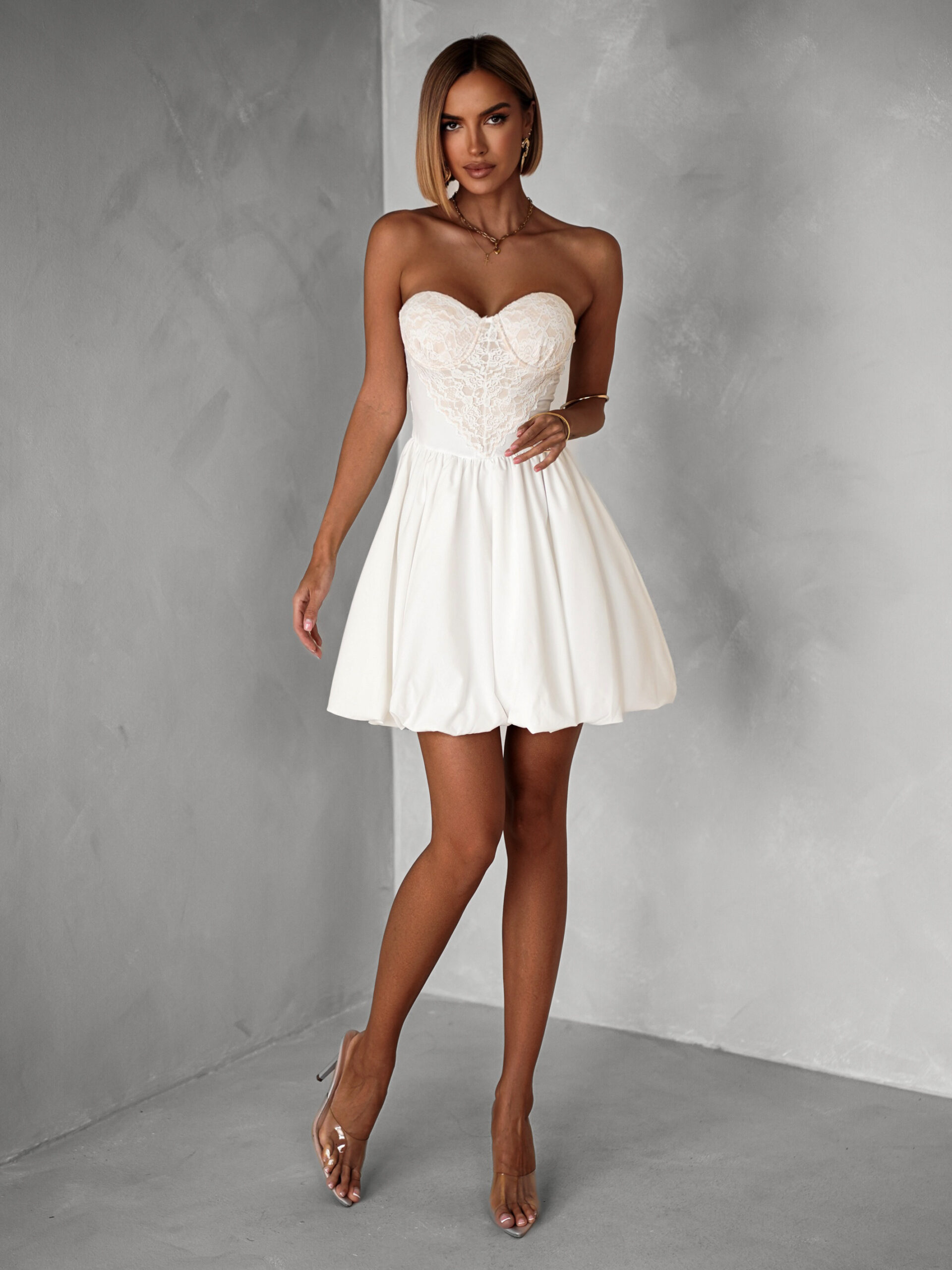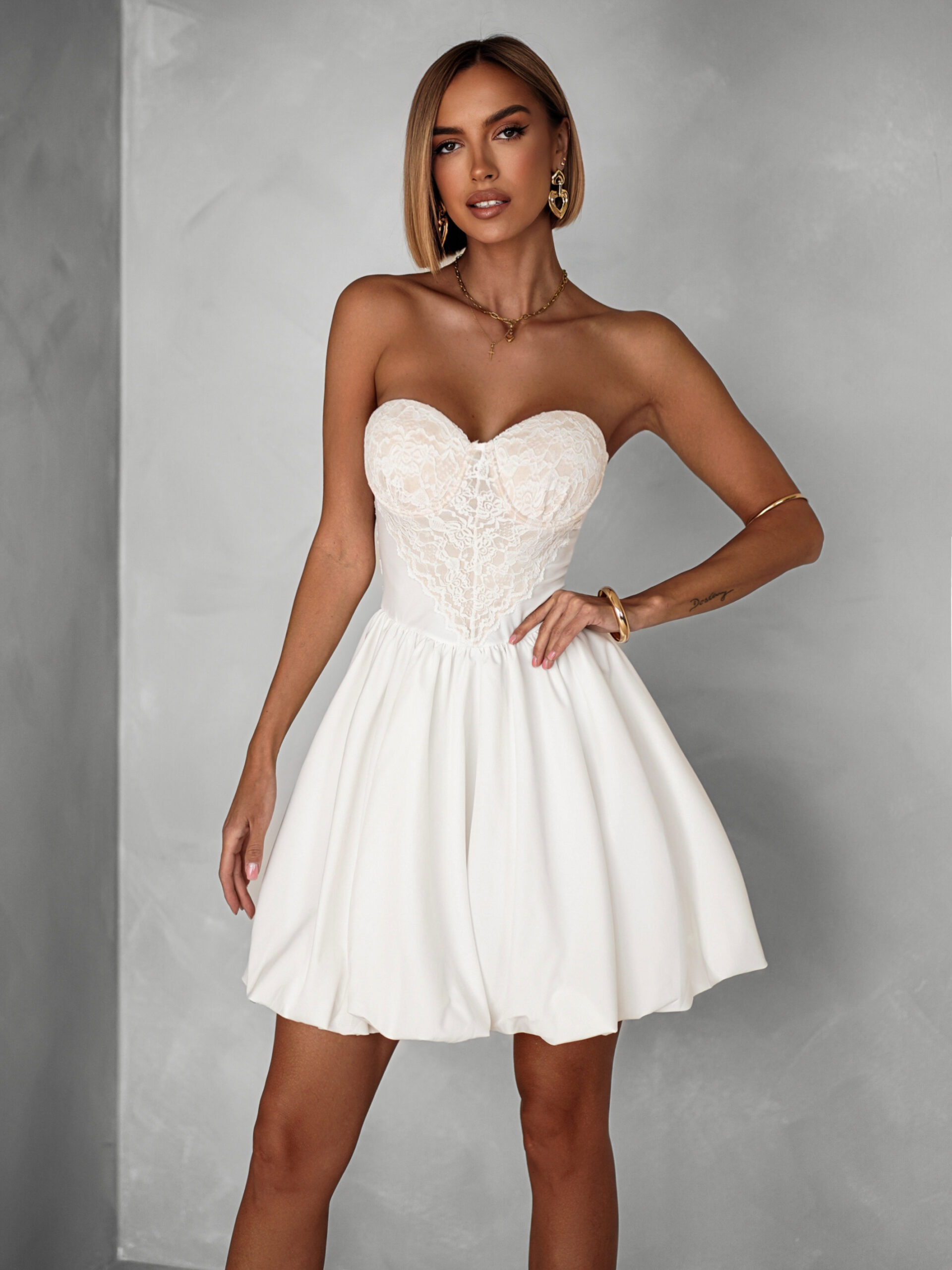Bílé krátké šaty NAMSOSE s áčkovou sukní Velikost: S/M