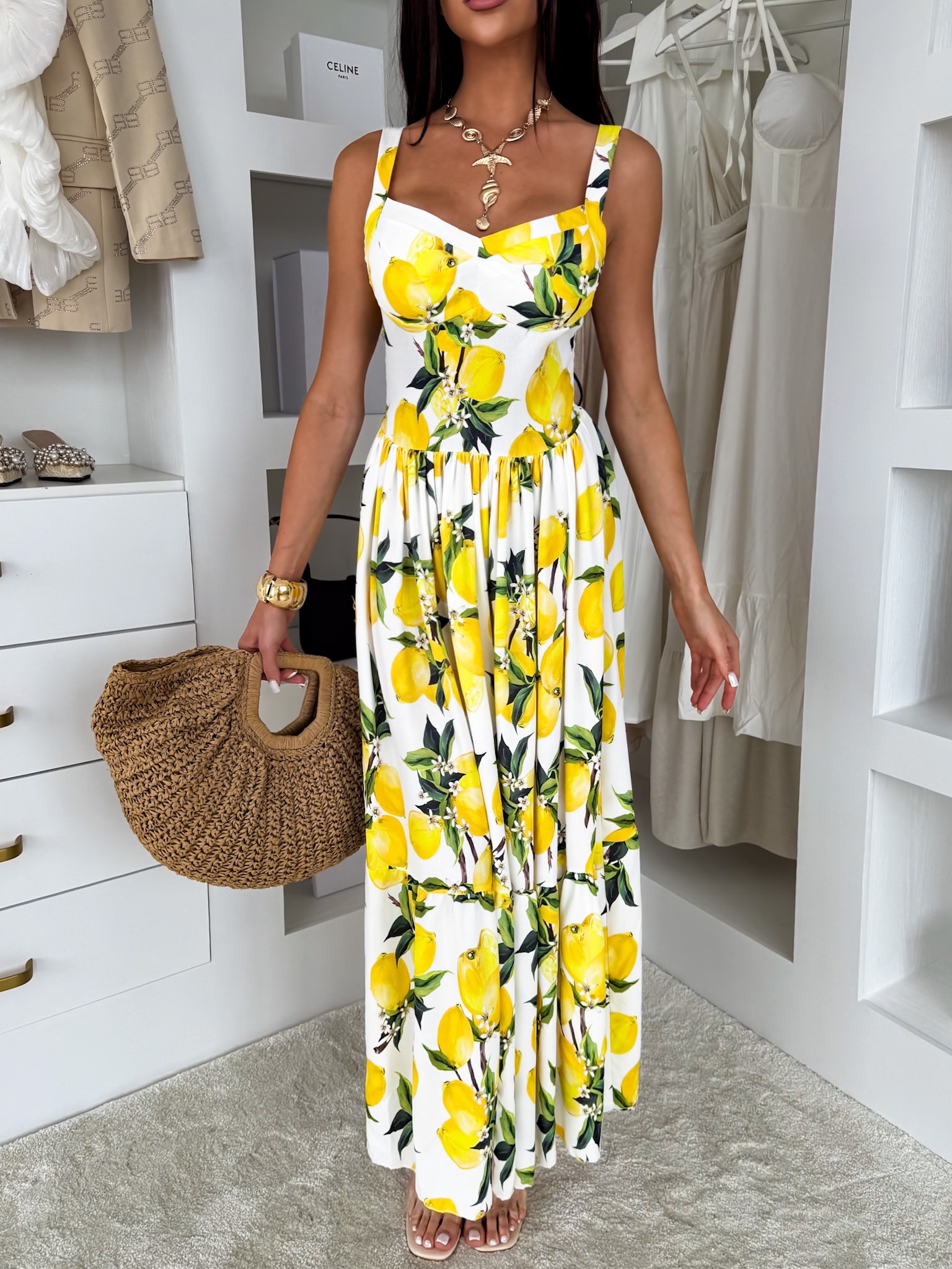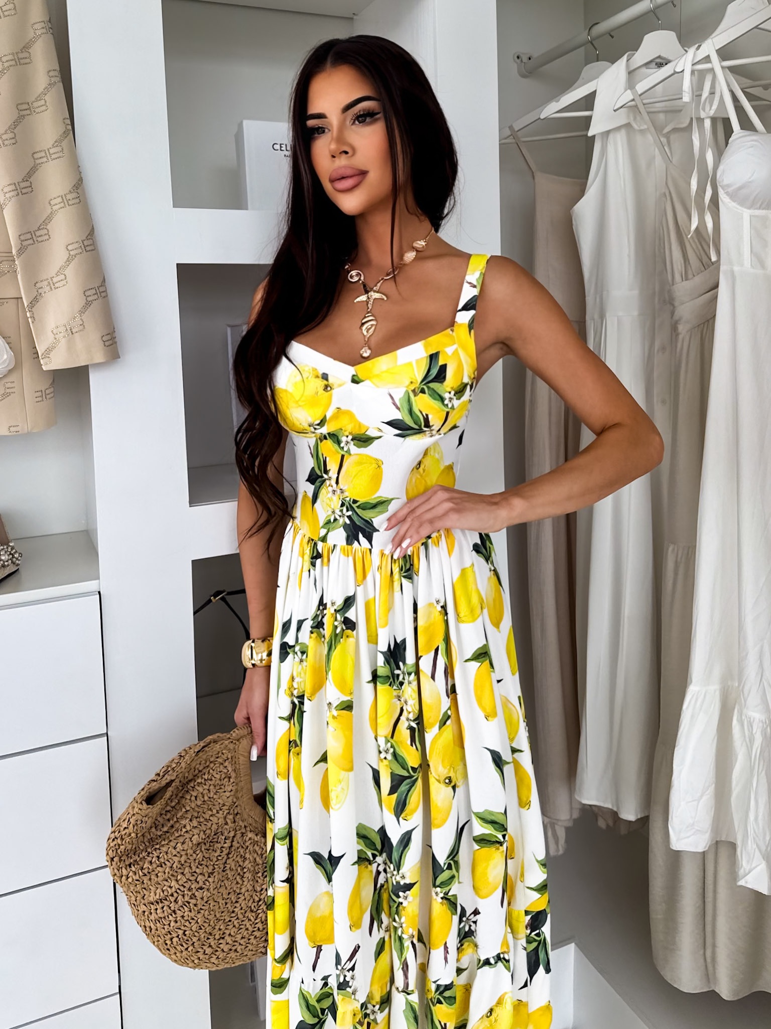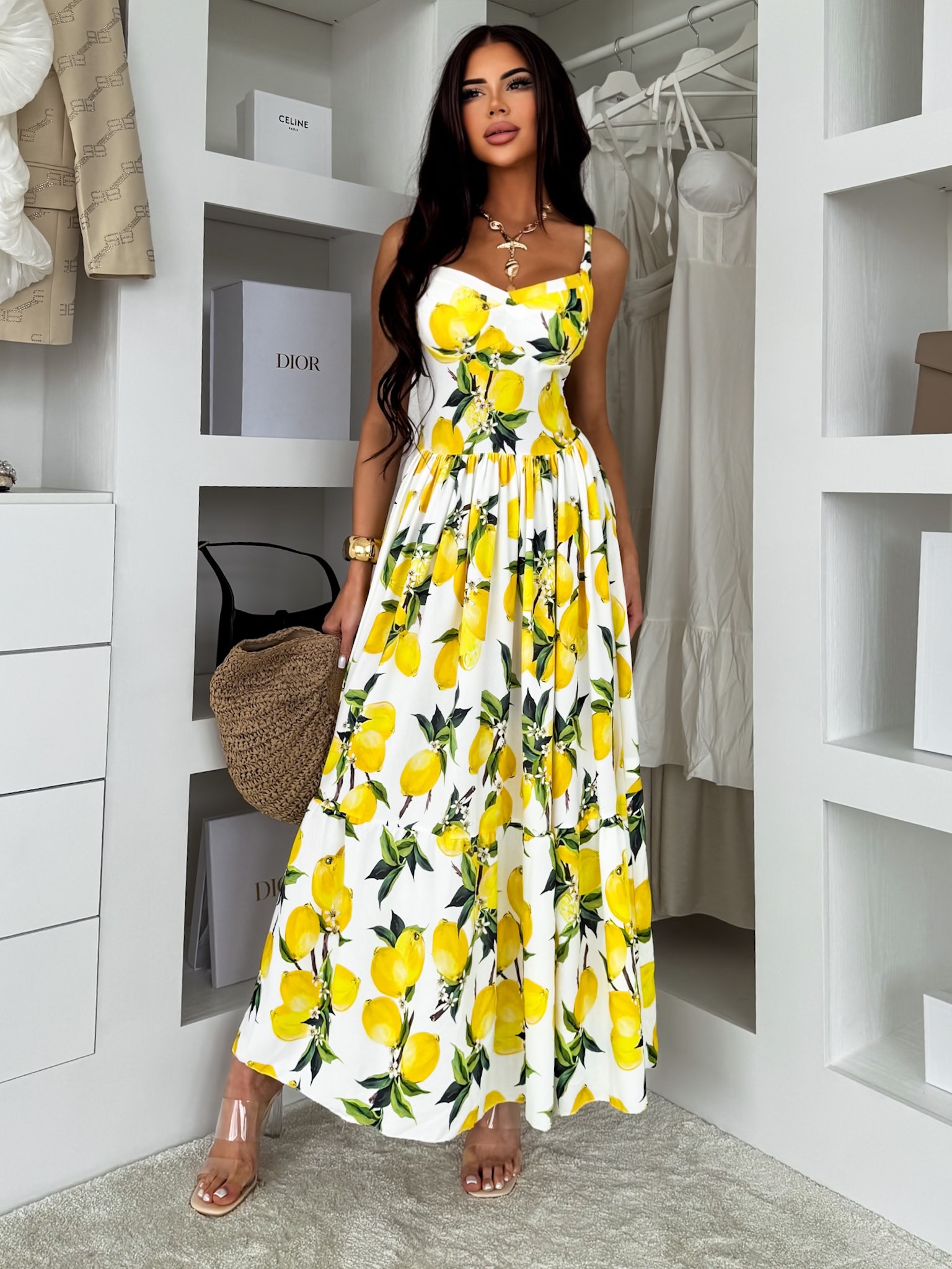 Bílé letní dlouhé šaty THEADY s citrony Velikost: ONESIZE