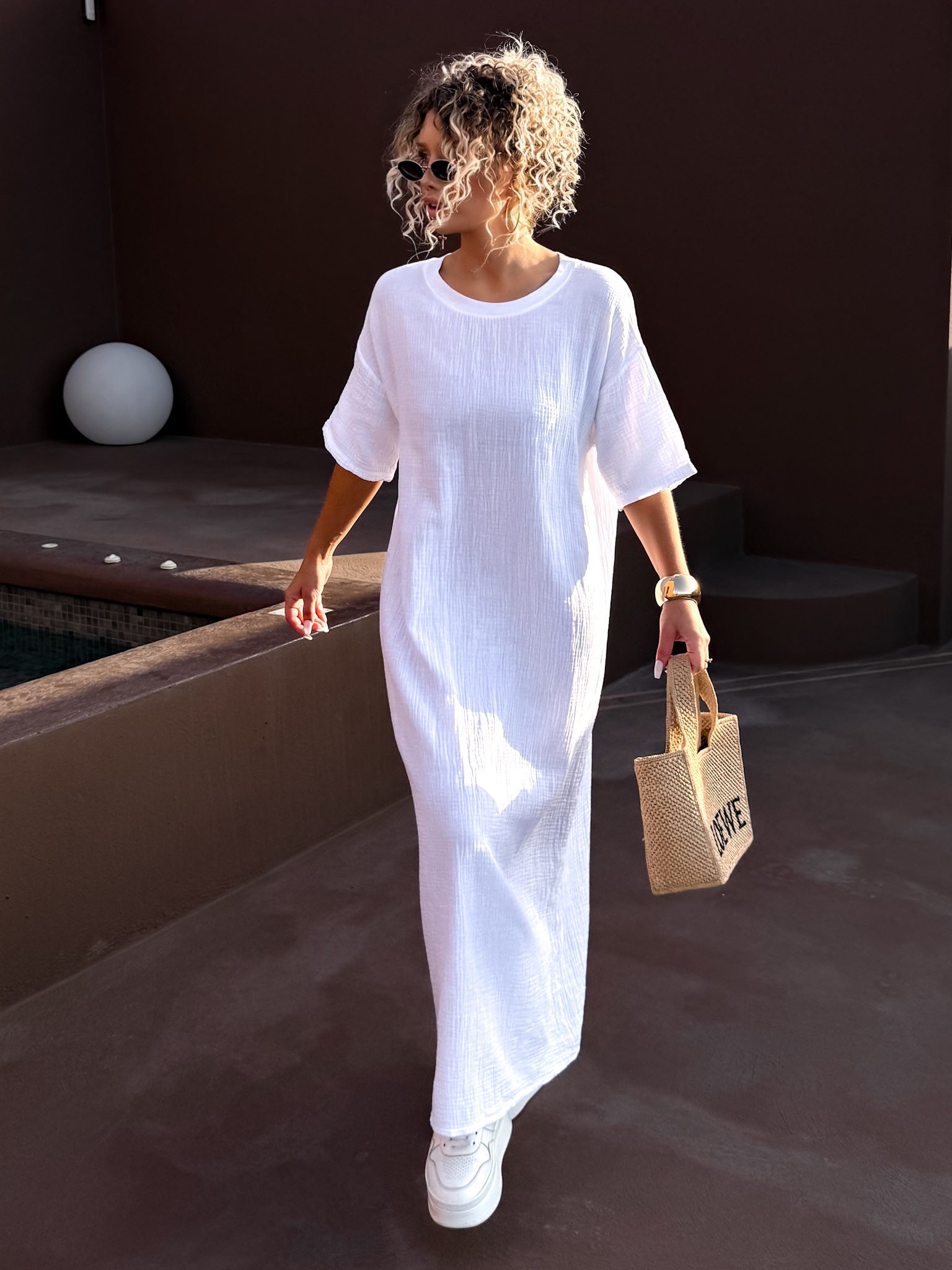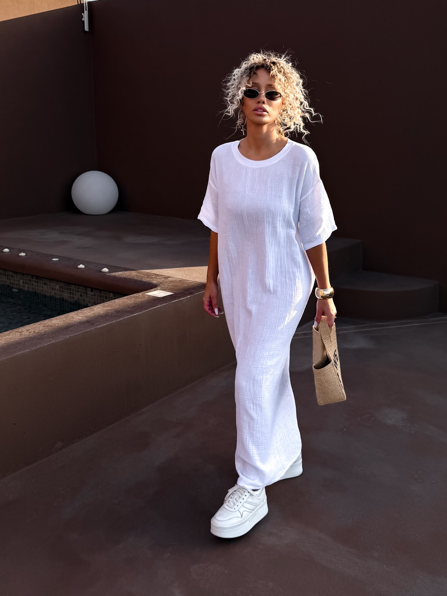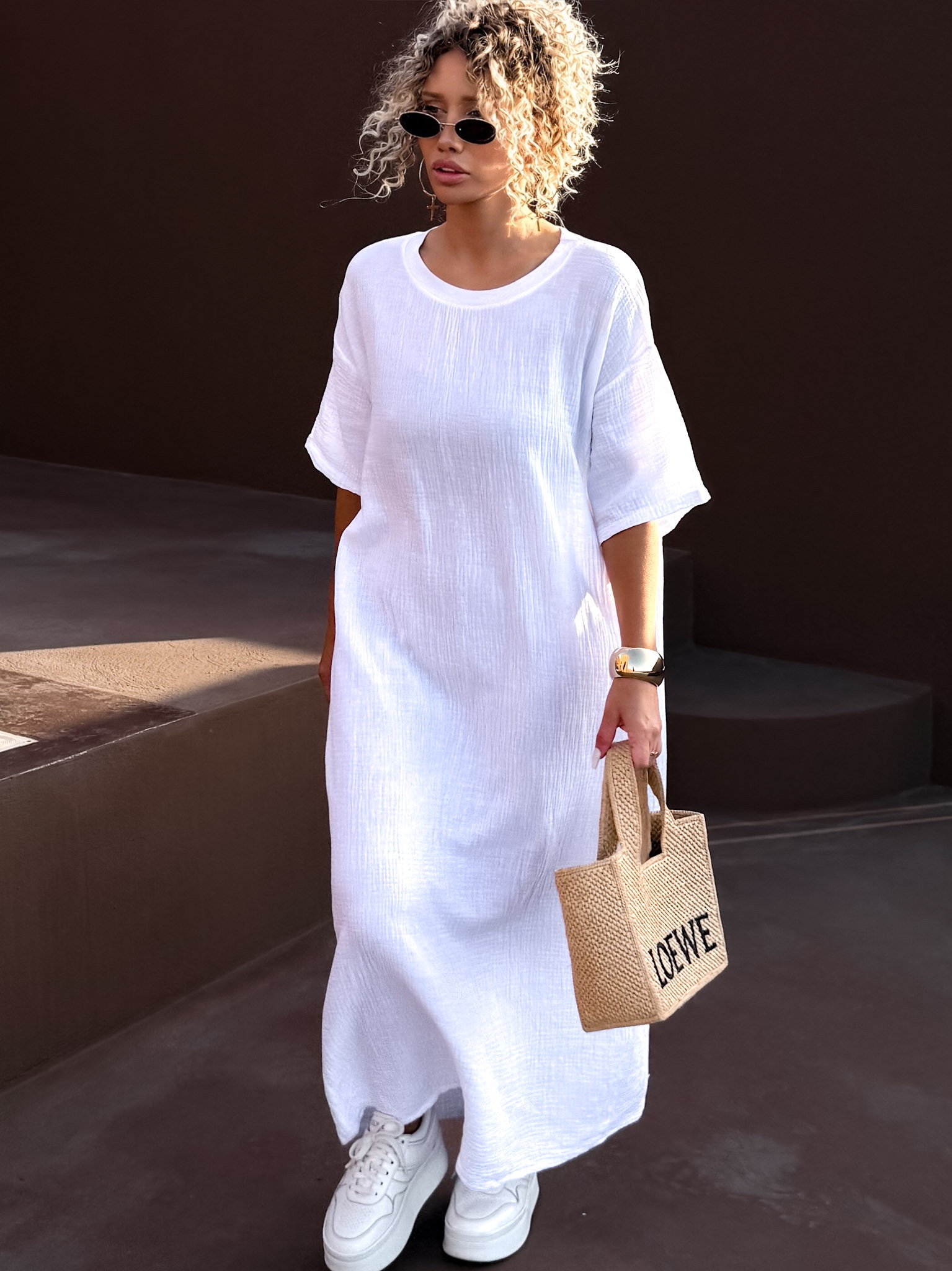 Bílé mušelínové dlouhé maxi šaty SPEEDY Velikost: ONESIZE