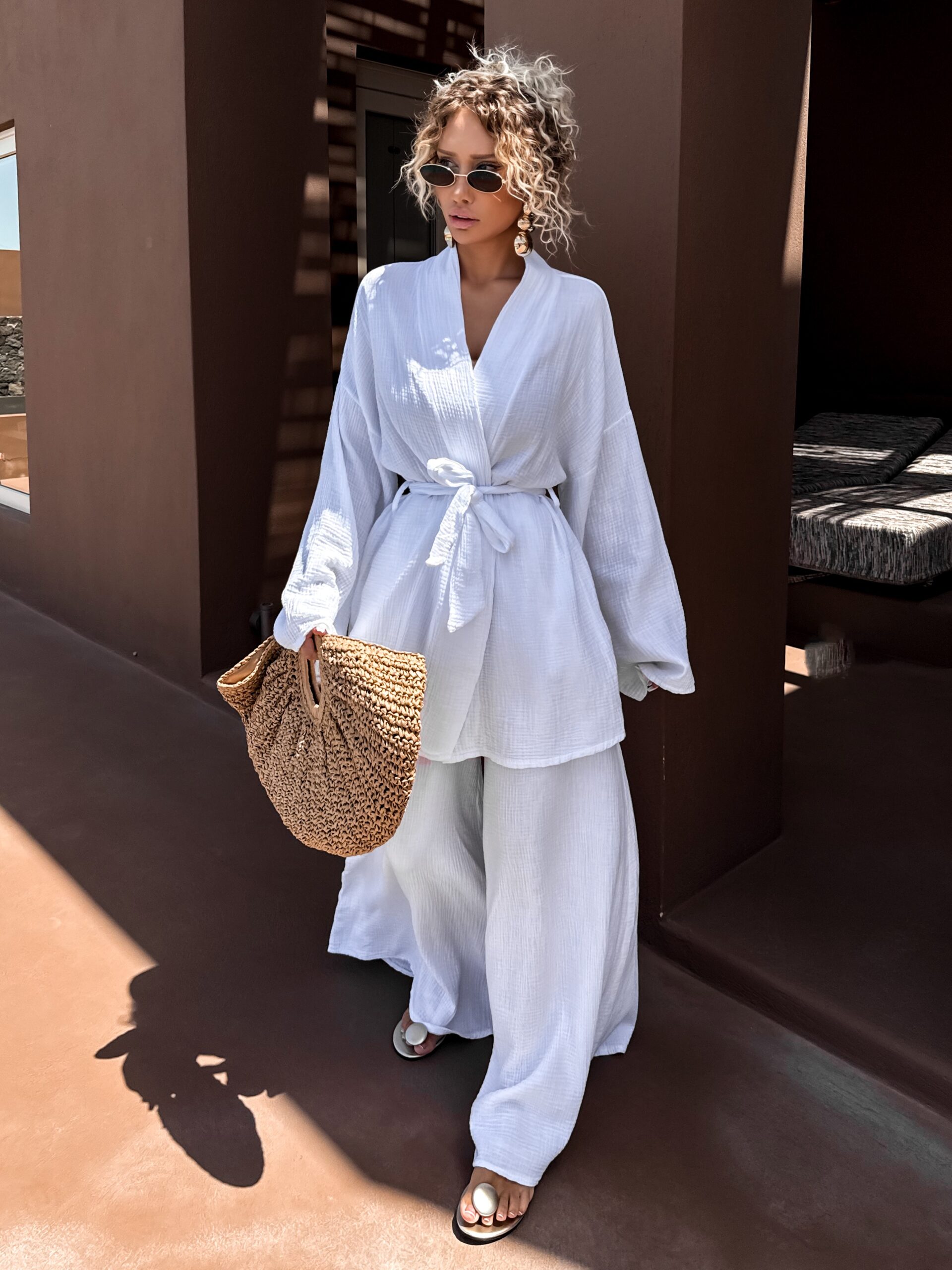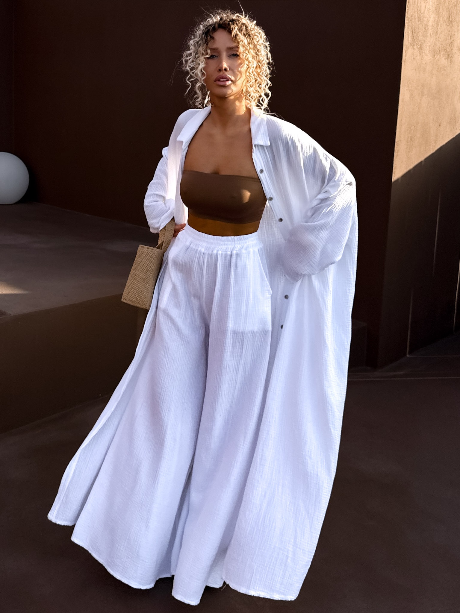 Bílé mušelínové extra široké kalhoty JAKAS Velikost: Standardní délka