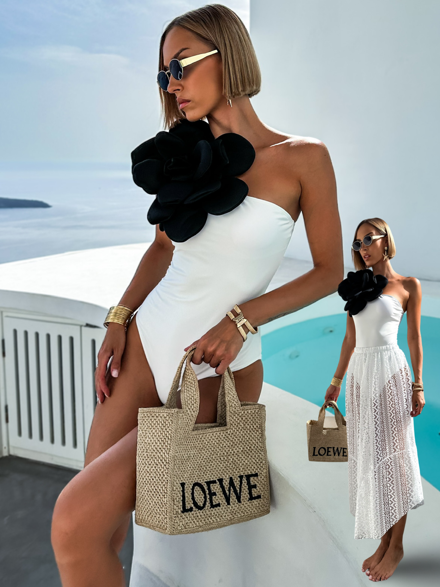 Bílé stylové jednodílné plavky KLEANTIS se sukní Velikost: S/M