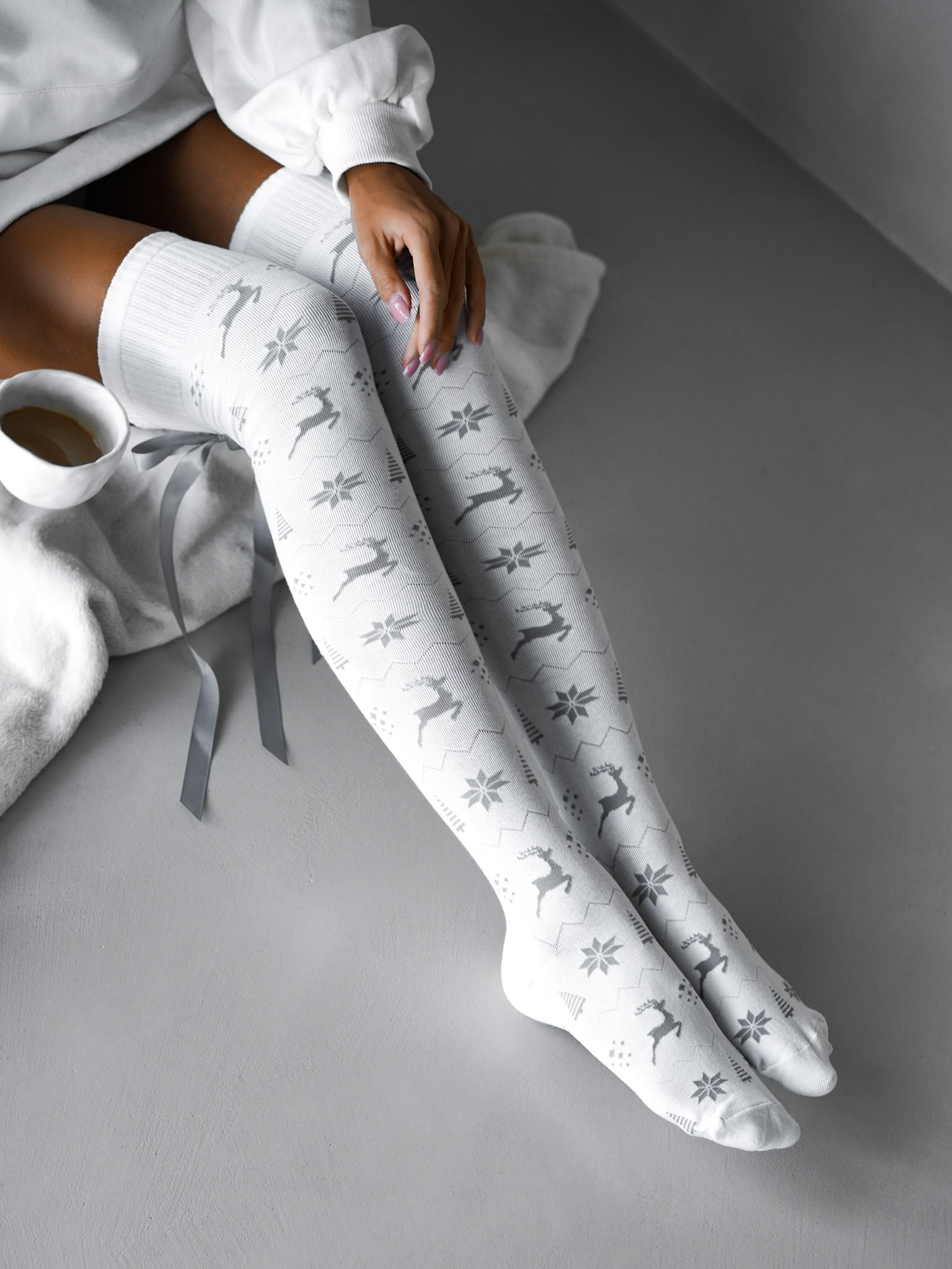 Bílé vánoční nadkolenky SLINTER s mašlí Velikost: ONESIZE