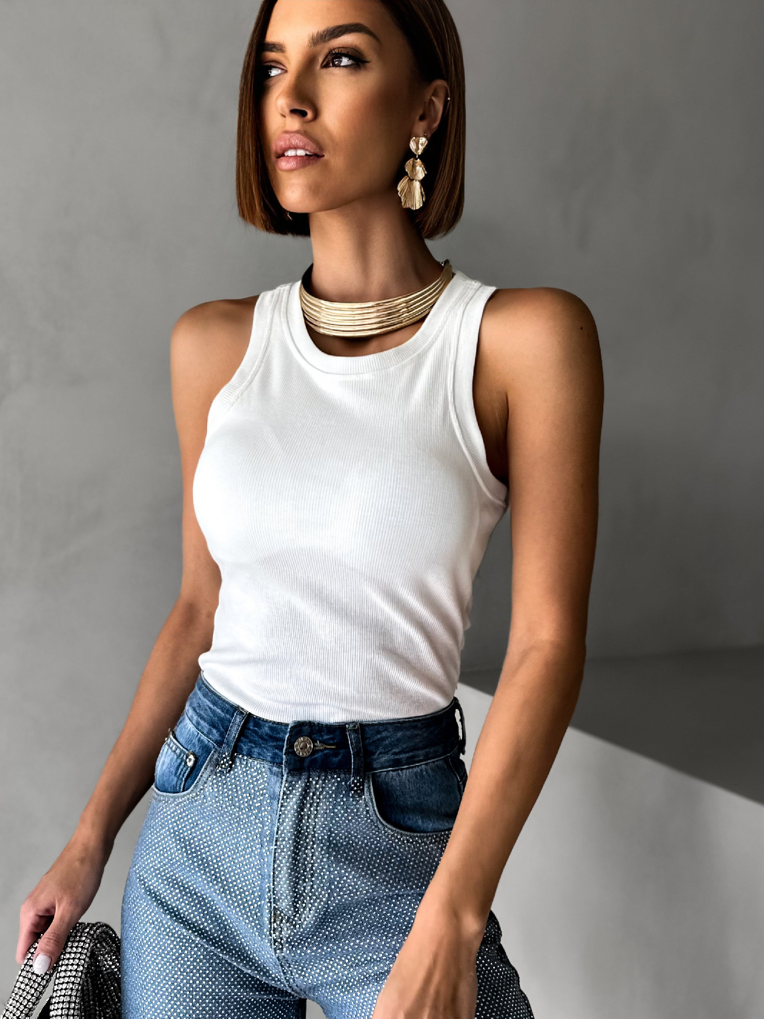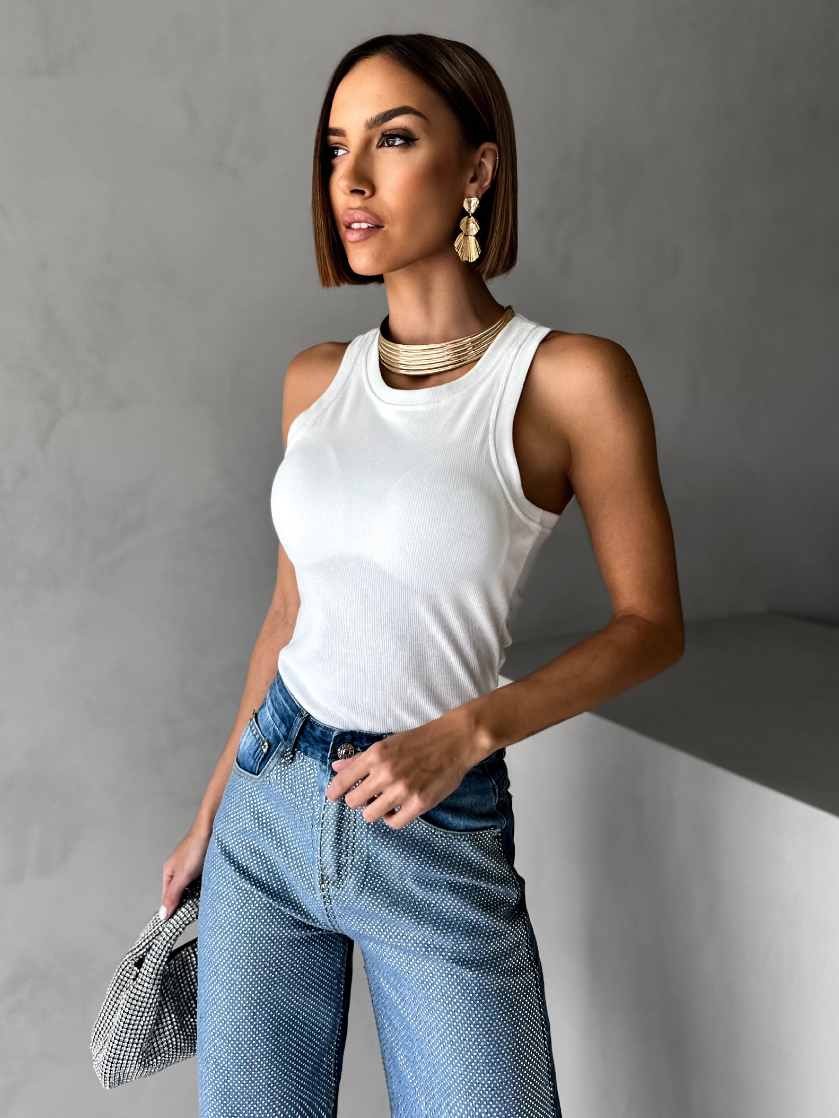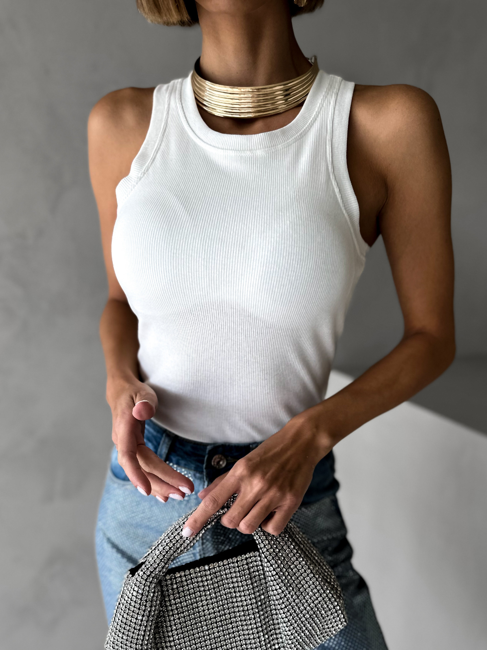 Bílé žebrované tílko MOMMO 95% bavlna Velikost: M/L