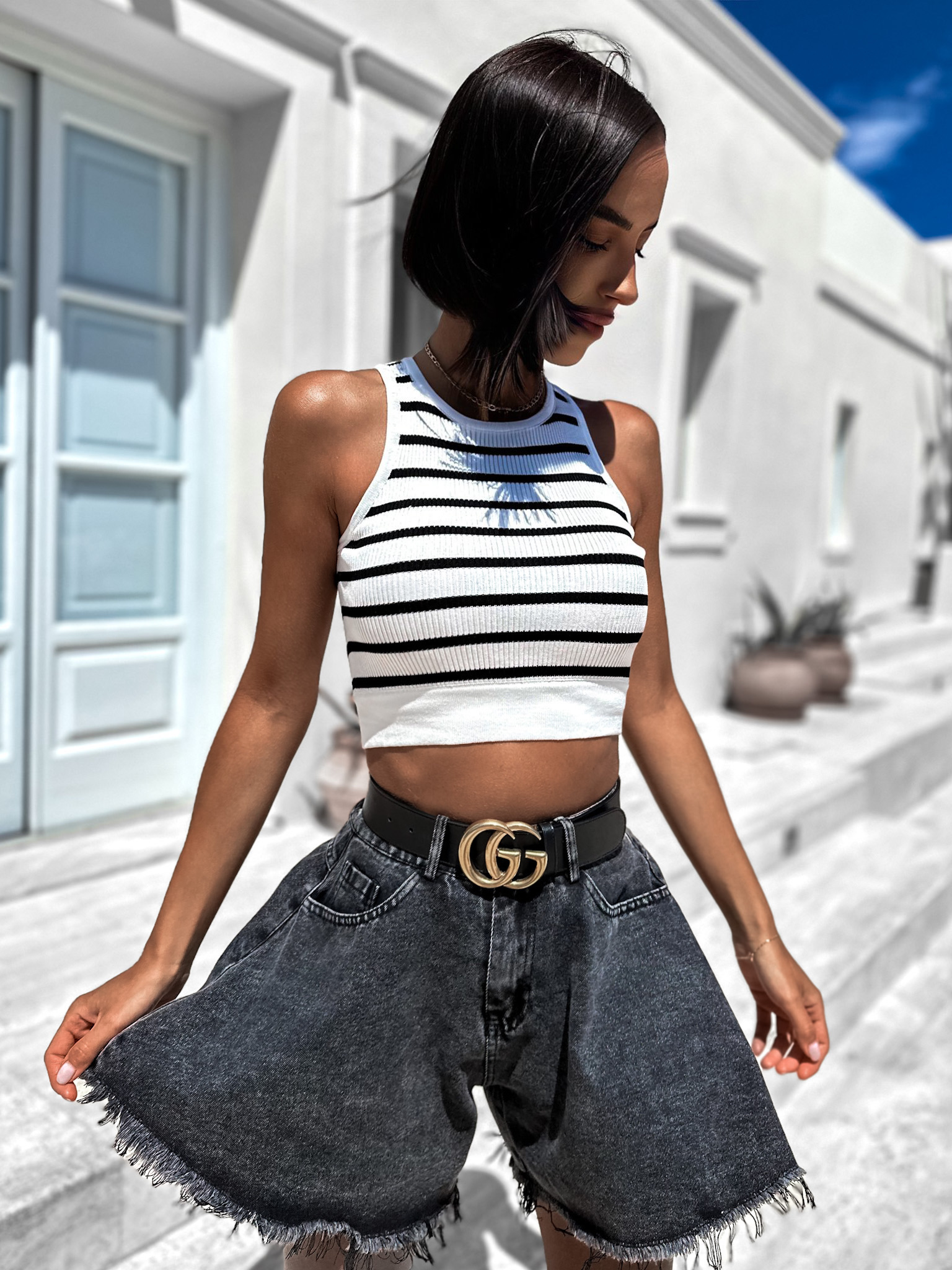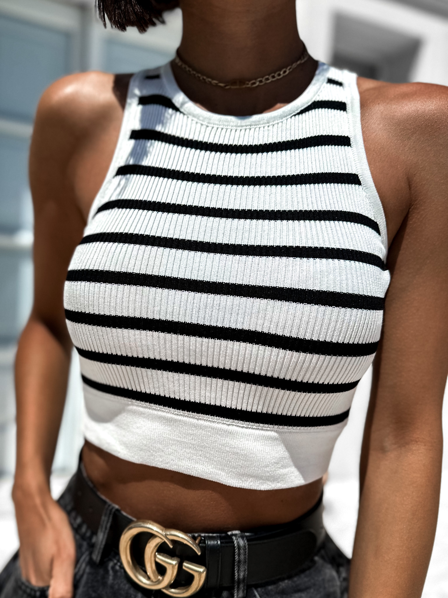 Bílý elegantní top ALAWOSI s pruhy Velikost: M/L