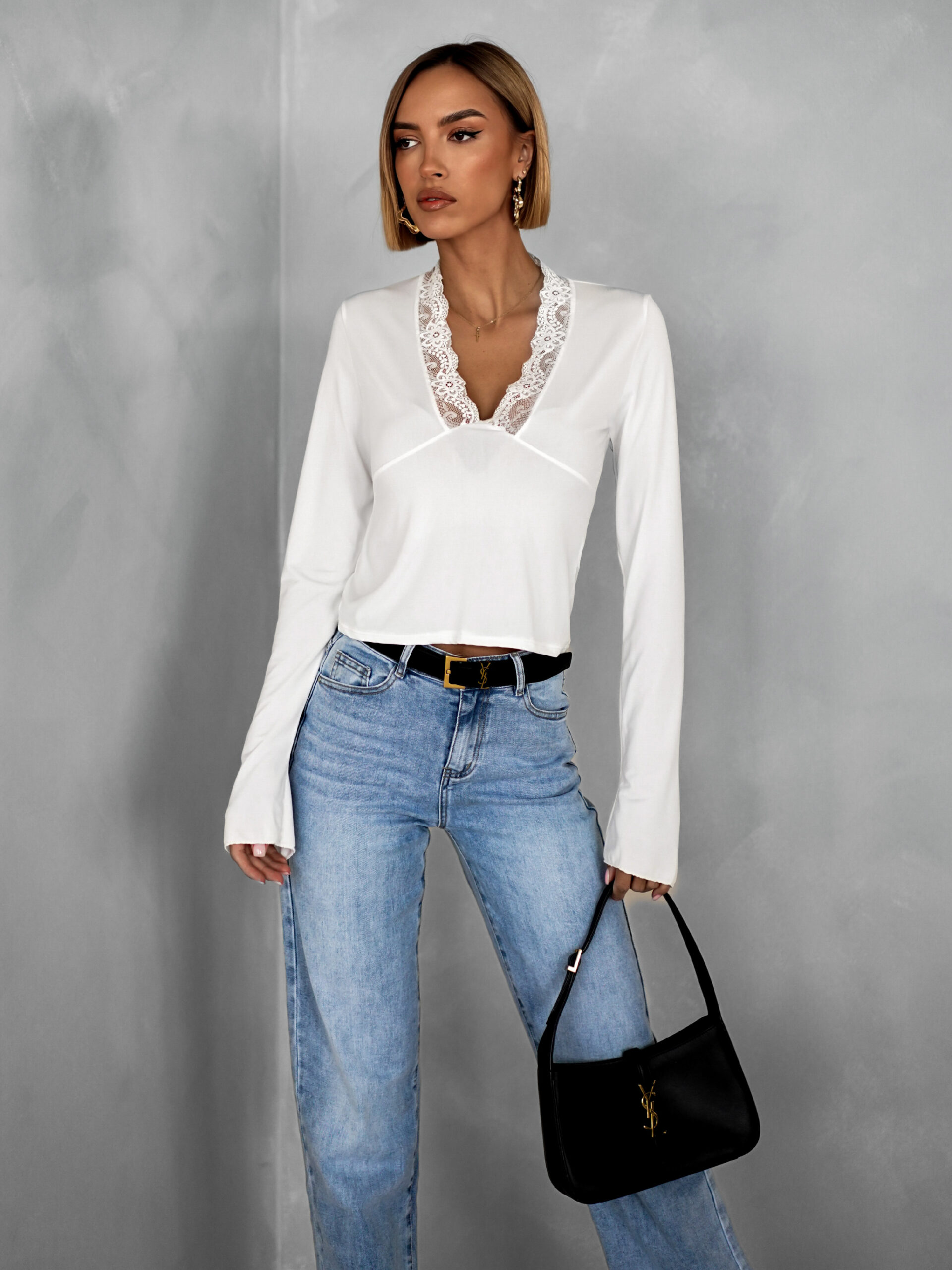 Bílý elegantní top DEBERGA s krajkou Velikost: ONESIZE