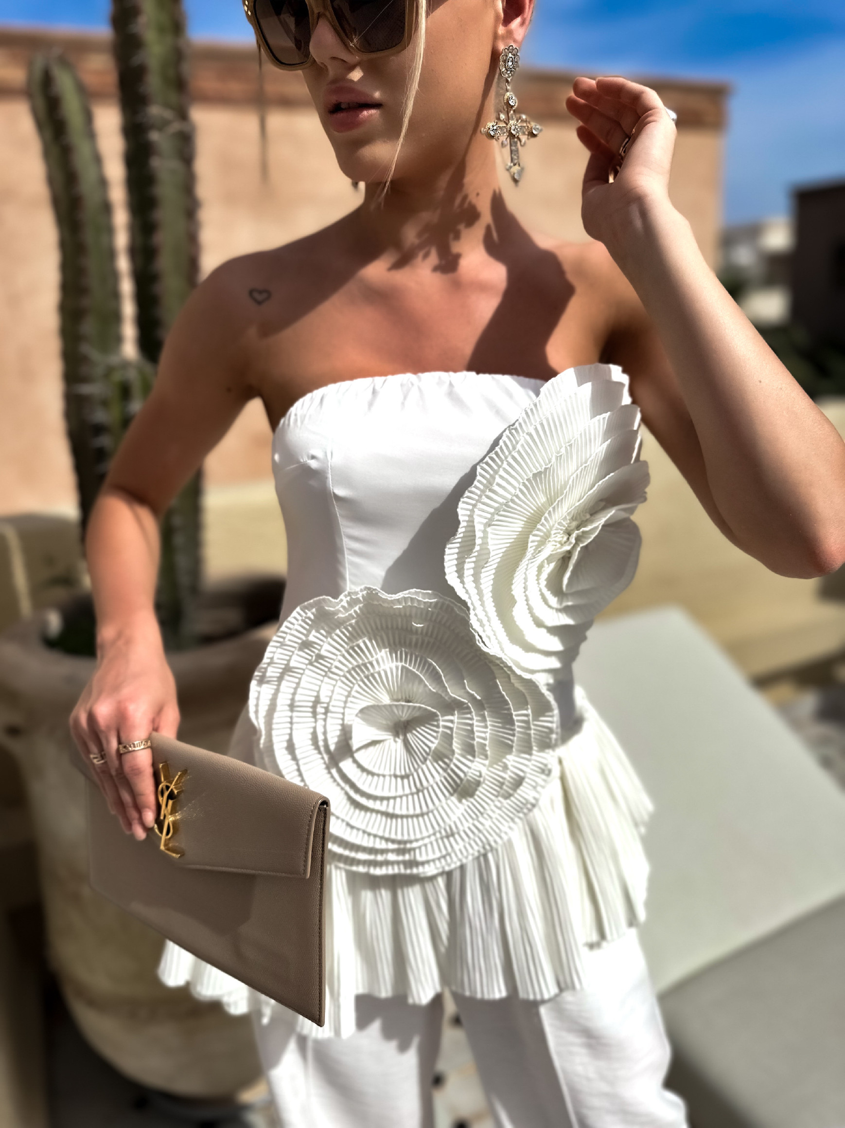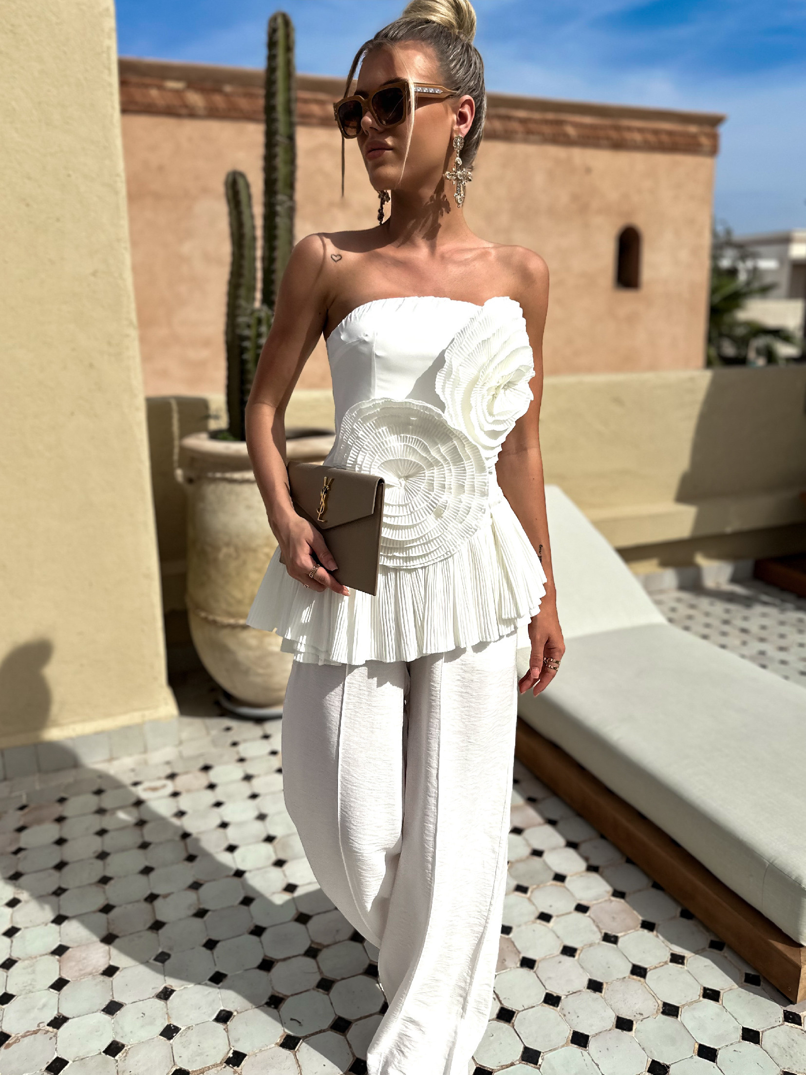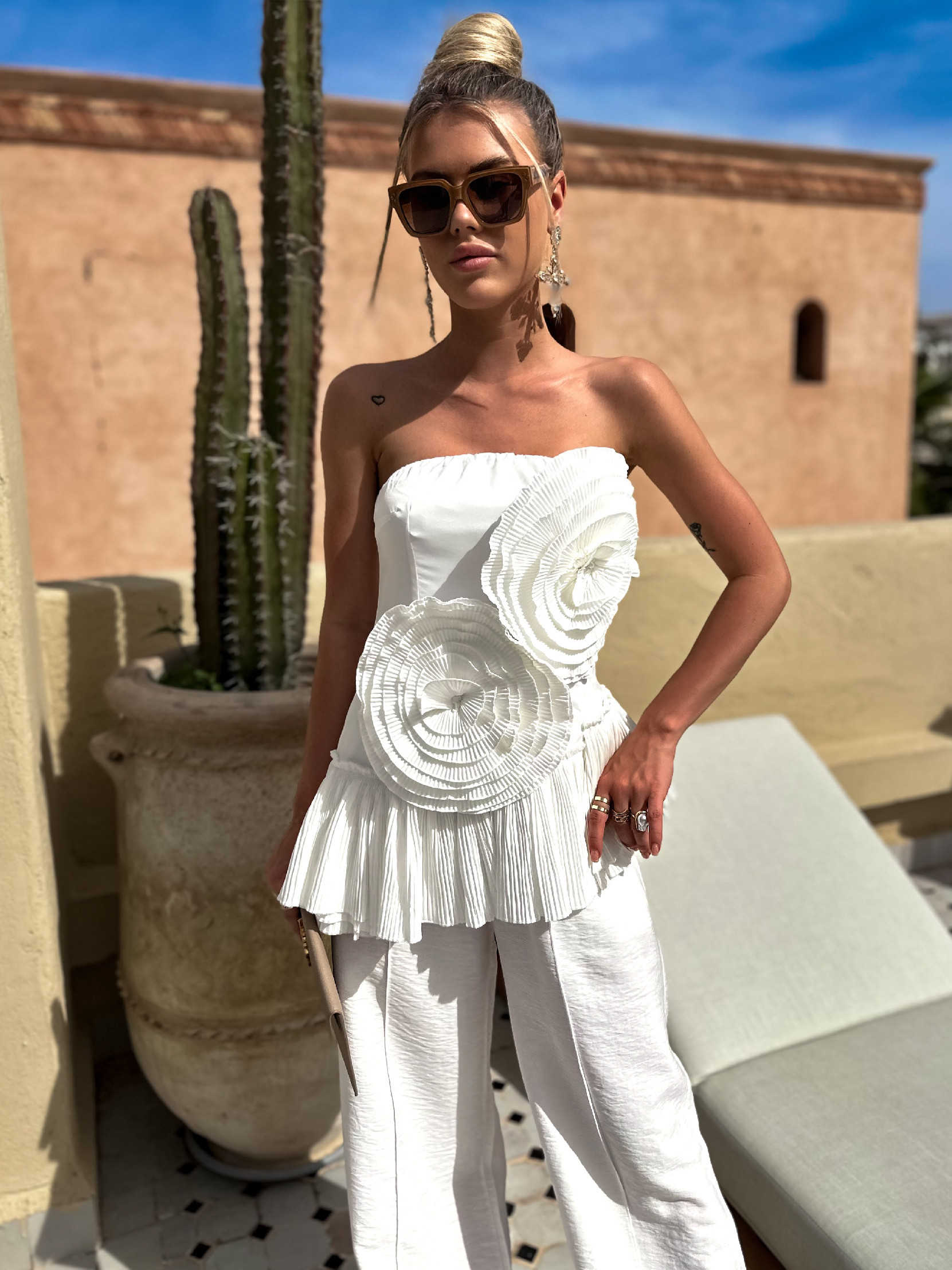 Bílý elegantní top YOUSEL s 3D aplikací Velikost: M/L